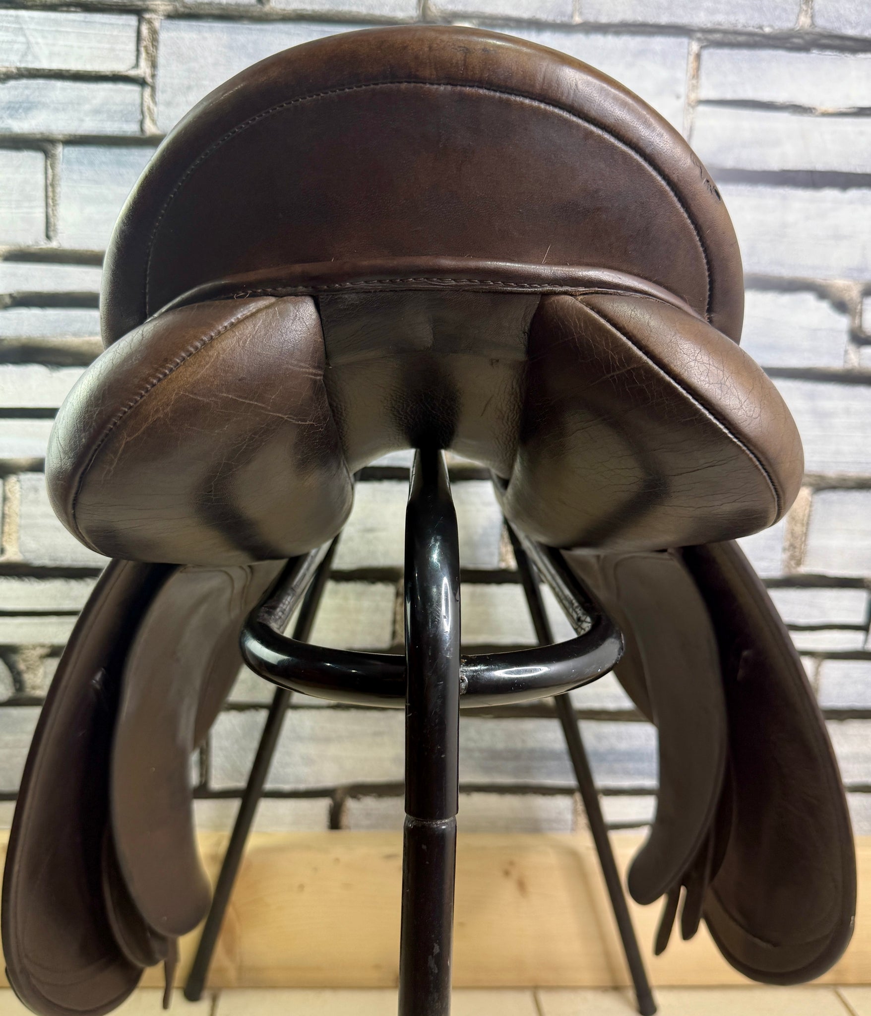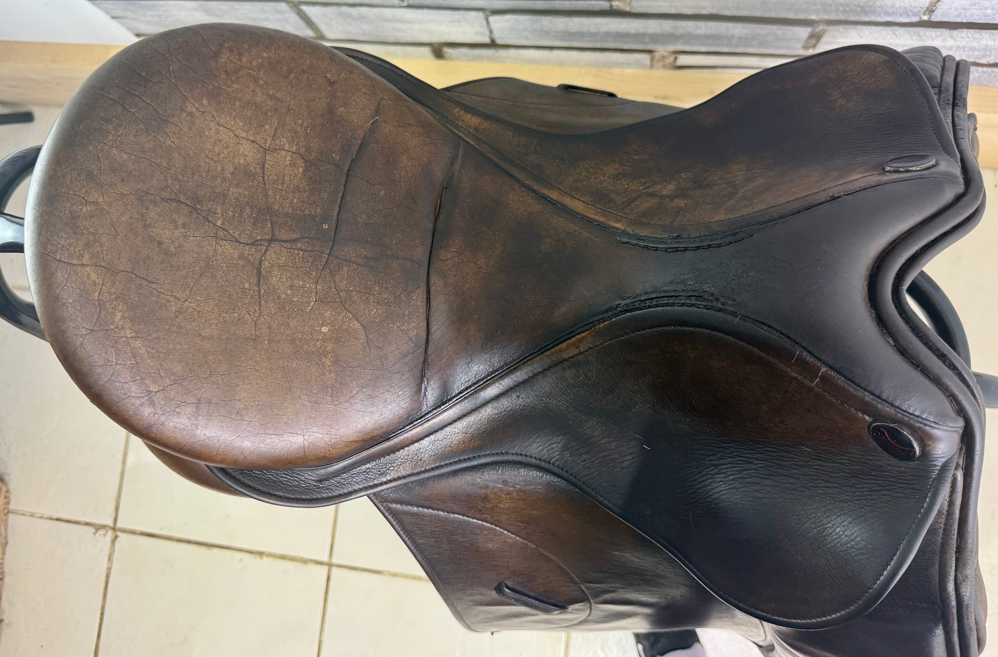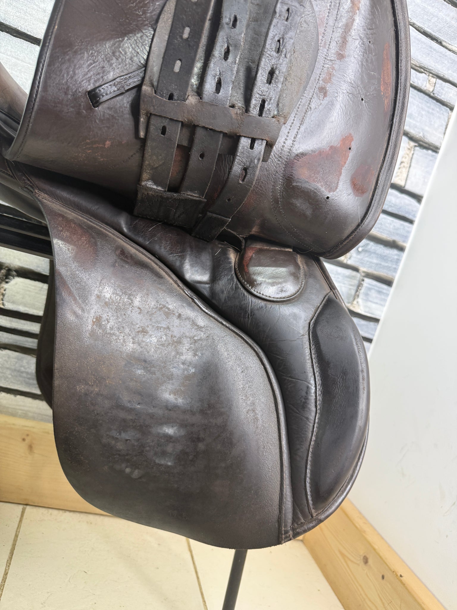 GP555 - Deep seat, big blocks. Changeable gullet - takes the Wintec/Bates gullets, as well as the original Shires ones. Fitted with a blue/wide gullet. Wool flocked panel. Used on a short backed cob. Seat has a few stitches, some new girth straps and has cosmetic signs of wear, but a really useful saddle!