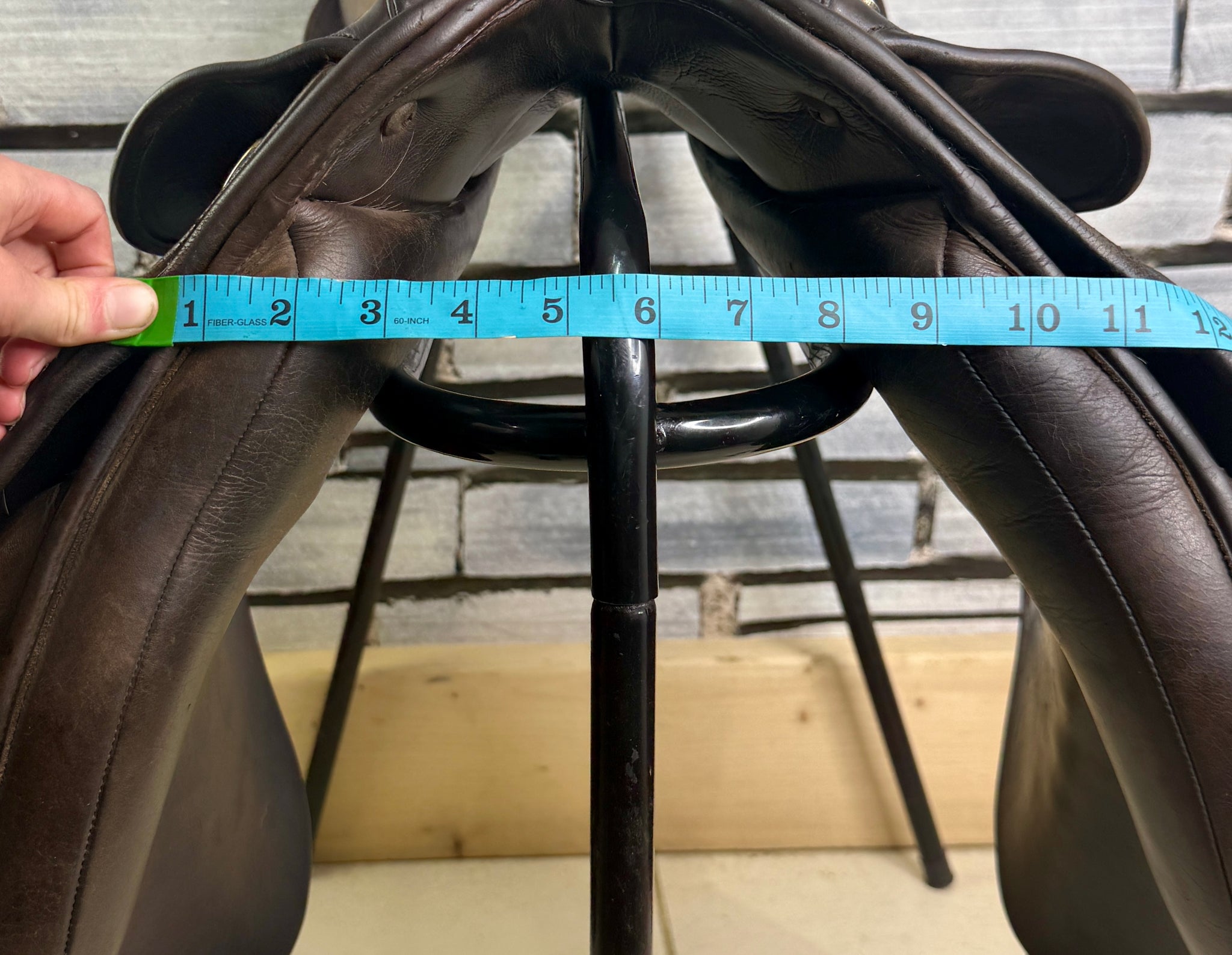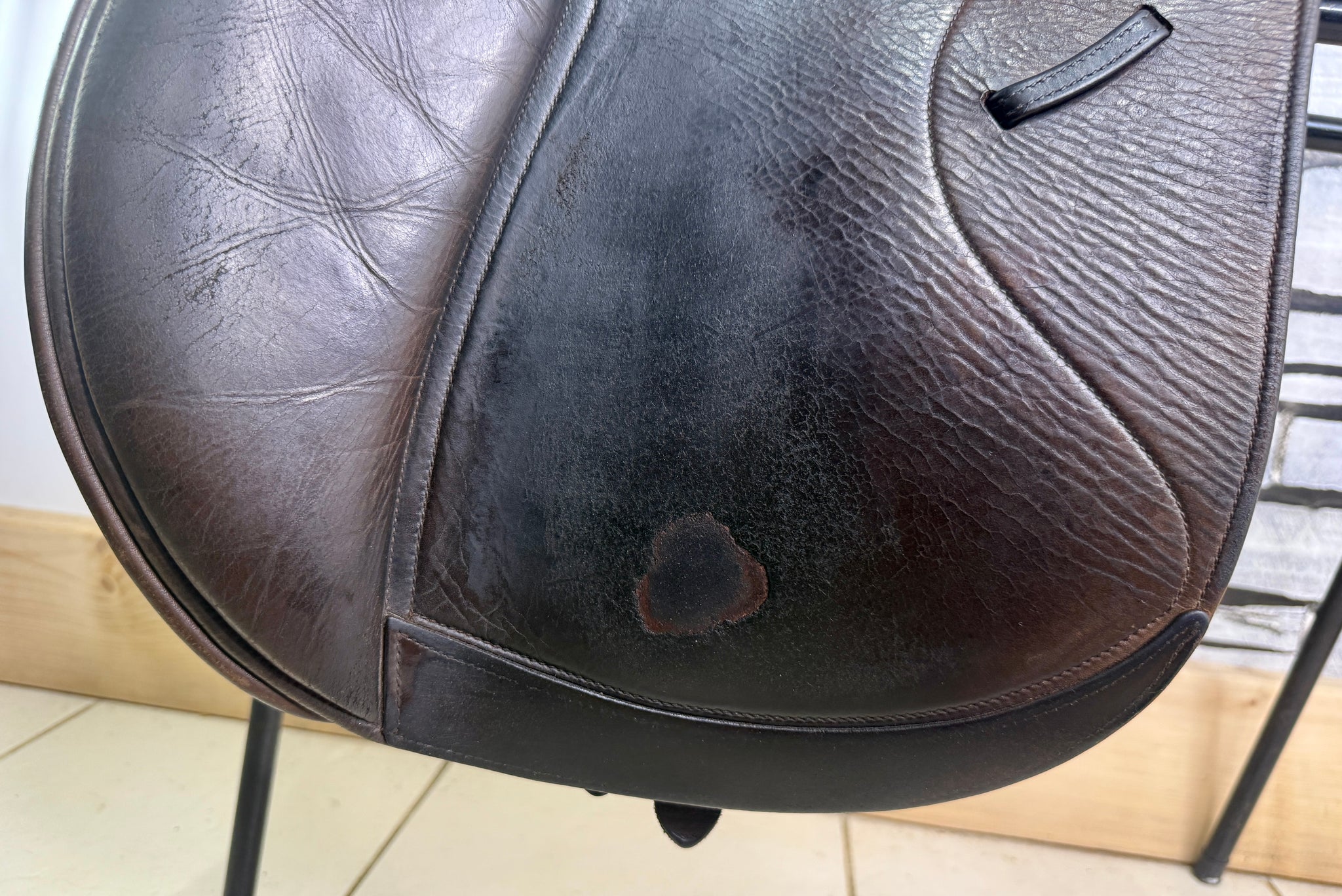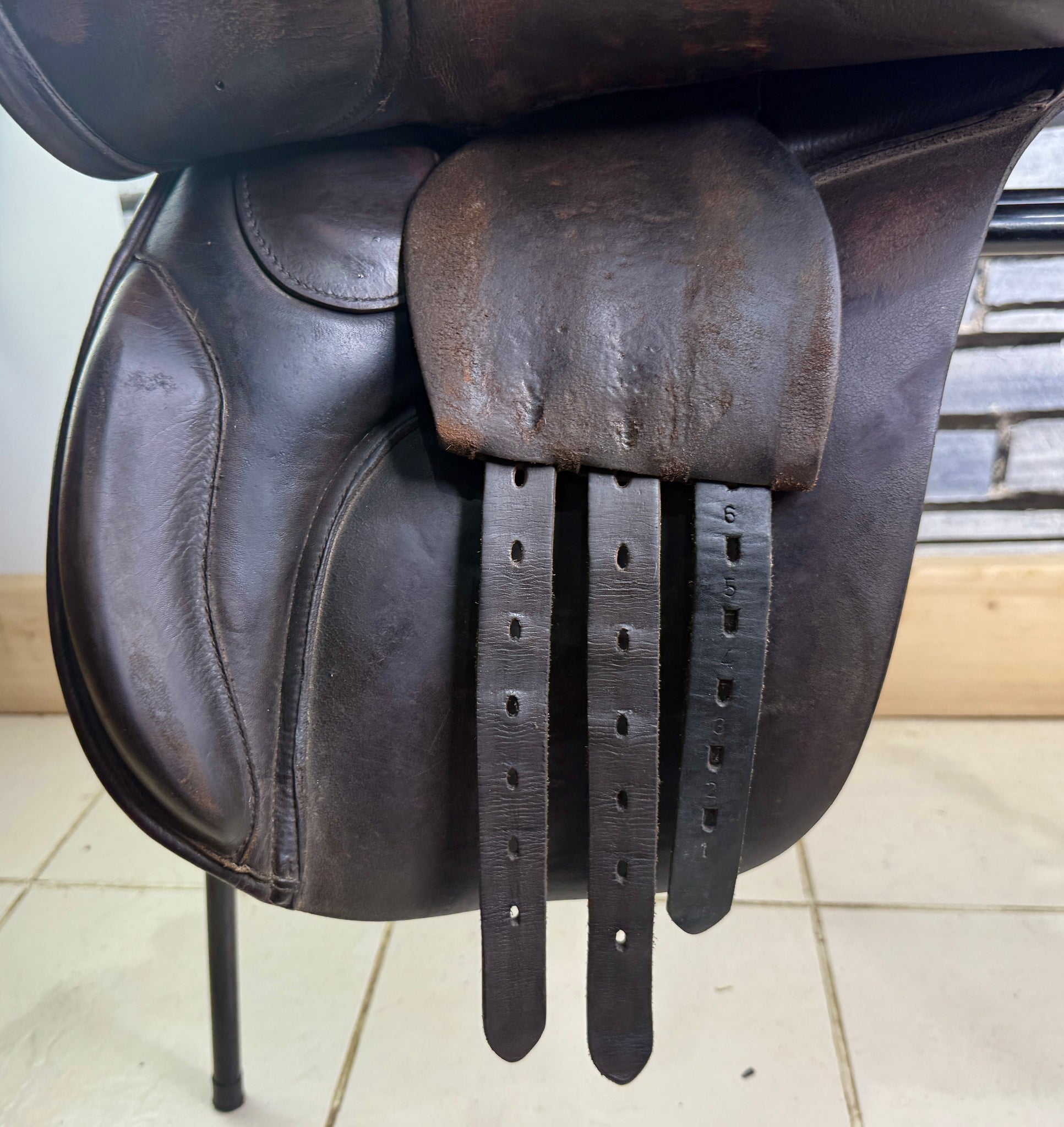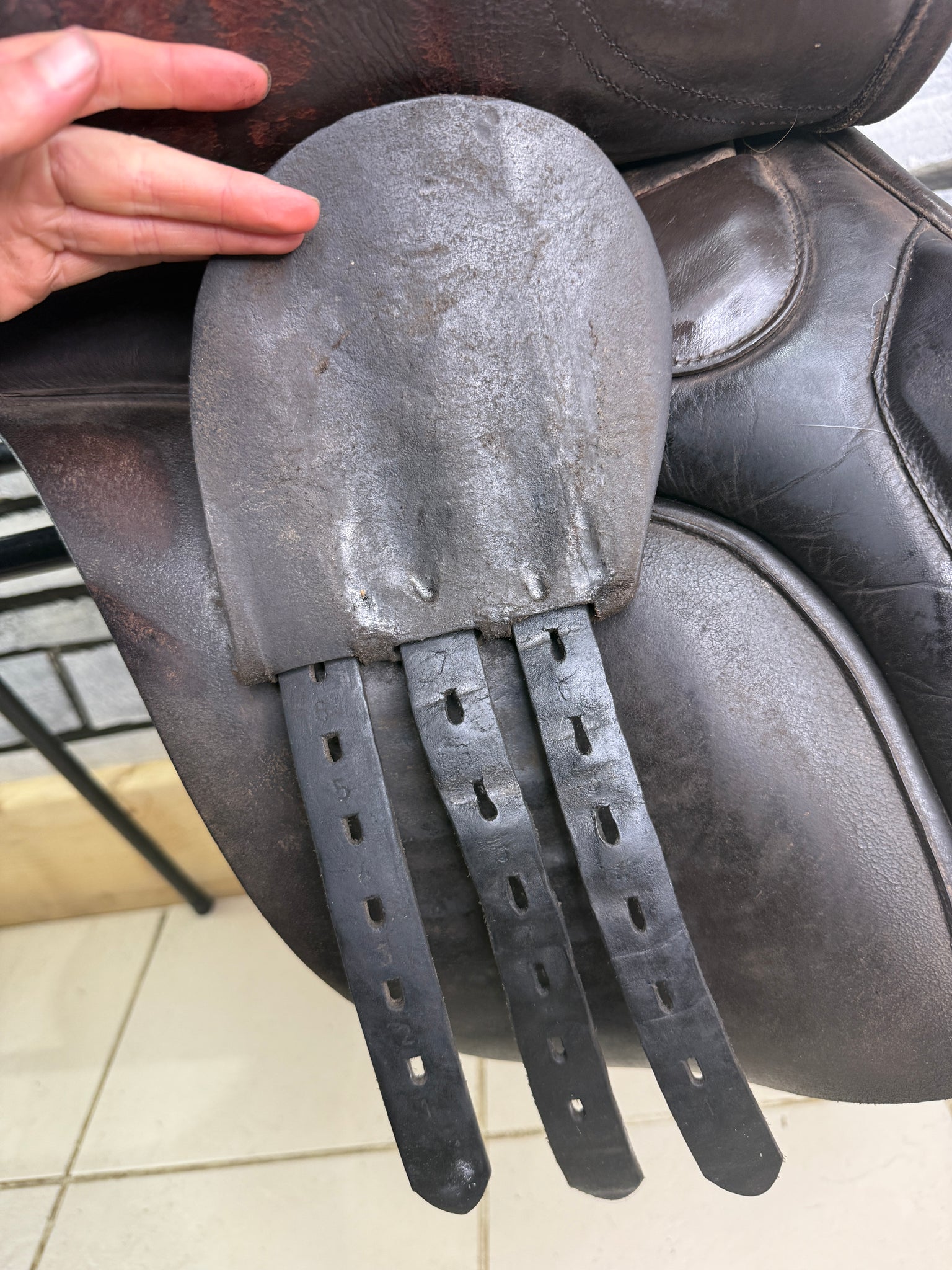 GP555 - Deep seat, big blocks. Changeable gullet - takes the Wintec/Bates gullets, as well as the original Shires ones. Fitted with a blue/wide gullet. Wool flocked panel. Used on a short backed cob. Seat has a few stitches, some new girth straps and has cosmetic signs of wear, but a really useful saddle!