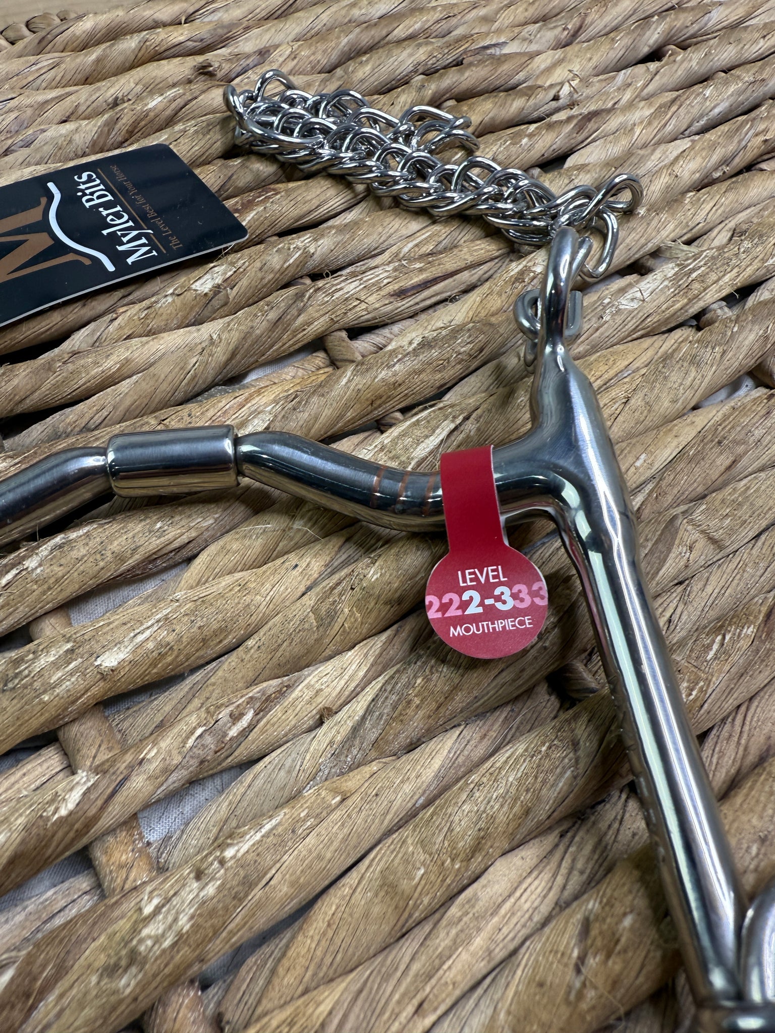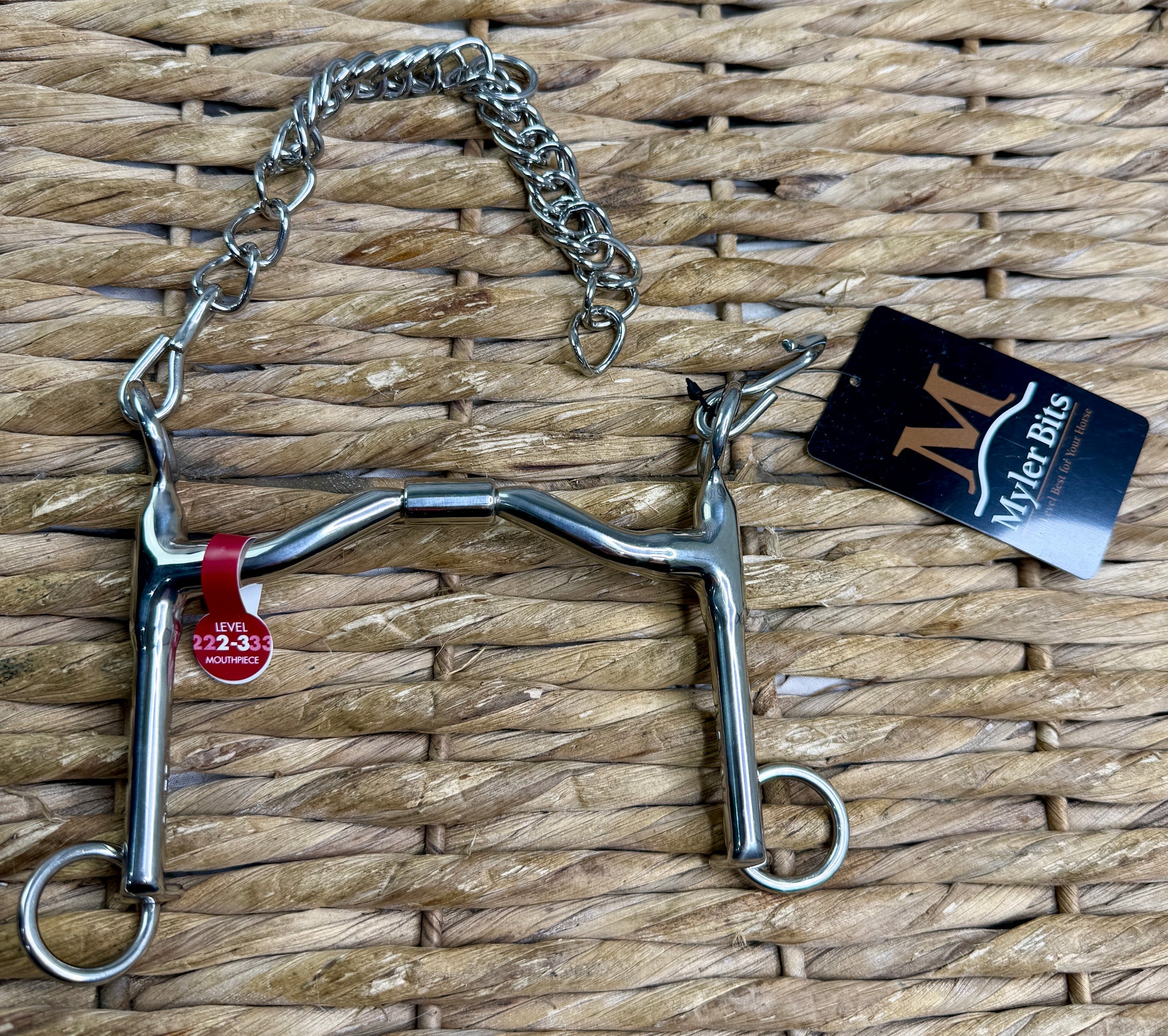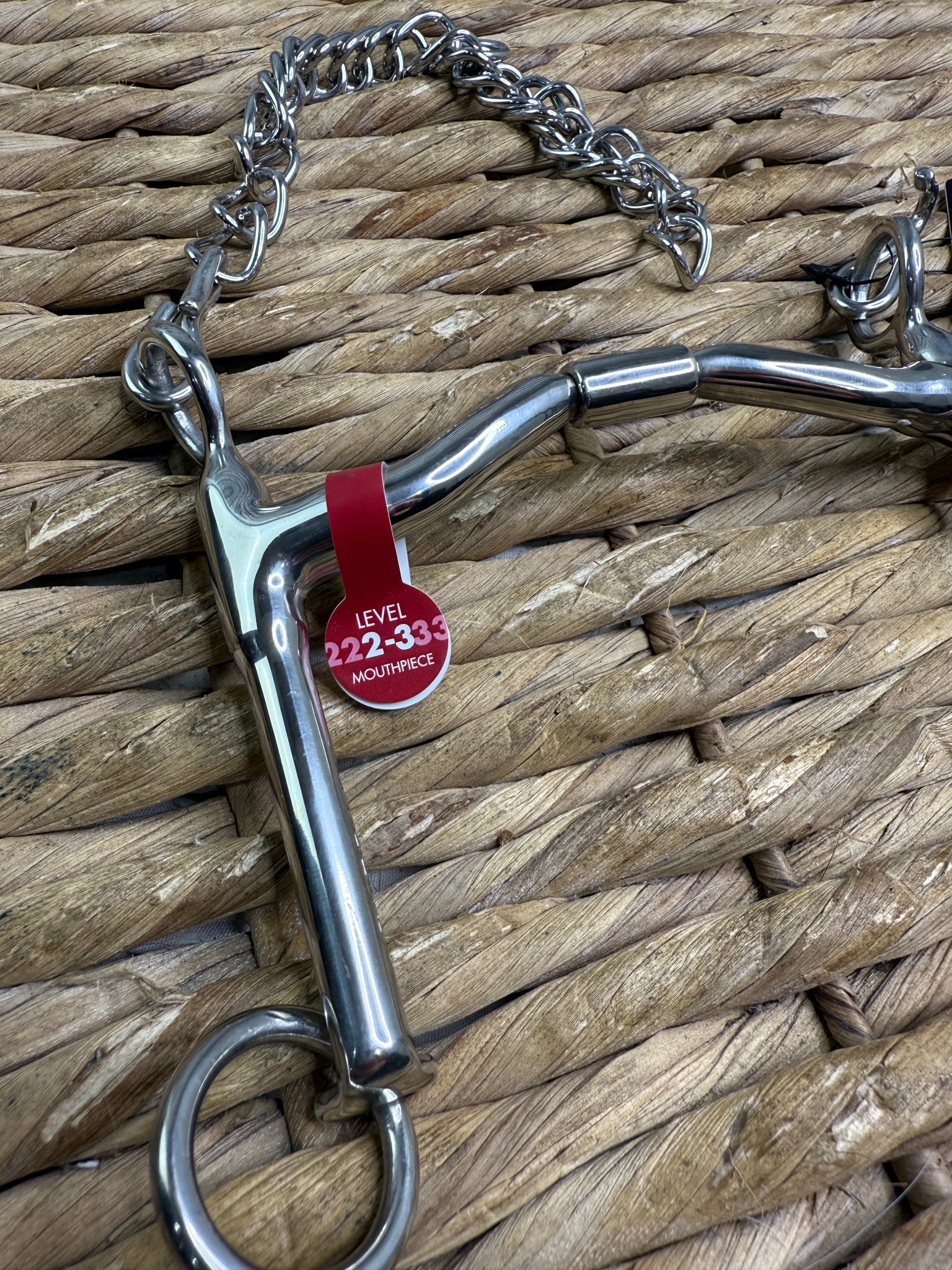 5” Weymouth low, wide port and fixed cheek. New with tags. with curb hooks and chain.