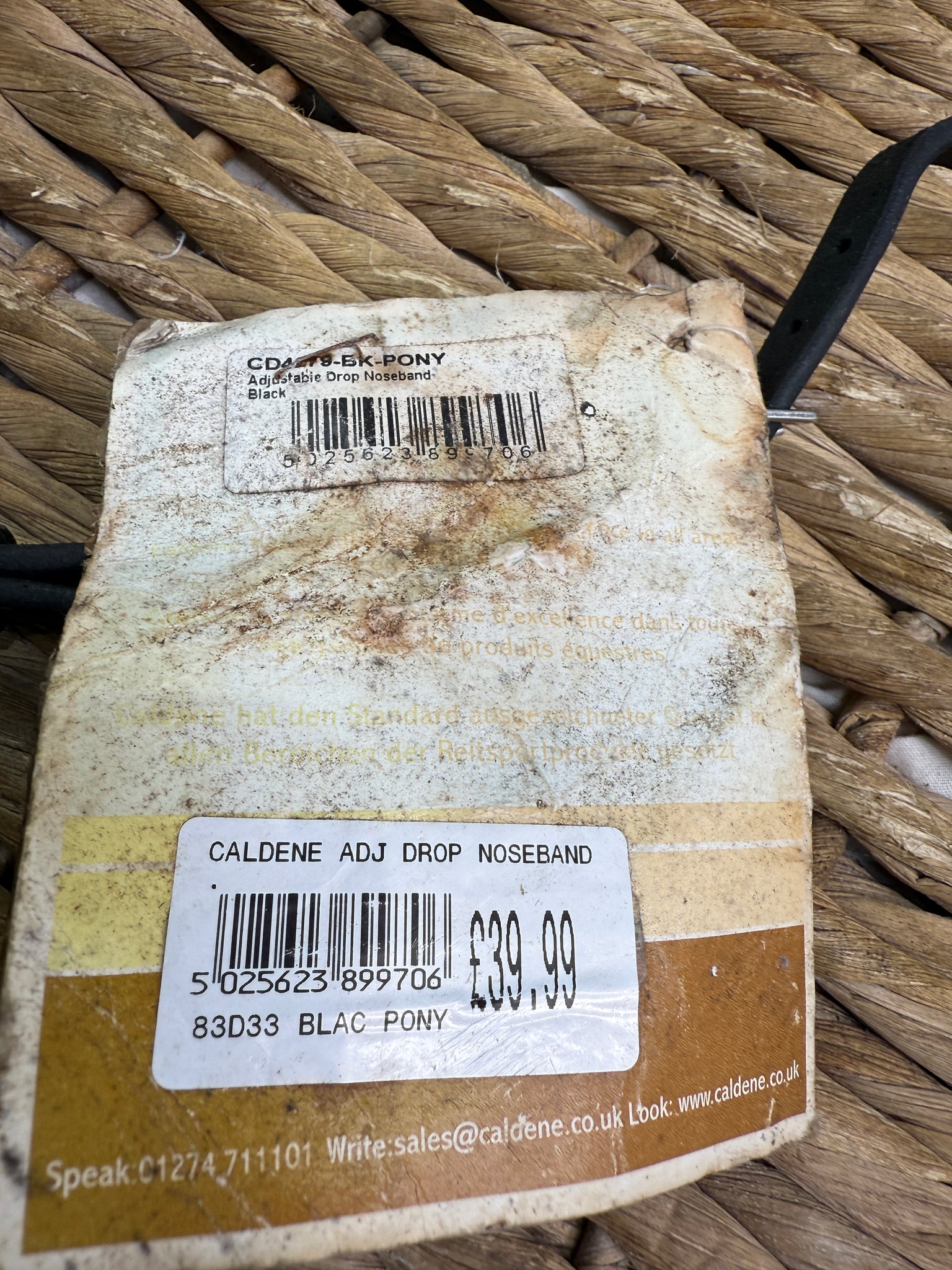 S/H Caldene Adjustable Padded Drop Noseband -Black- Pony