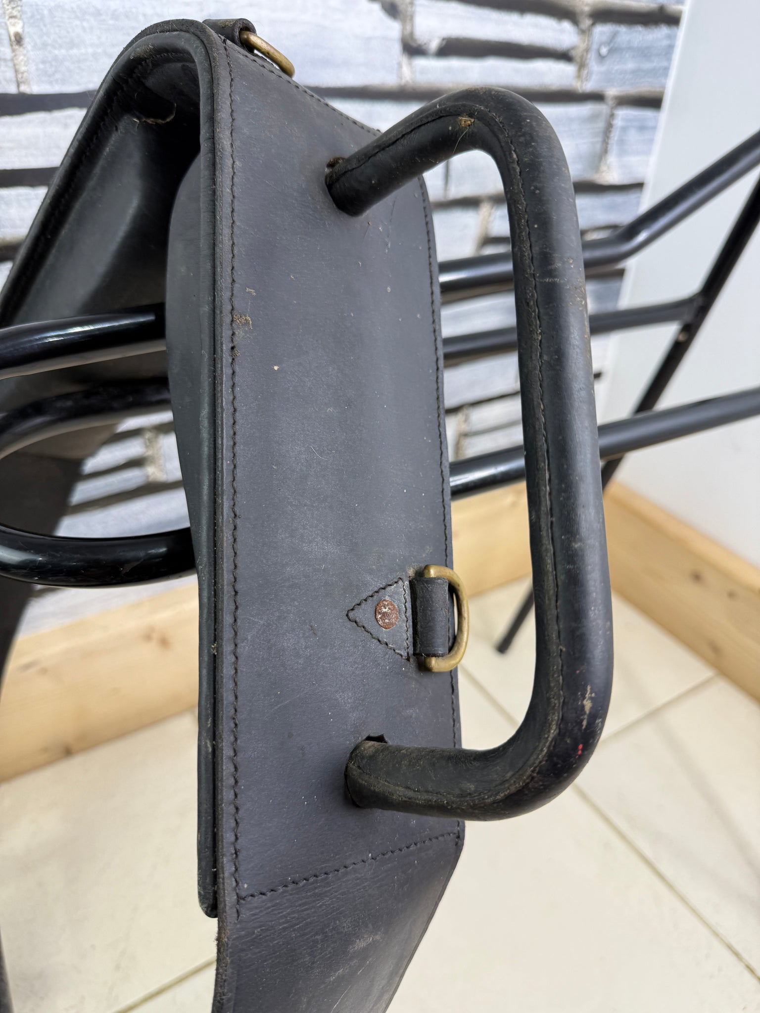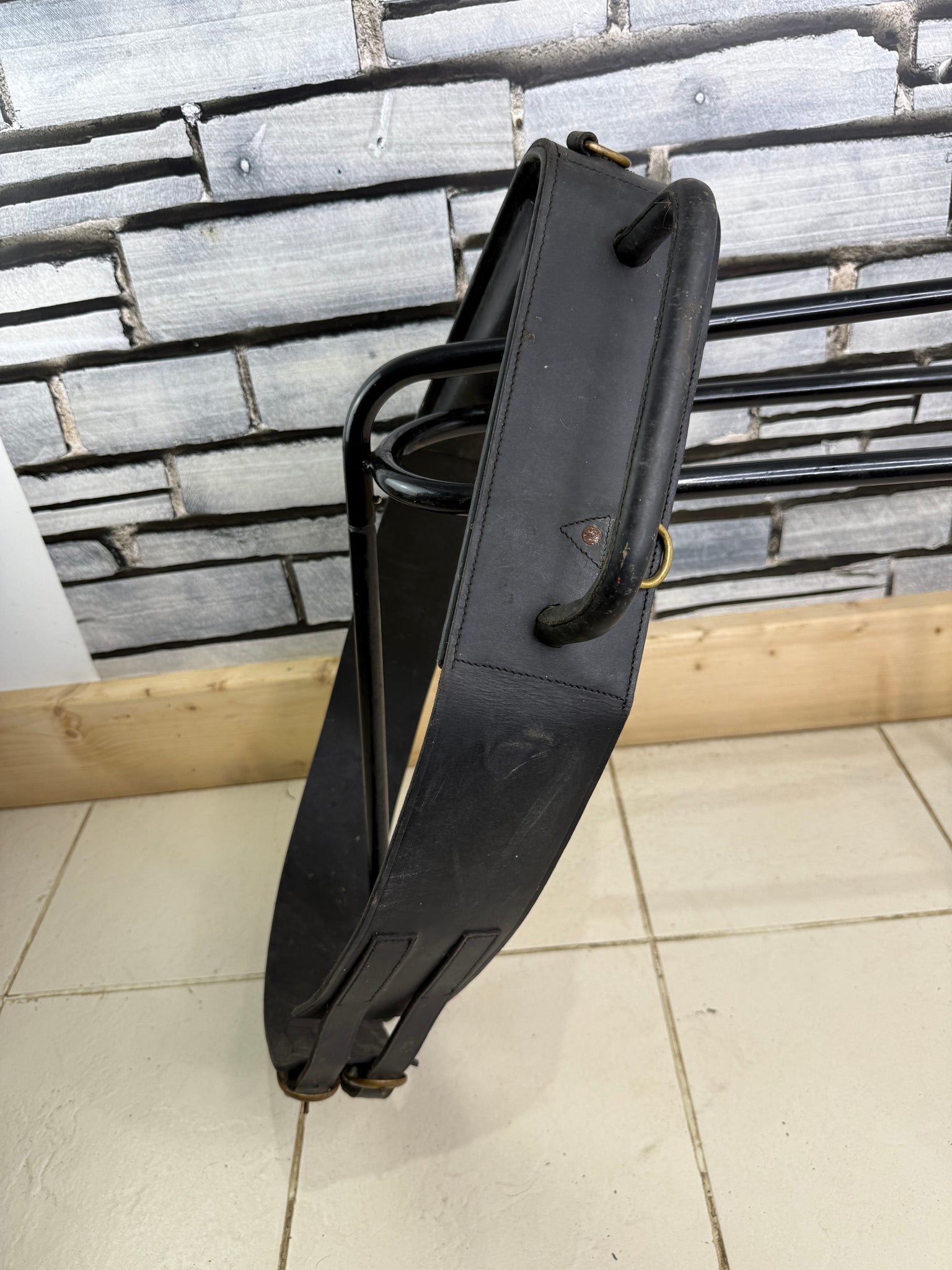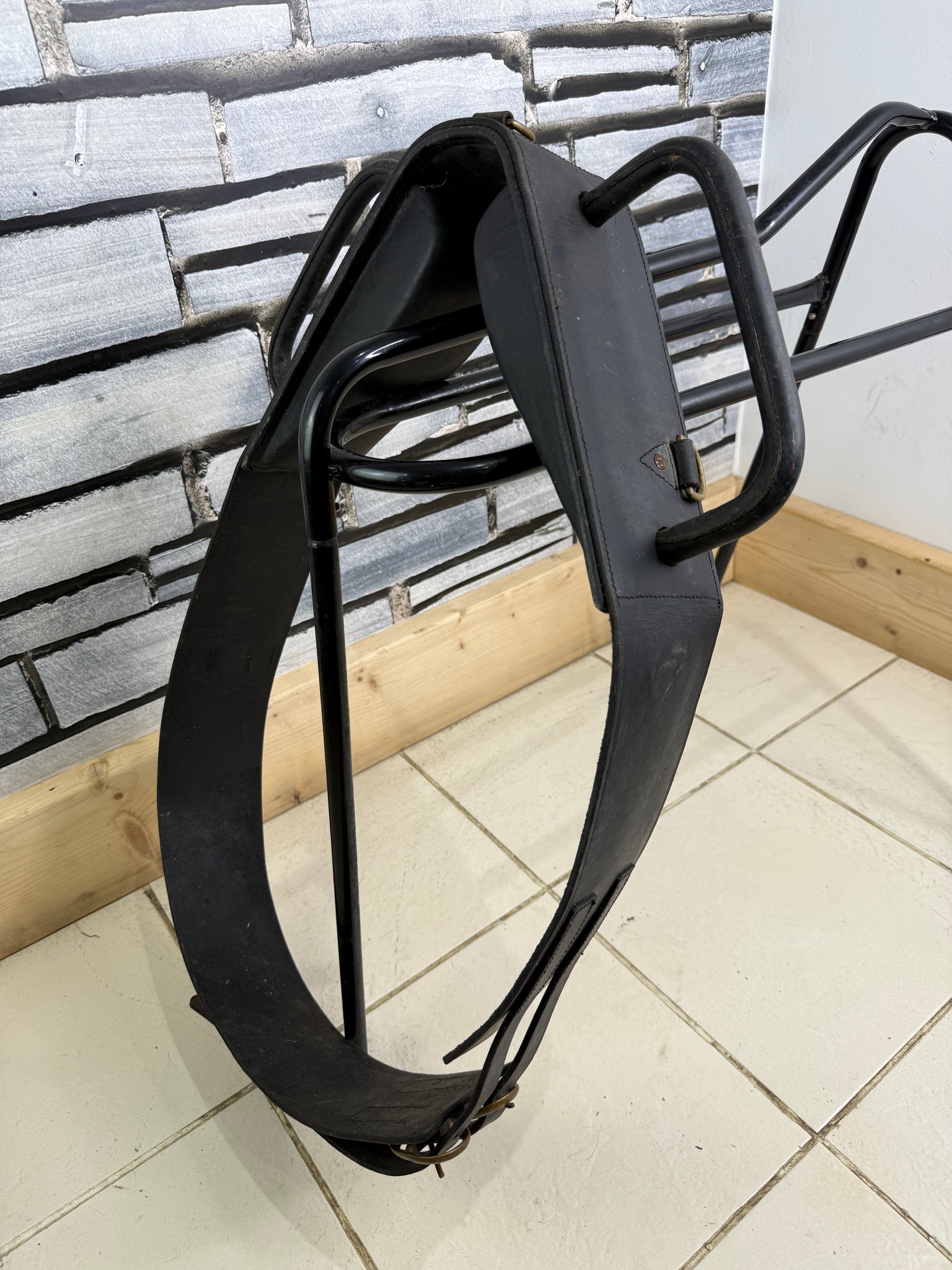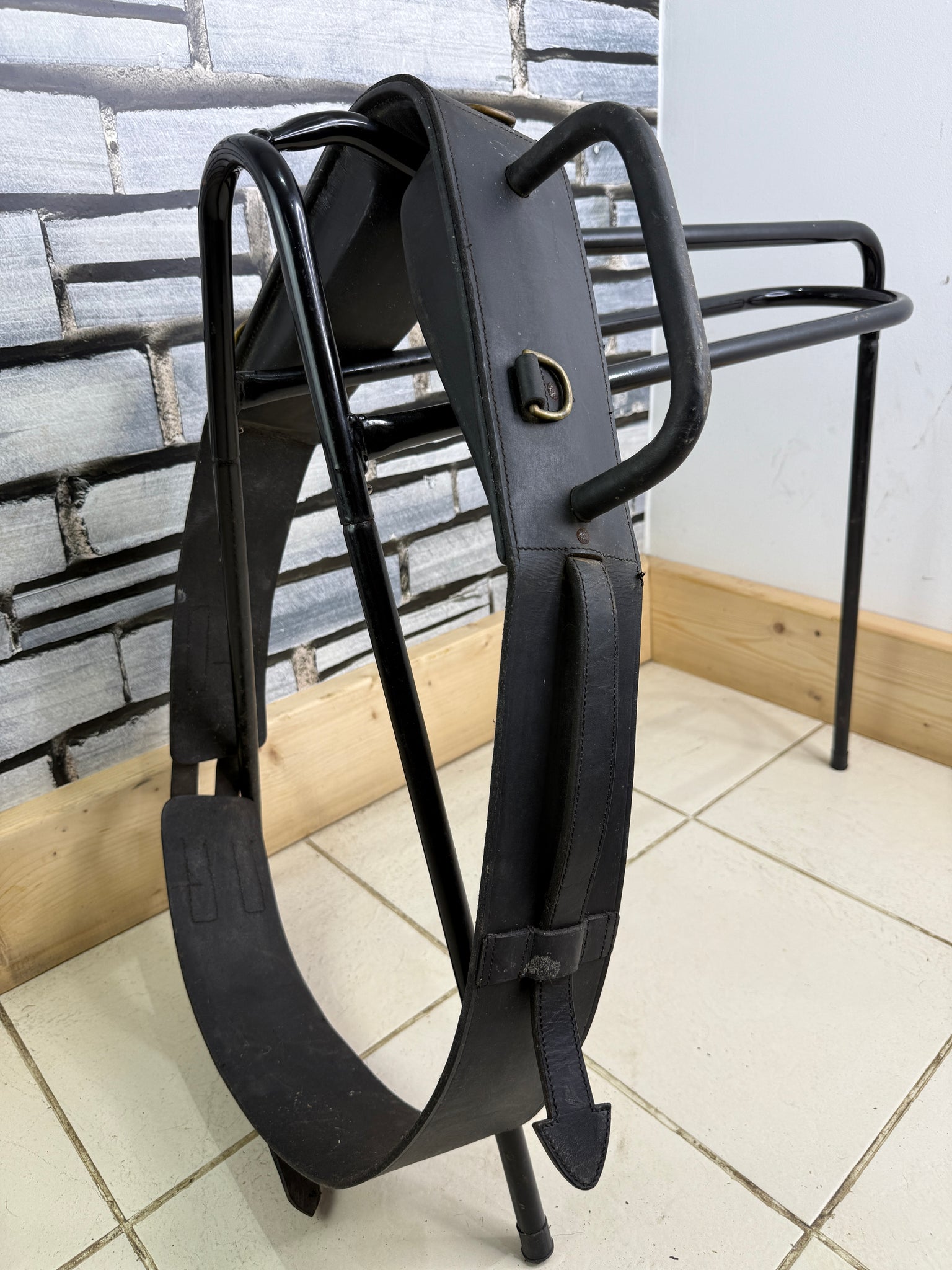Well made, very solid. Brass fittings. Foam pads, wide leather with square fixed rings. Not had much use.