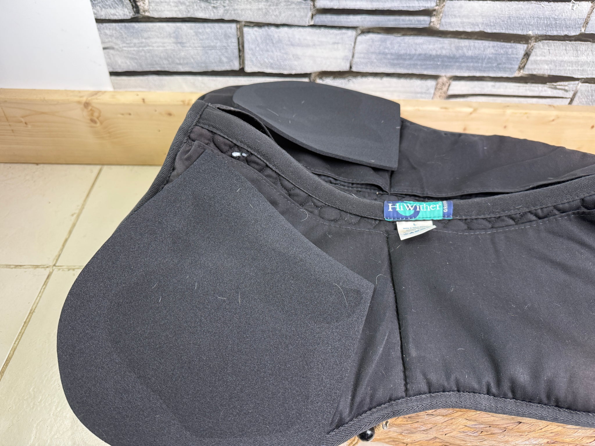 Top quality, quilted cotton high wither shaped fit. Pockets to add shims to use as a front or rear riser or used alone as a half pad.