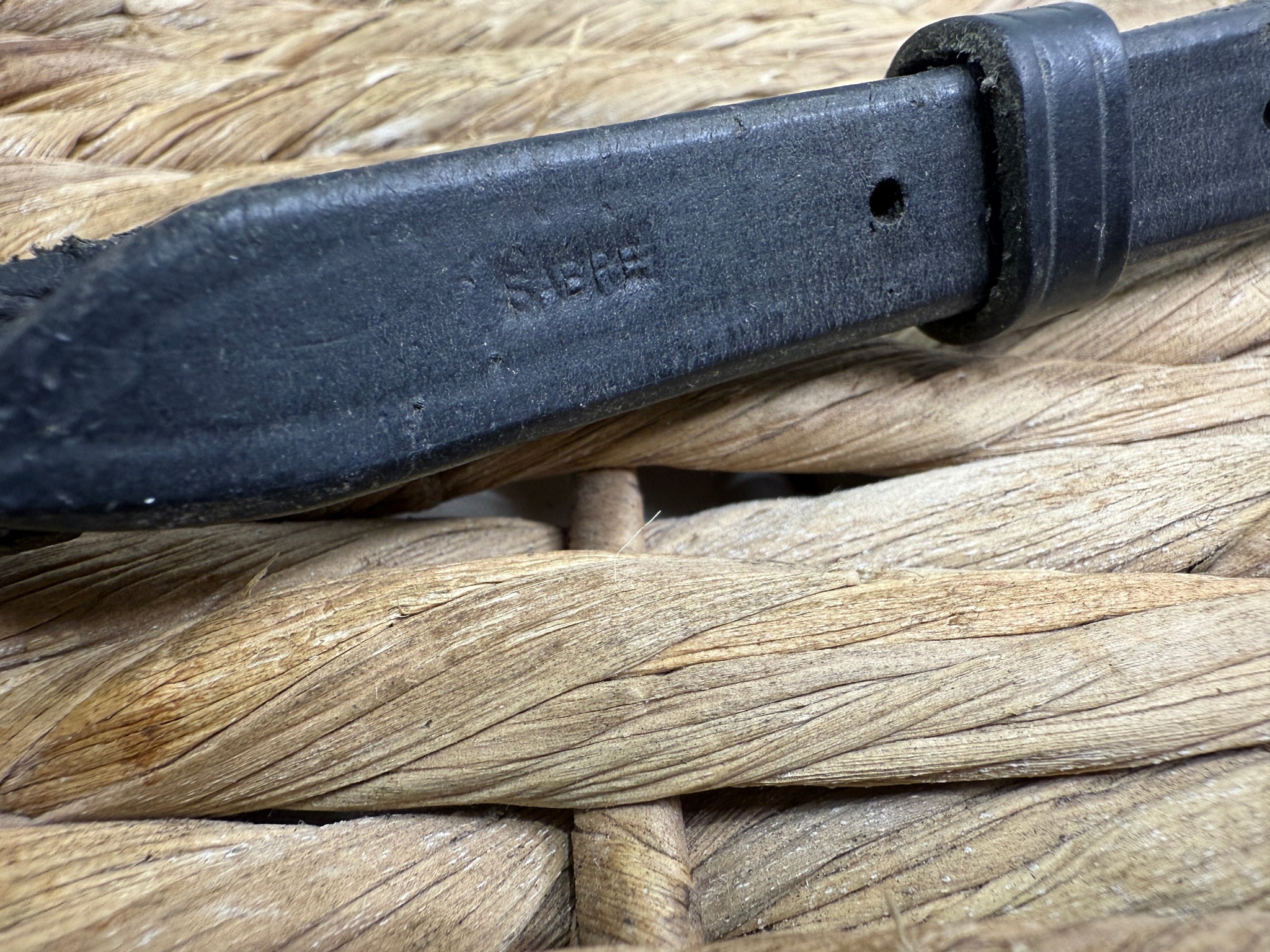 Chunky 5/8” strap work. Made by Sabre. Stamped F/S. Very good used condition.