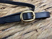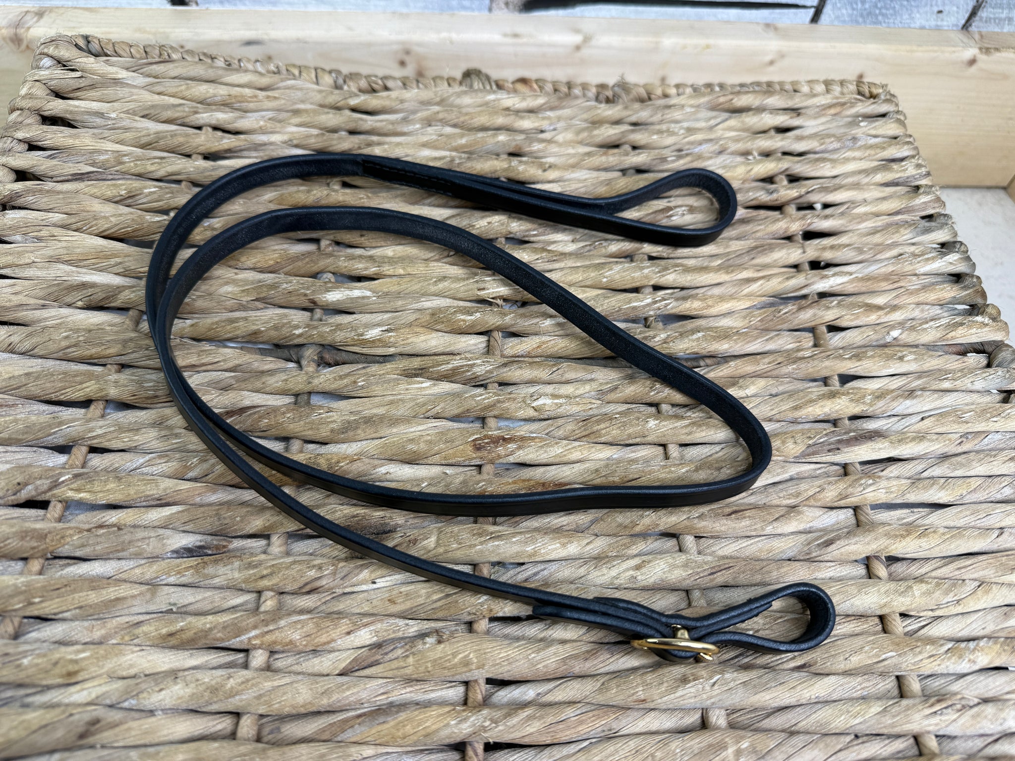 Lovely quality leather. Brass fitting. For inhand and lead rein showing, can attach to the noseband or to a coupling.