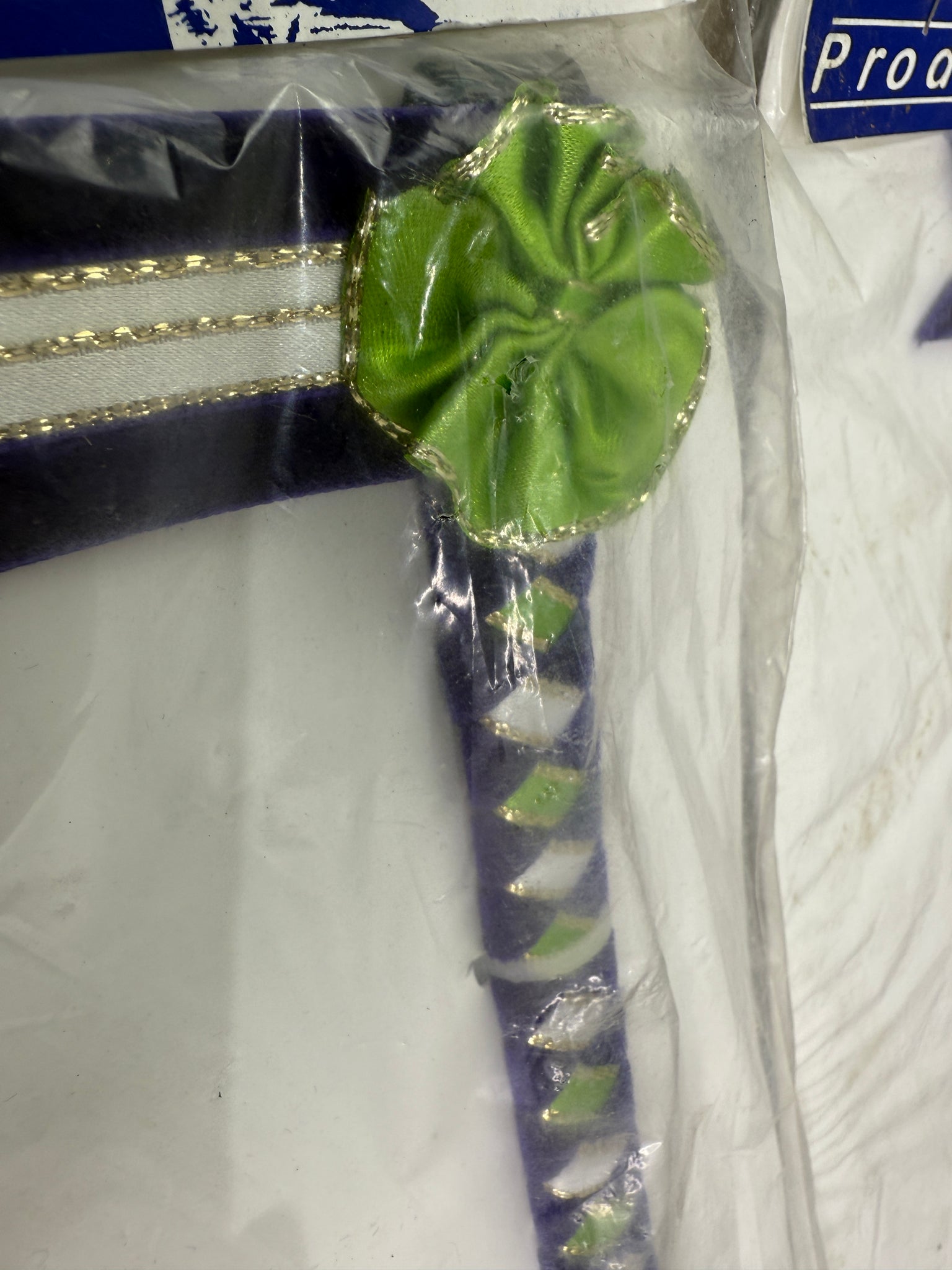 Show Velvet Browband with Rossettes - Green/White/Purple