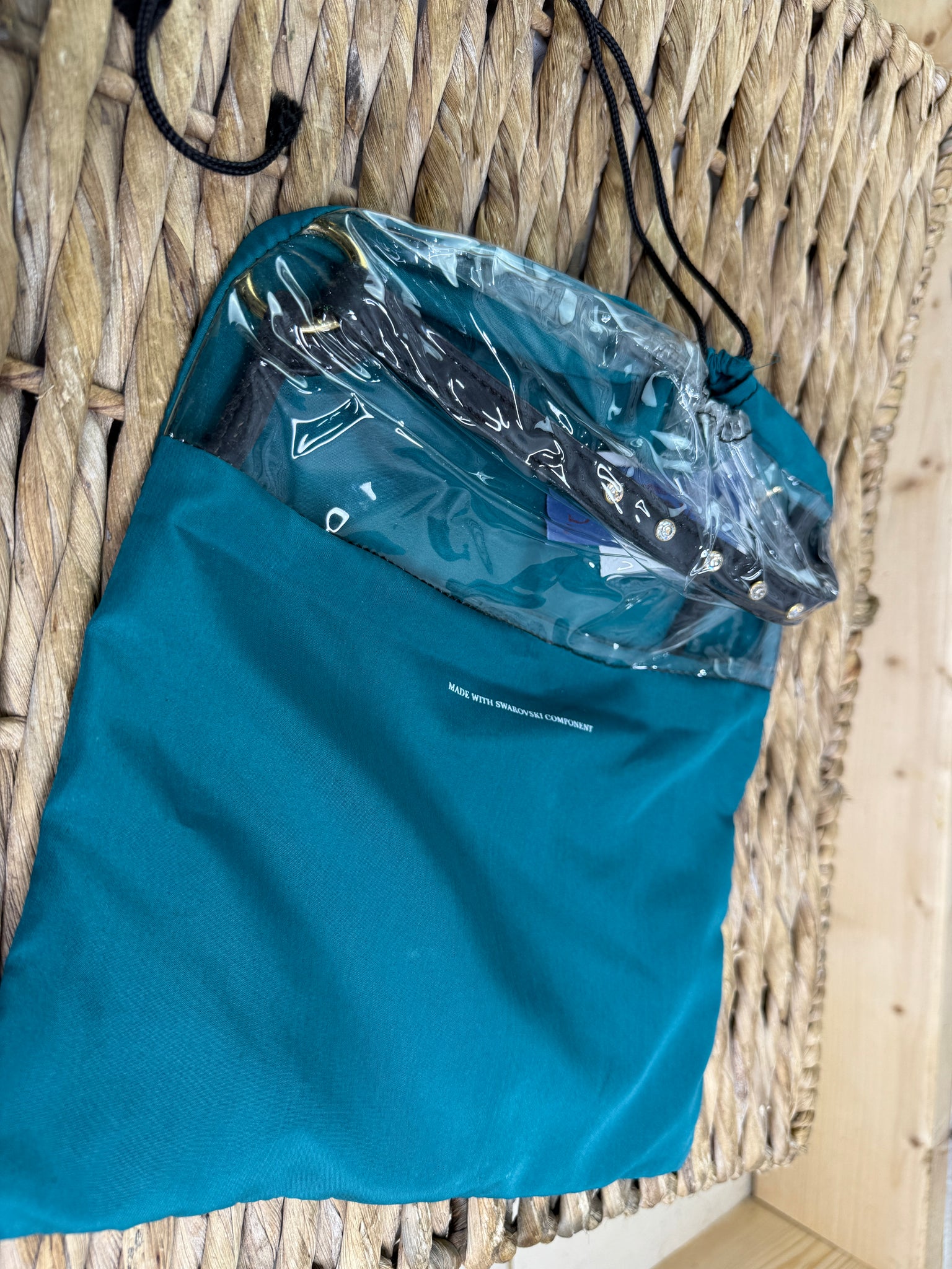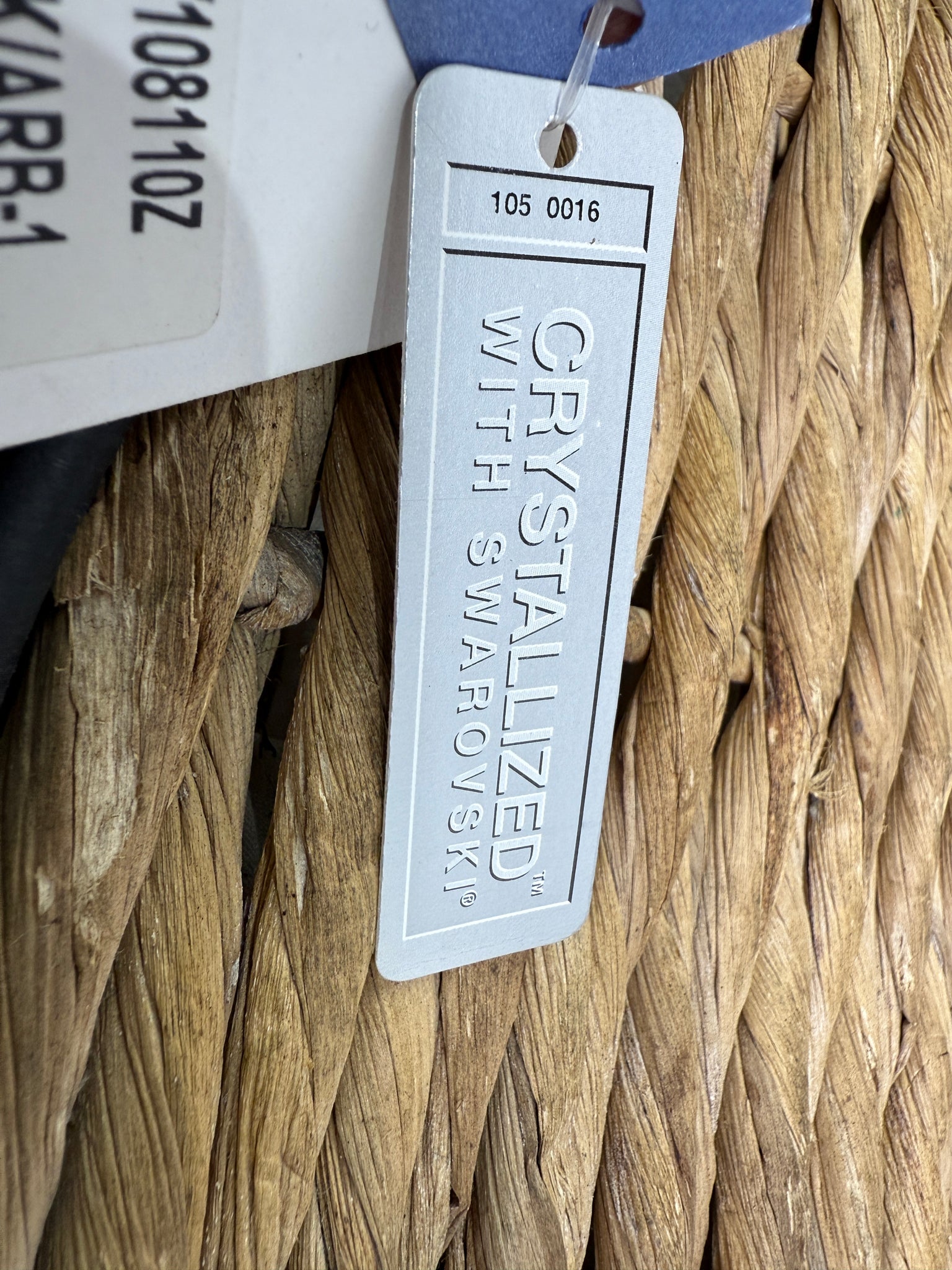 Beautiful rolled leather in-hand halter, brass fittings. Five round Swarovski crystals on the nose.