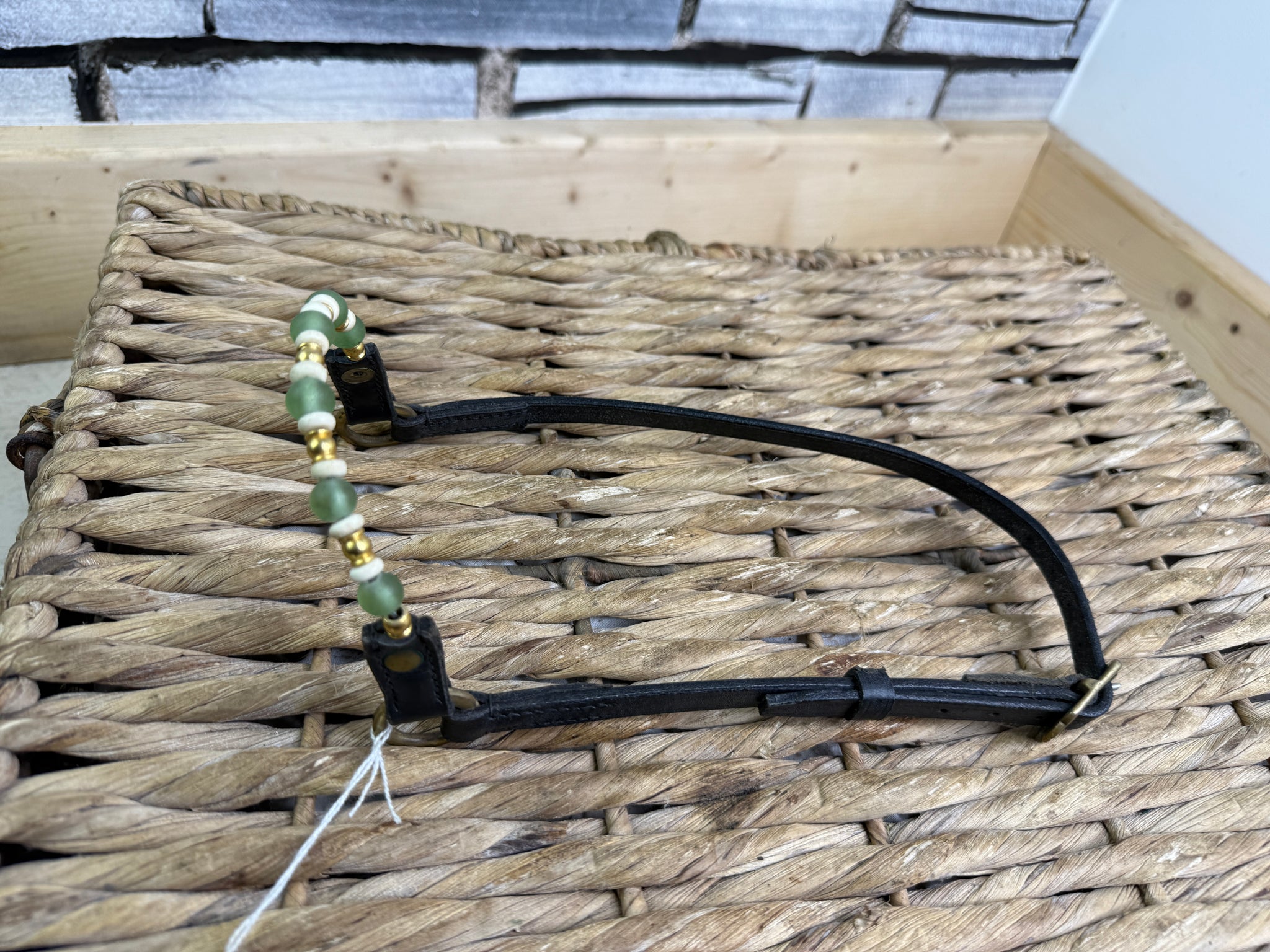 Beautiful leather in-hand halter, brass fittings. Beaded noseband.