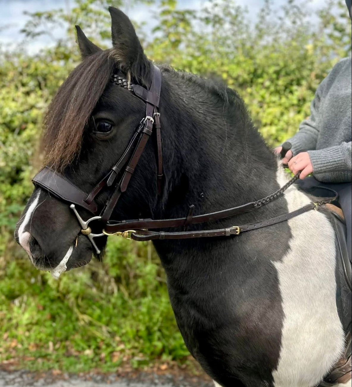 Very smart comfort bridle. 1 3/4” wide noseband, 1” Browband. 5/8” cheekpieces.
