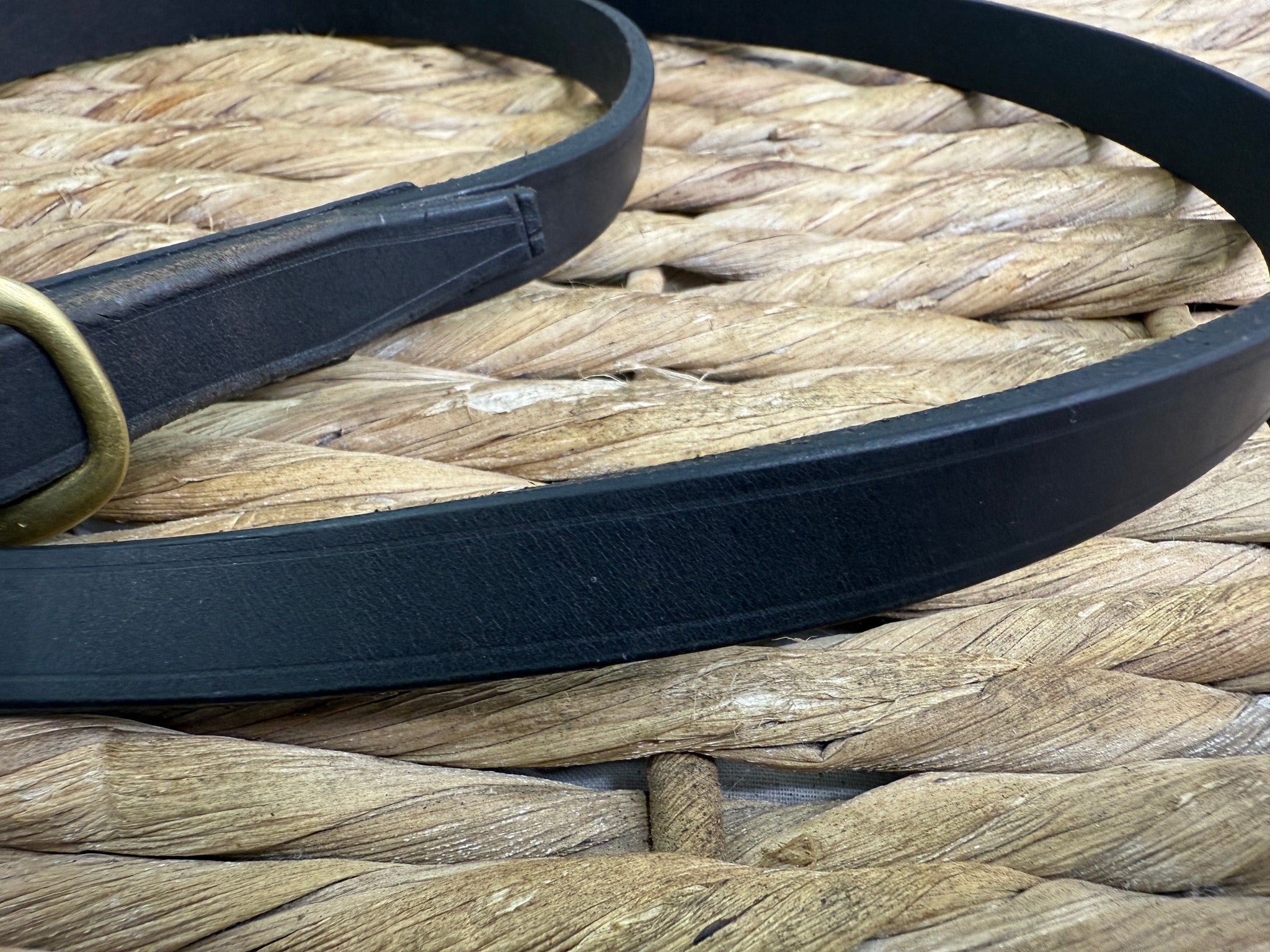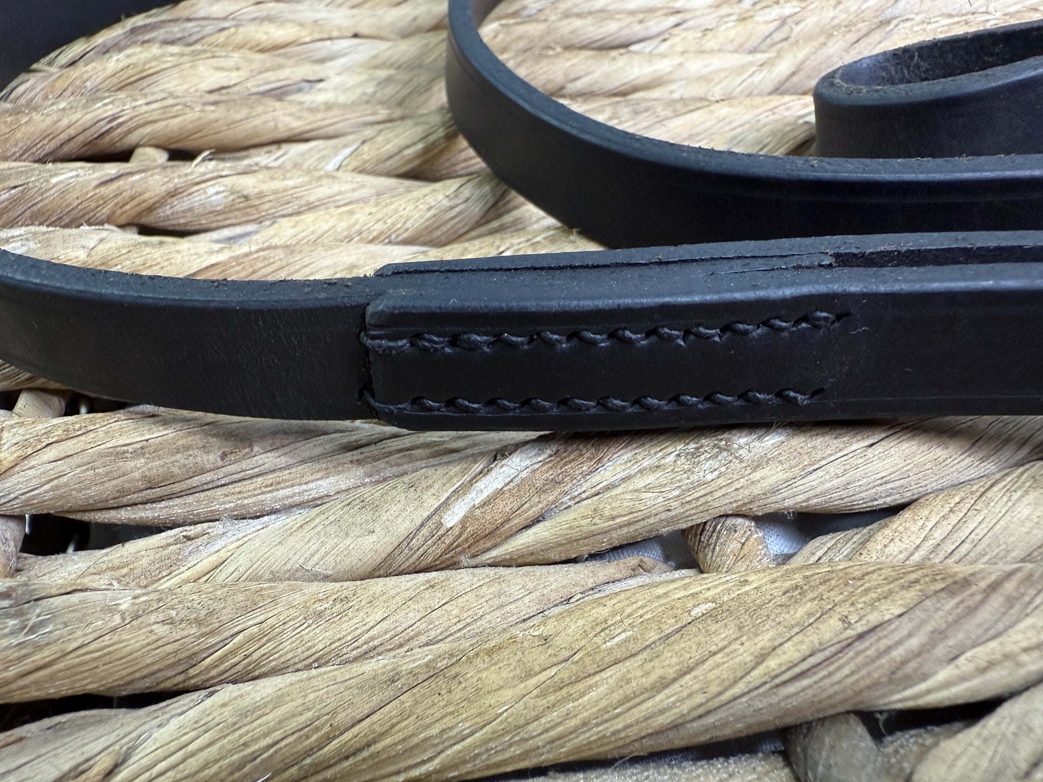 Lovely quality leather. Brass fitting. For inhand and lead rein showing, can attach to the noseband or to a coupling.