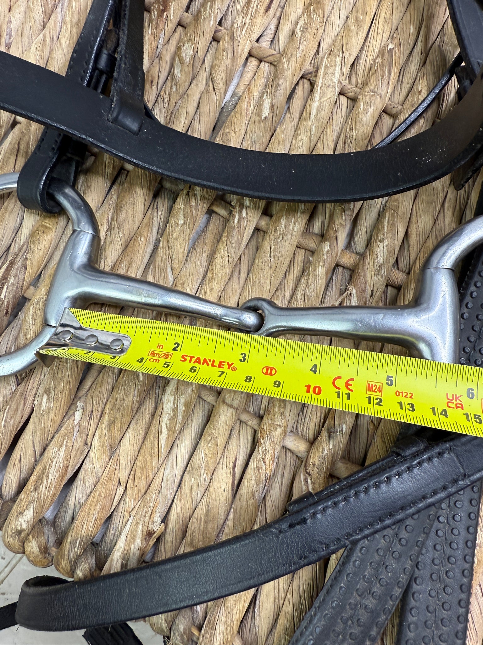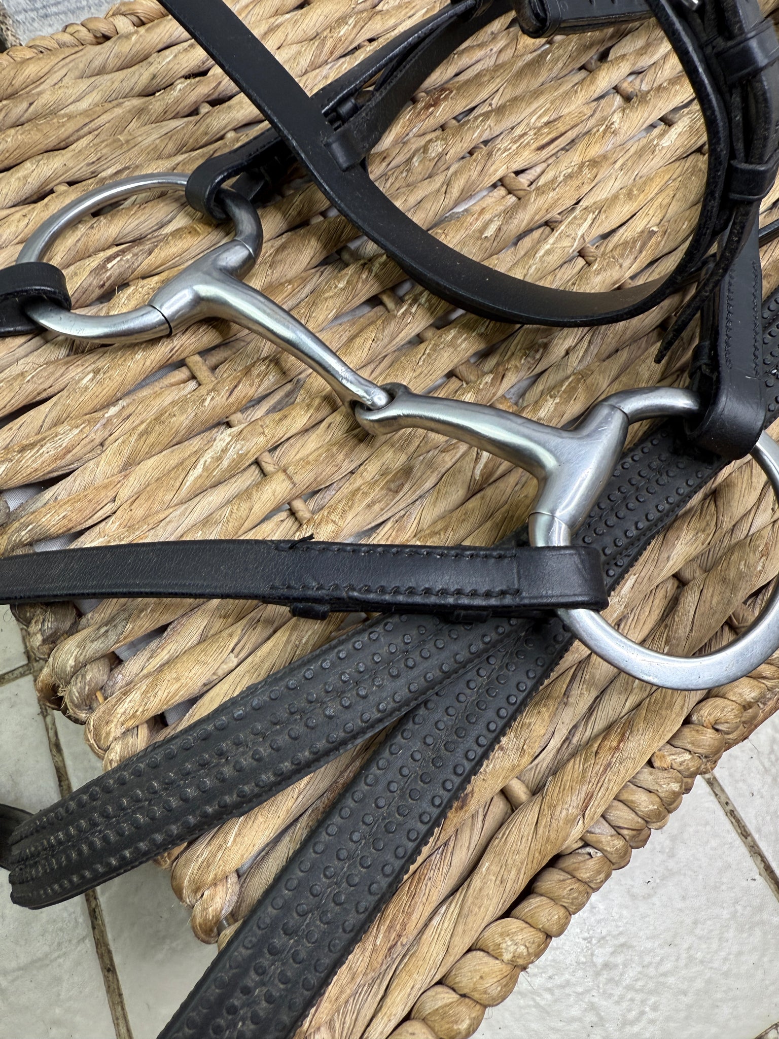 Lovely quality. Smart hunter bridle that hasn’t had a lot of use. Wide rubber grip reins. 5 1/4” snaffle. Good, workmanlike setup, ready to use.