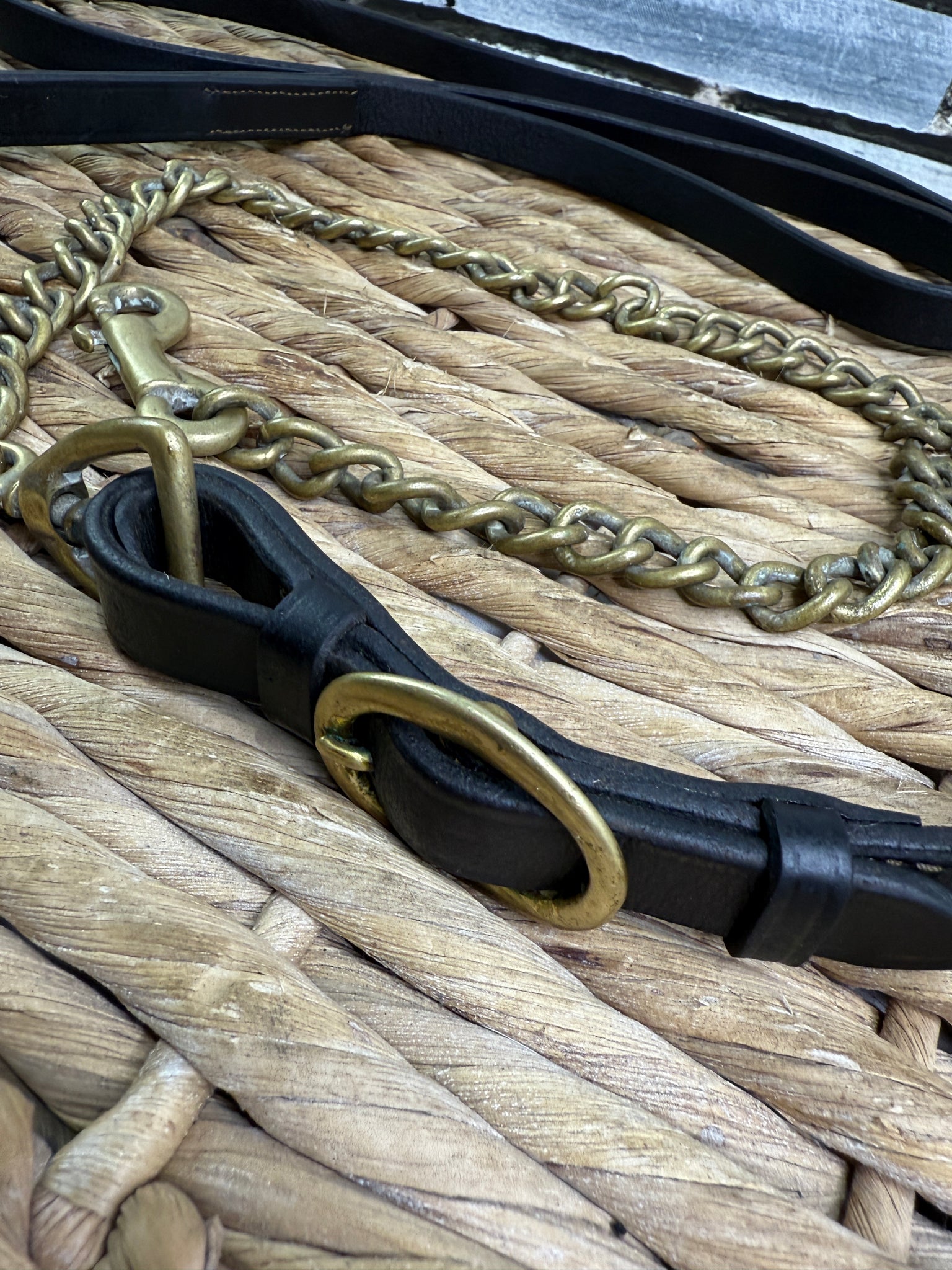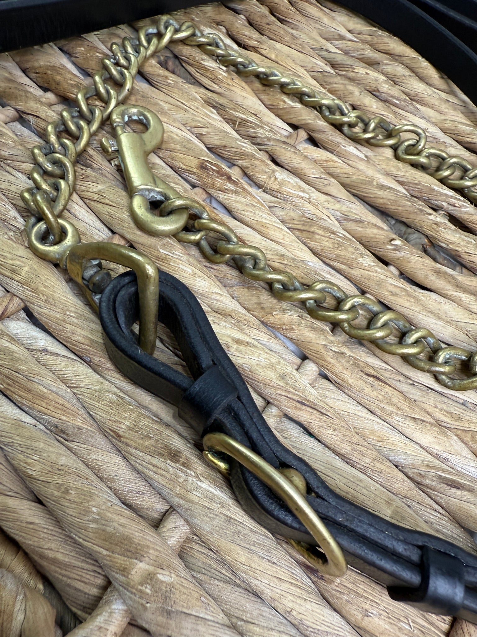 Very good used condition. Smart set. 3/4” wide leather lead with buckle, onto a heavy duty stallion chain with clip.