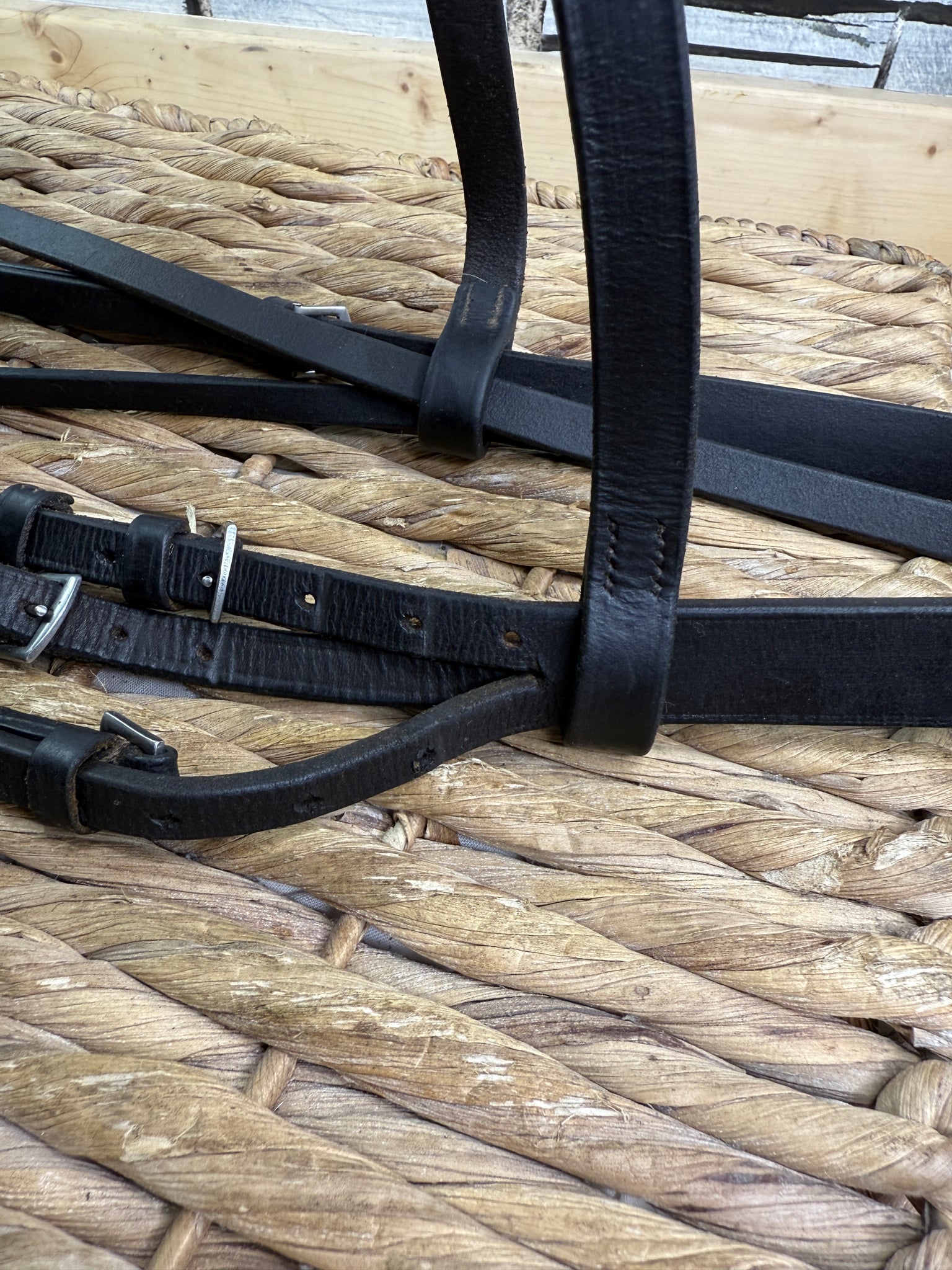 Good quality flash bridle, proper English leather. Used, leather is supple and safe. Stamped C but is big - more likely to fit a full!