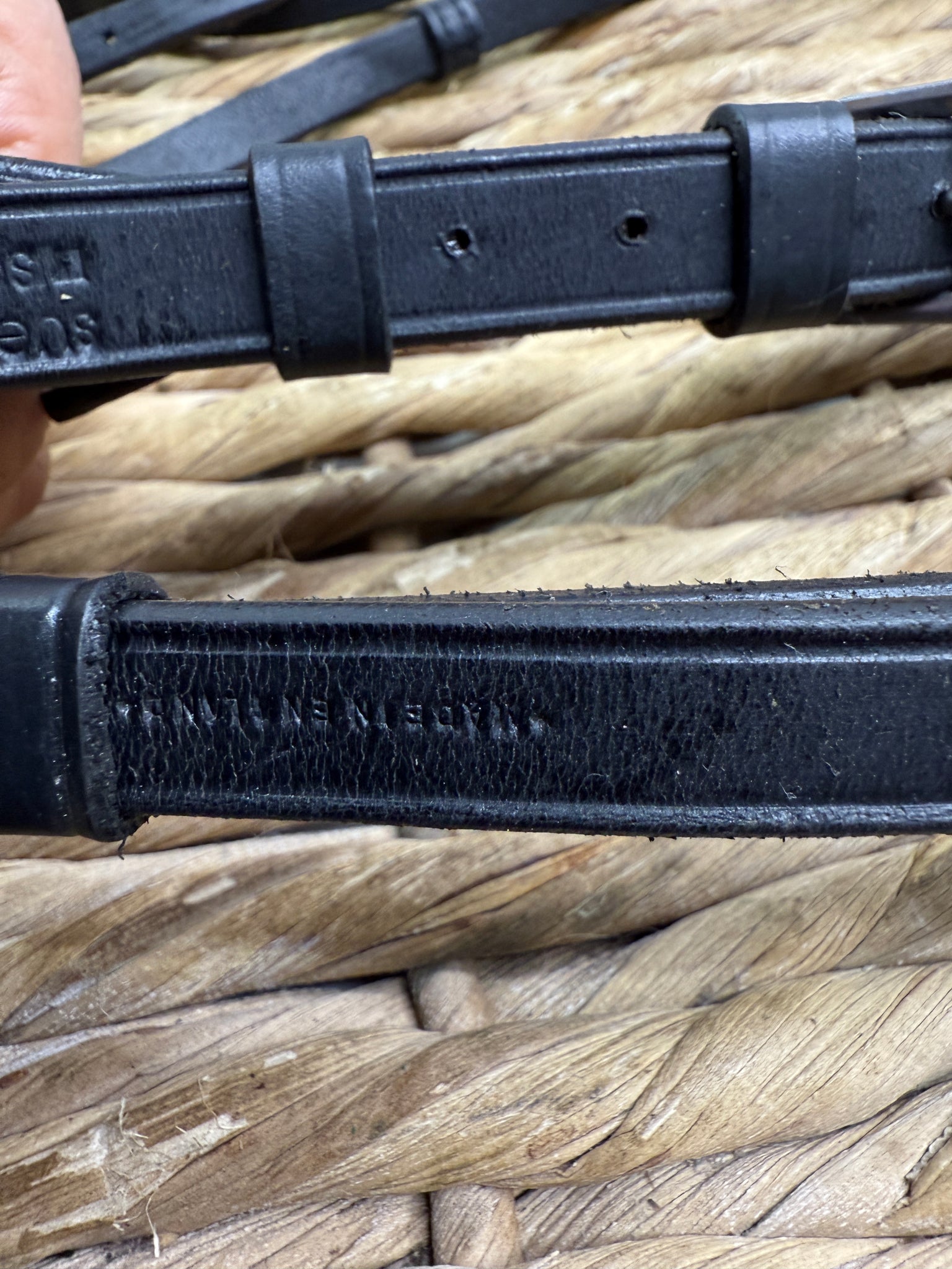 Full size.  Good looking flash bridle, used for a couple of competitions only. Leather is super soft and supple. Excellent quality. Flash is hidden under the nose and looks very neat and discreet on the horse.