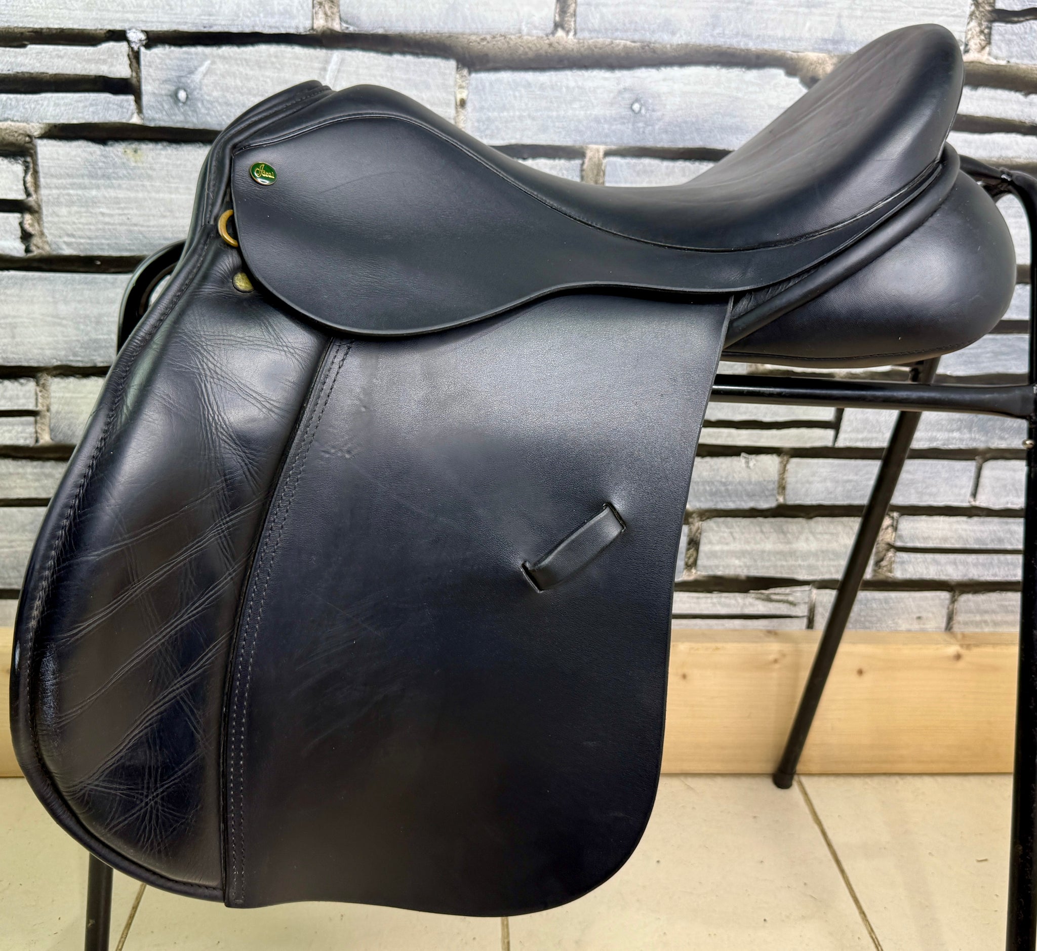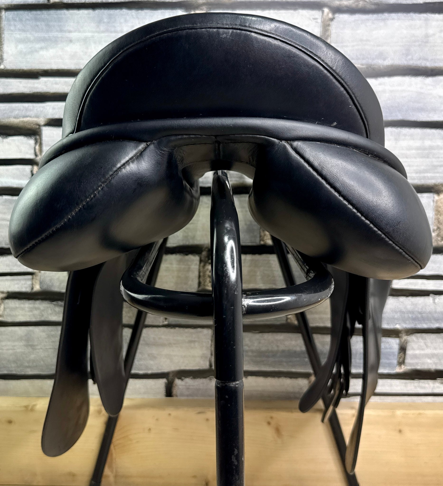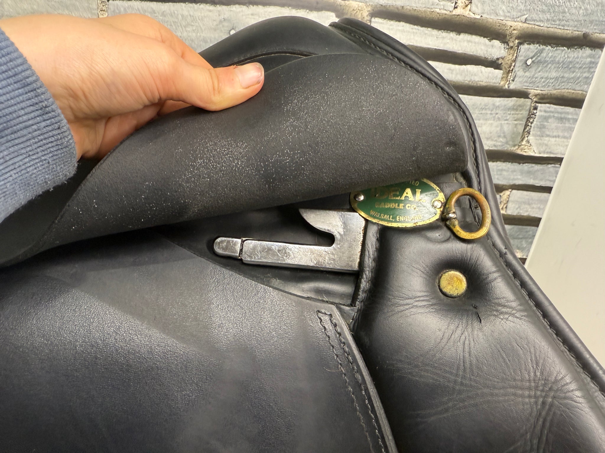 GP558 - Really useful saddle in excellent used condition. Good blocks, moulded knee pad, very comfy. Wool flocked panel. Stamped 18 W, but measures like a 17 1/2”.
