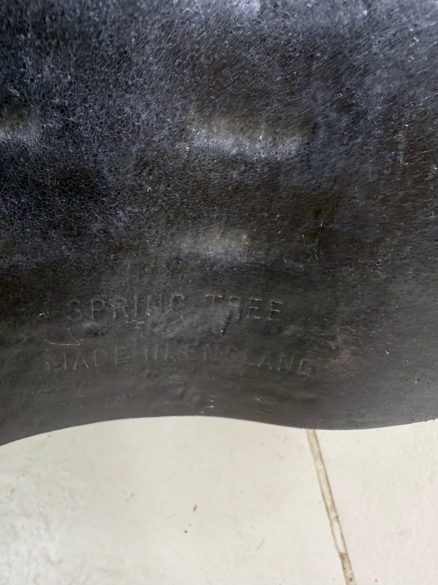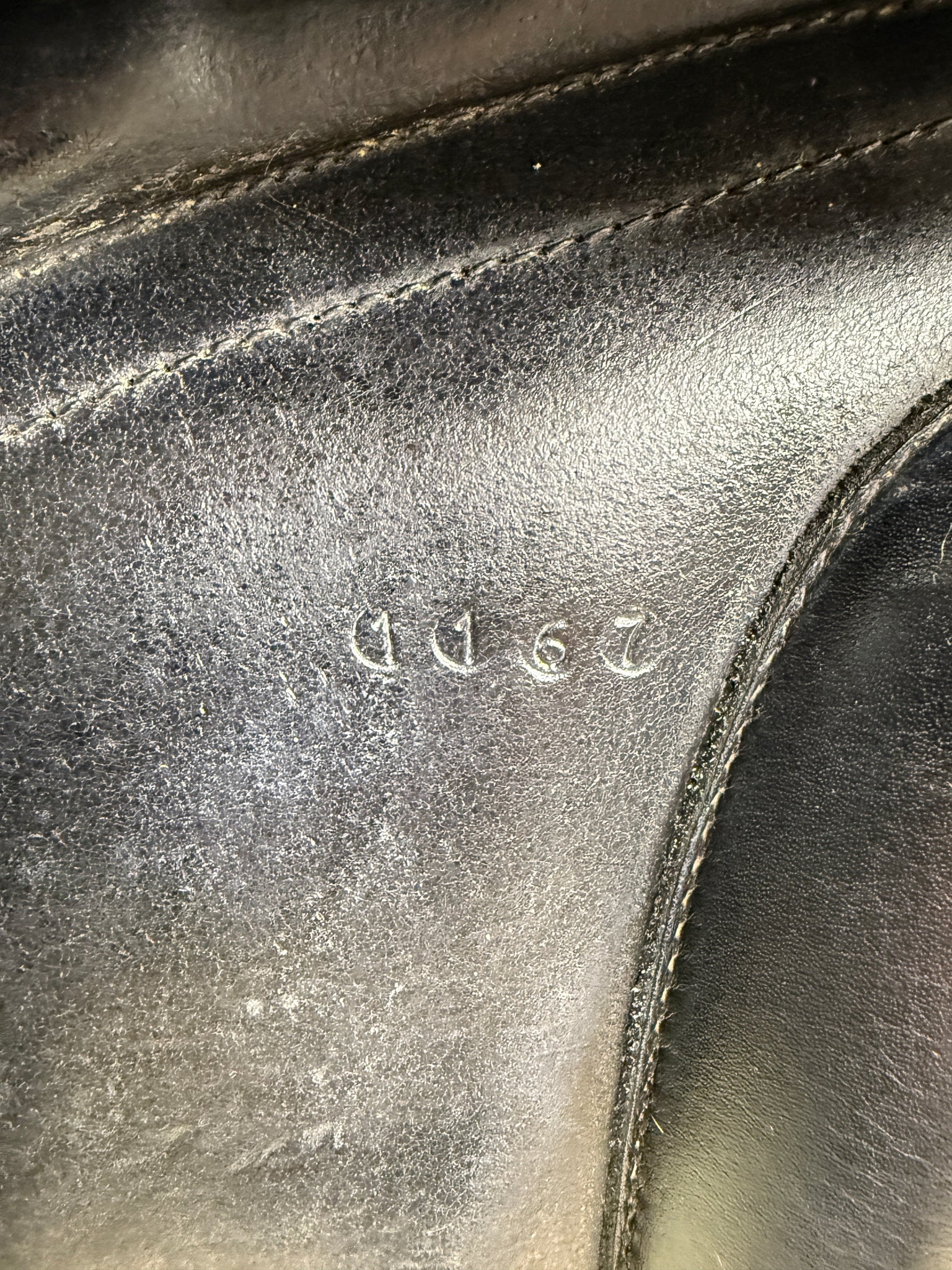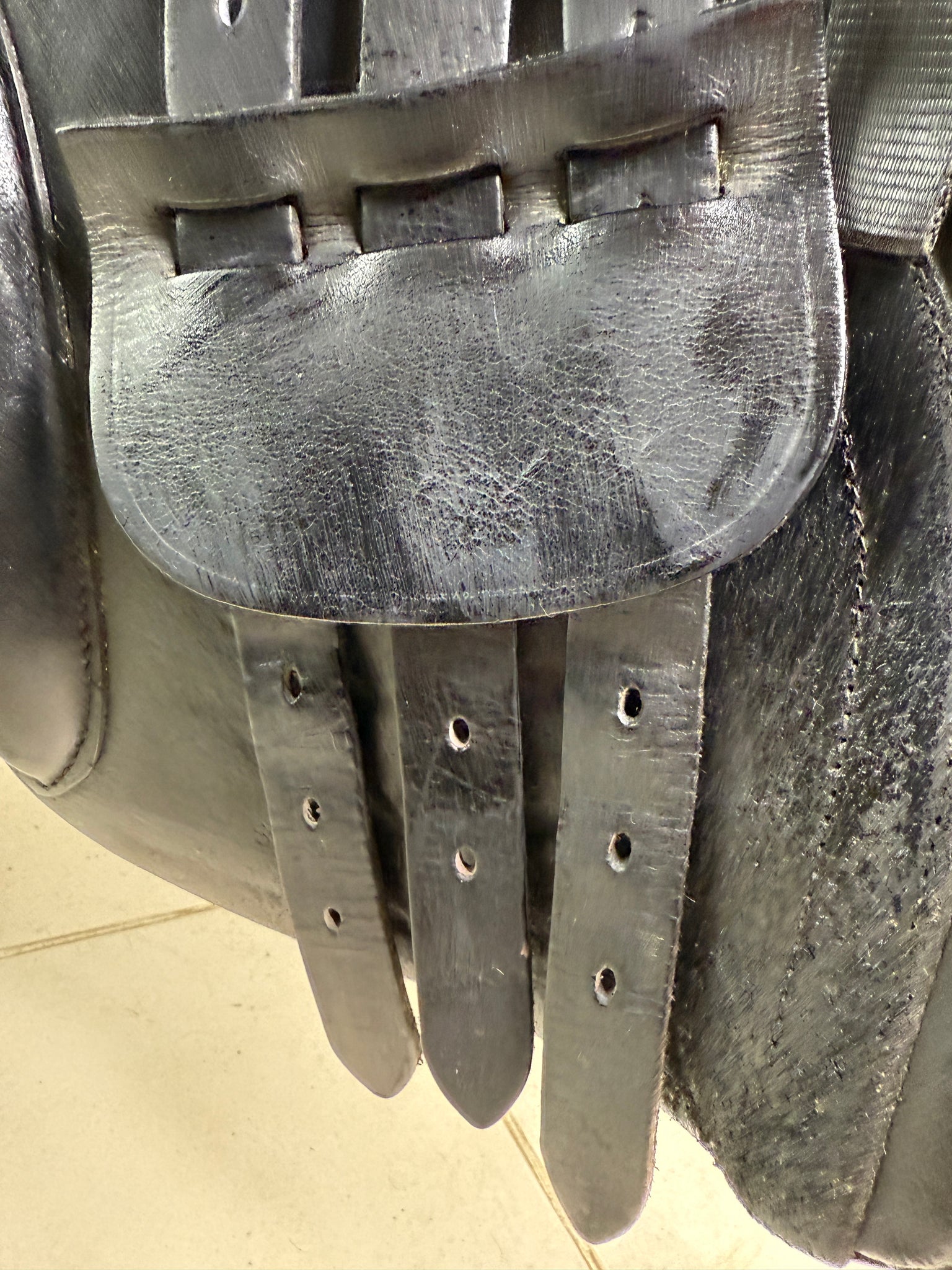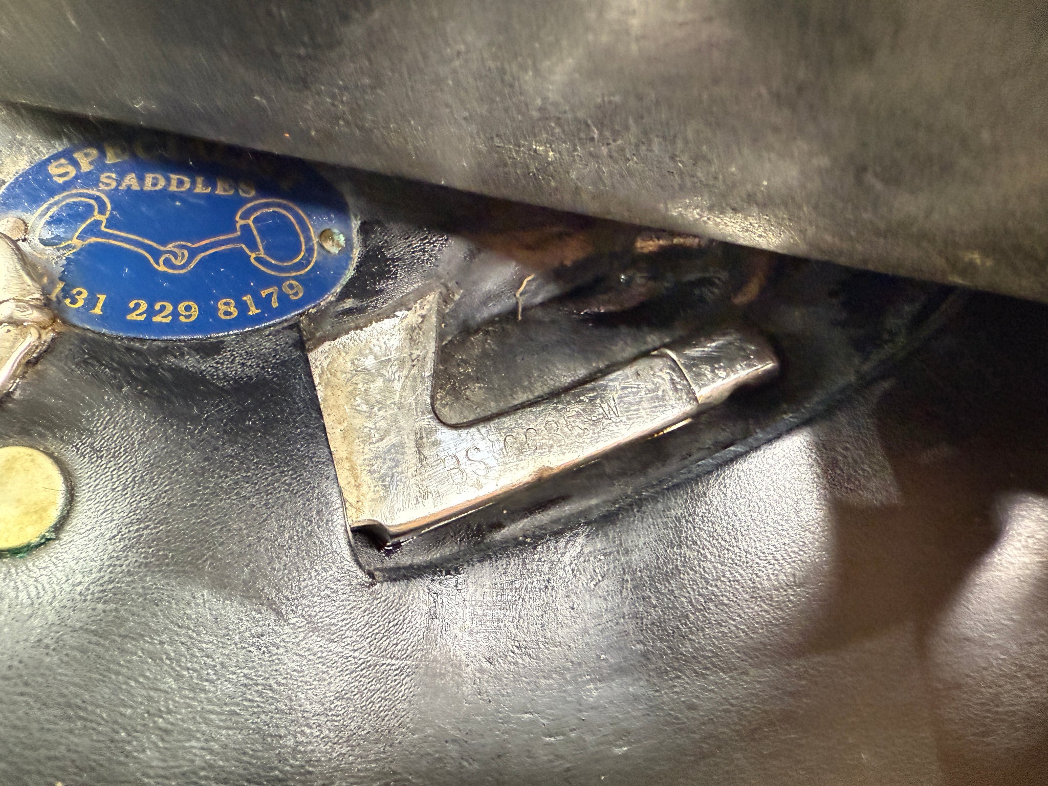 GP530 - Suit a tank!! Made on the Highland & Cob hoop tree with a wide open gullet channel. Stamped W on the bar, but very generous due to the hoop tree, so fits XW. Flat from front to back. Wool flocked panel. Nice blocks.  Webbing in place for a point & balance strap. Good blocks.