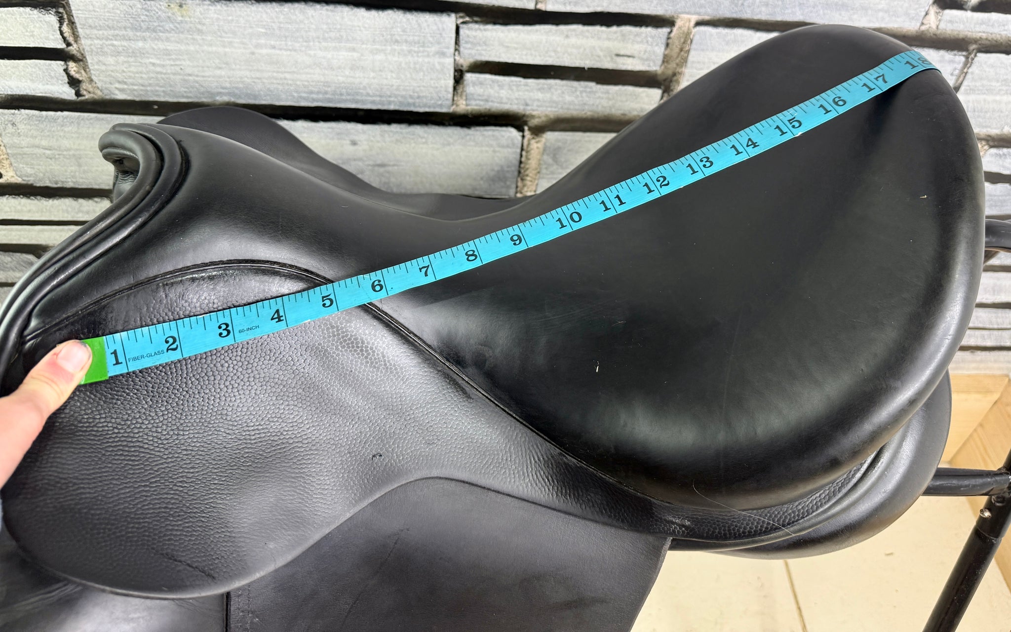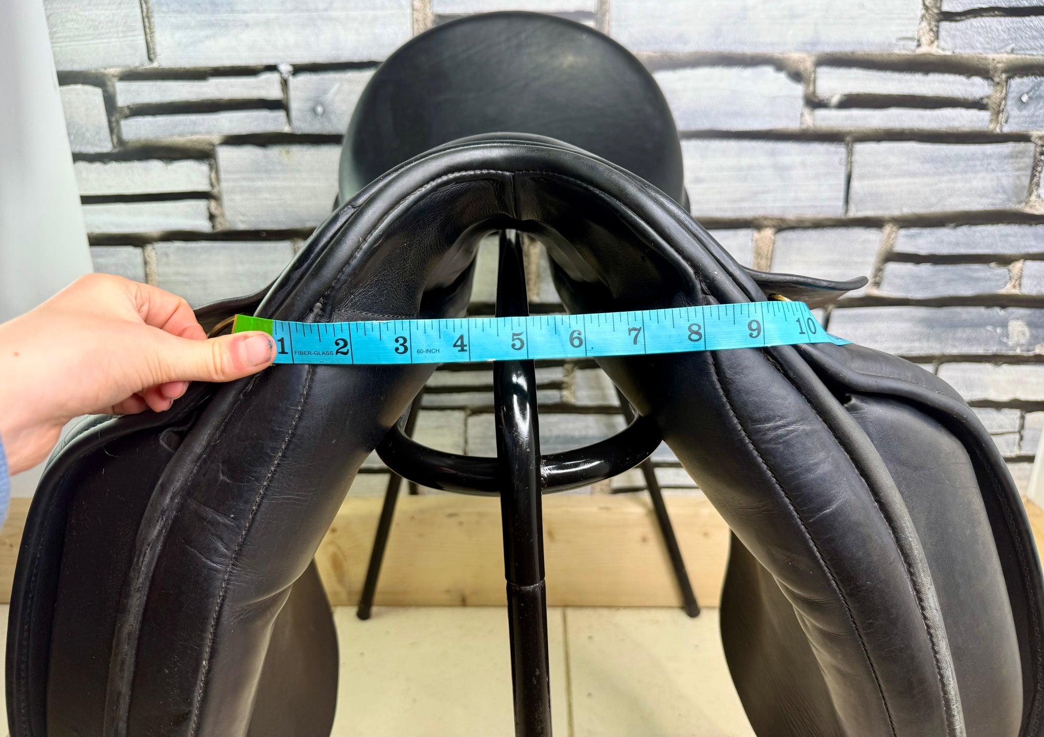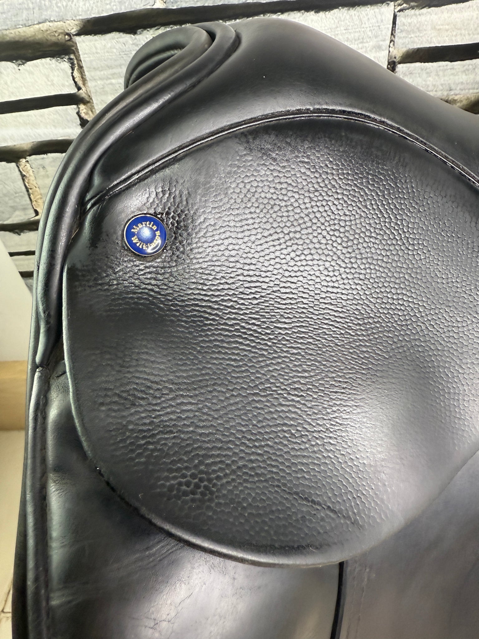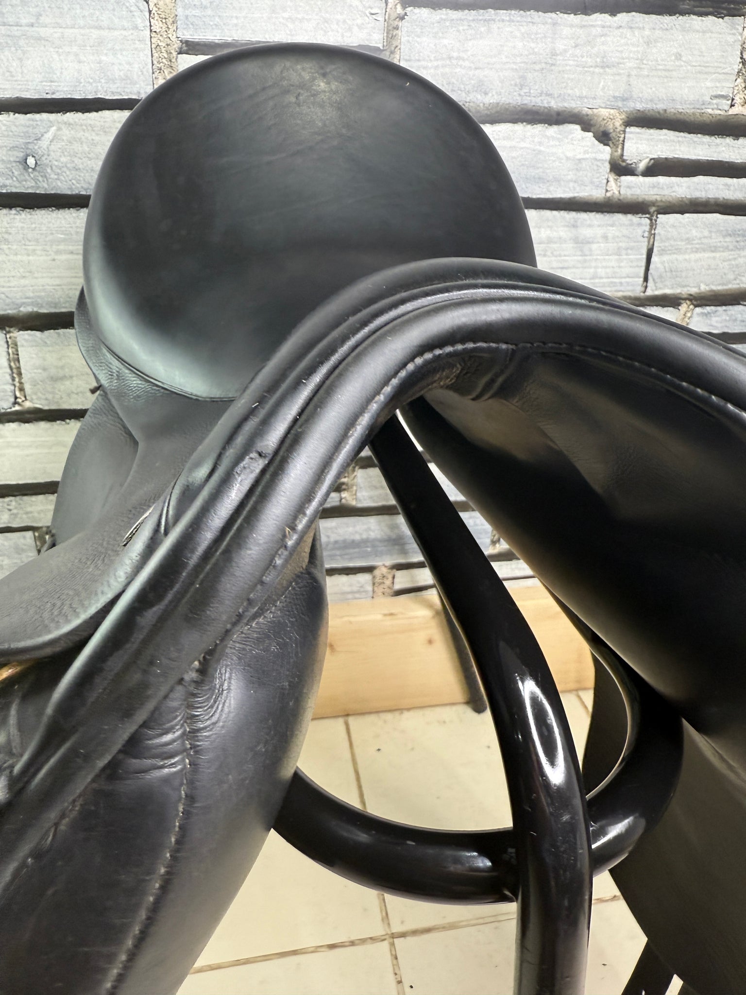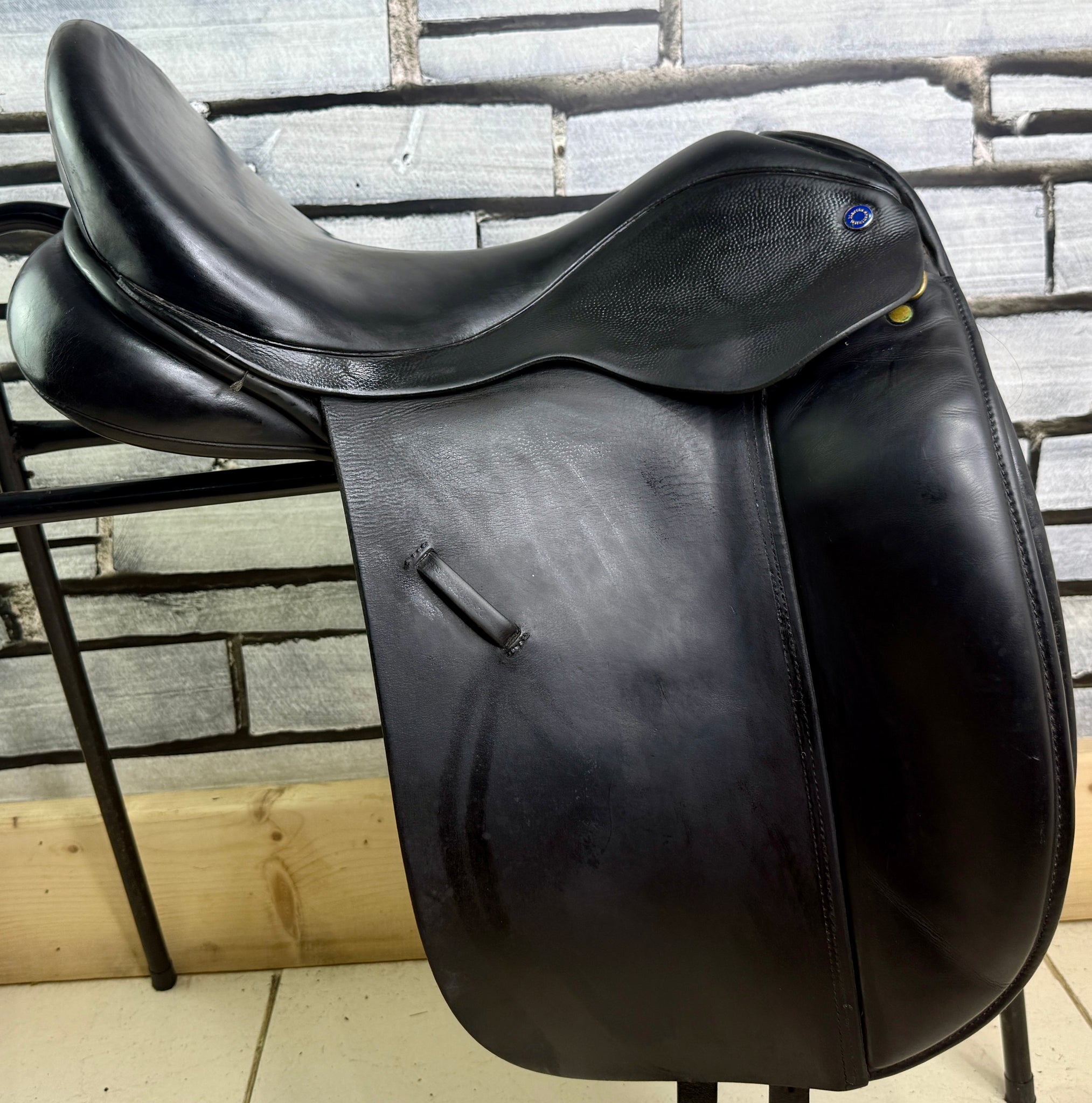 D280 - Front & back gussets. Deep seat, big blocks with moulded knee pads. Soft wool flocked panel. No point strap to alleviate shoulder pressure. Excellent condition. No size stamps.