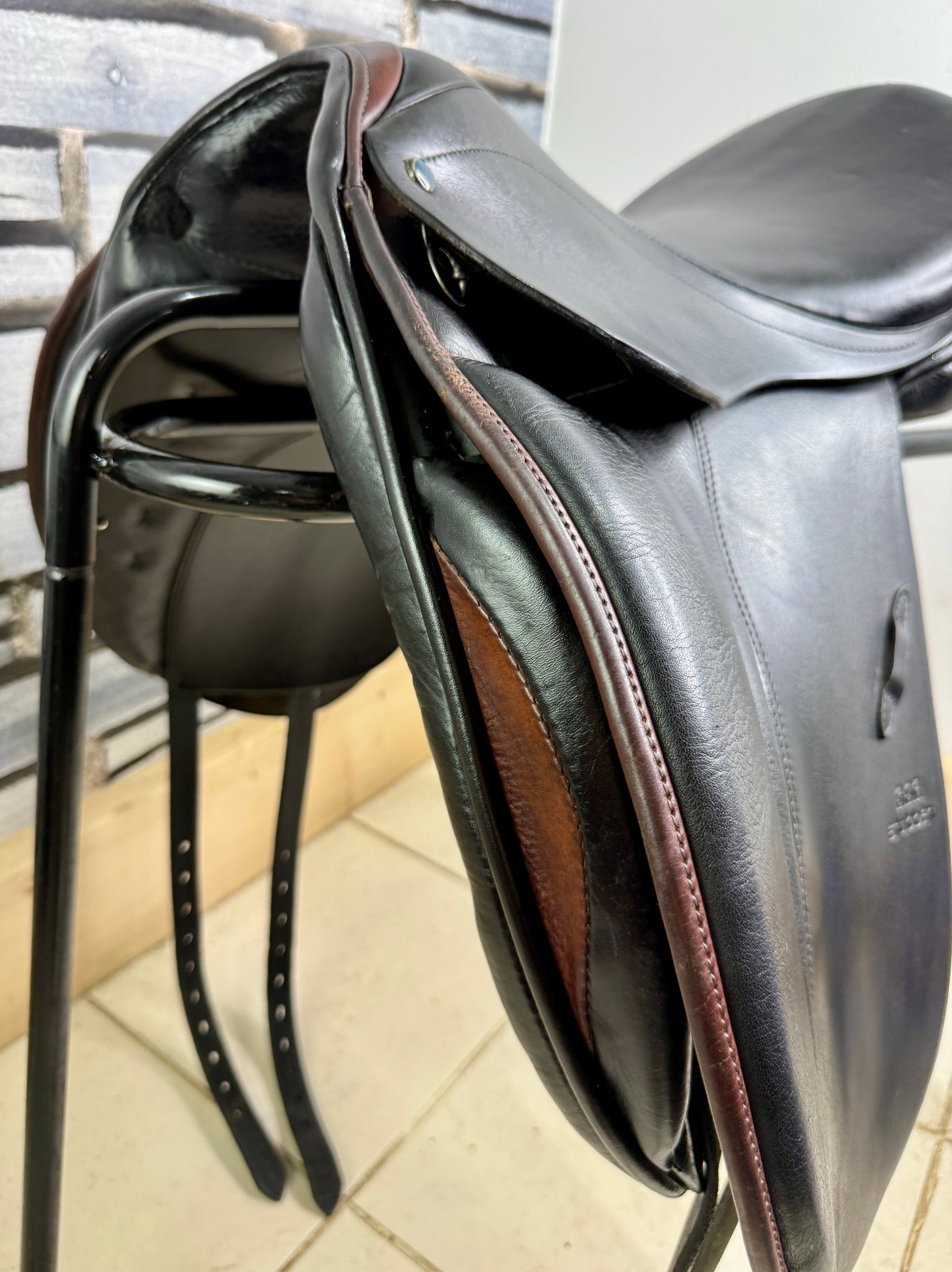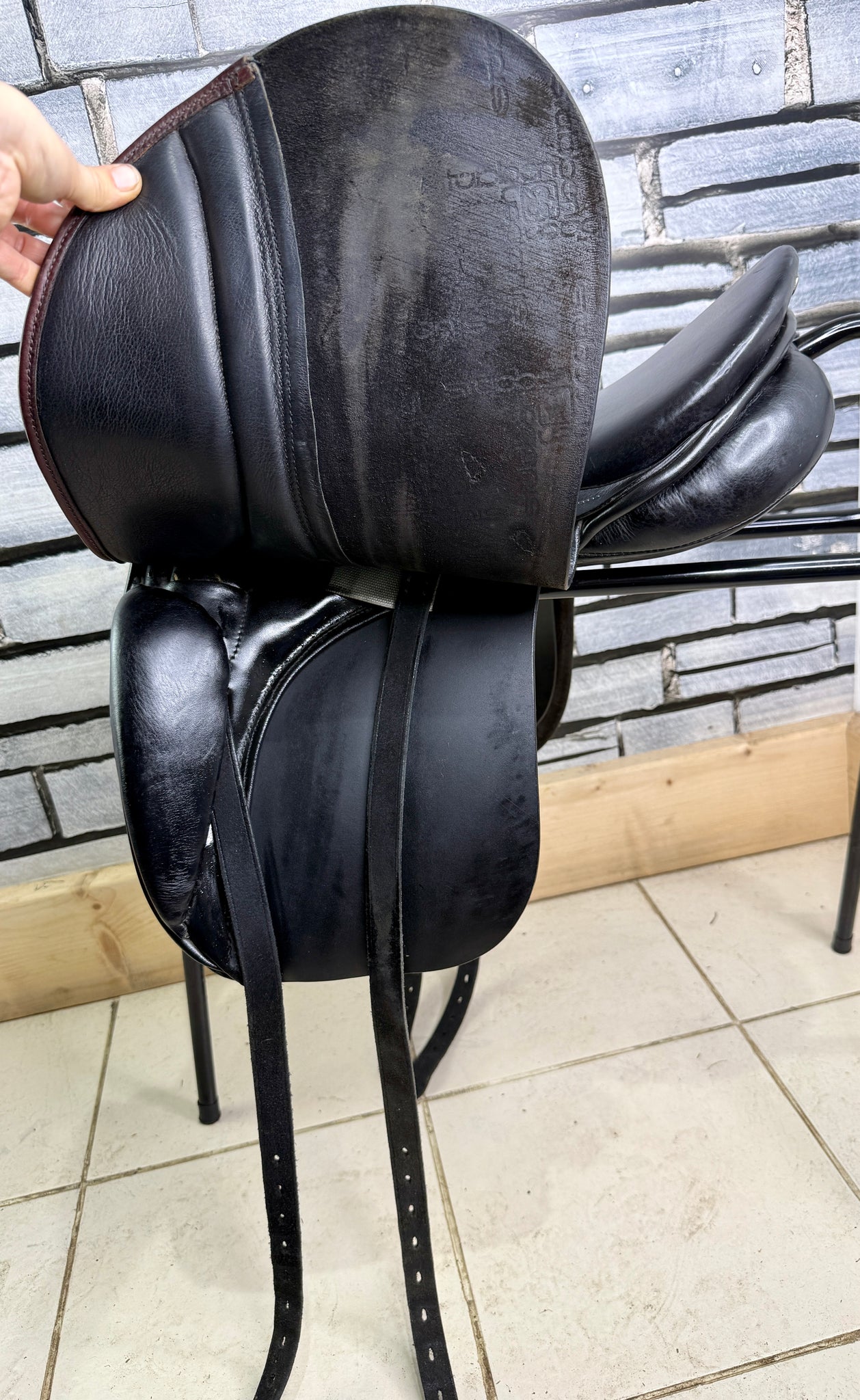 D295 - Handy sized little saddle, few very minor marks, but otherwise looks immaculate with very light use. Soft wool flocked panel. Big blocks. Really beautiful saddle, that’s been very well looked after.