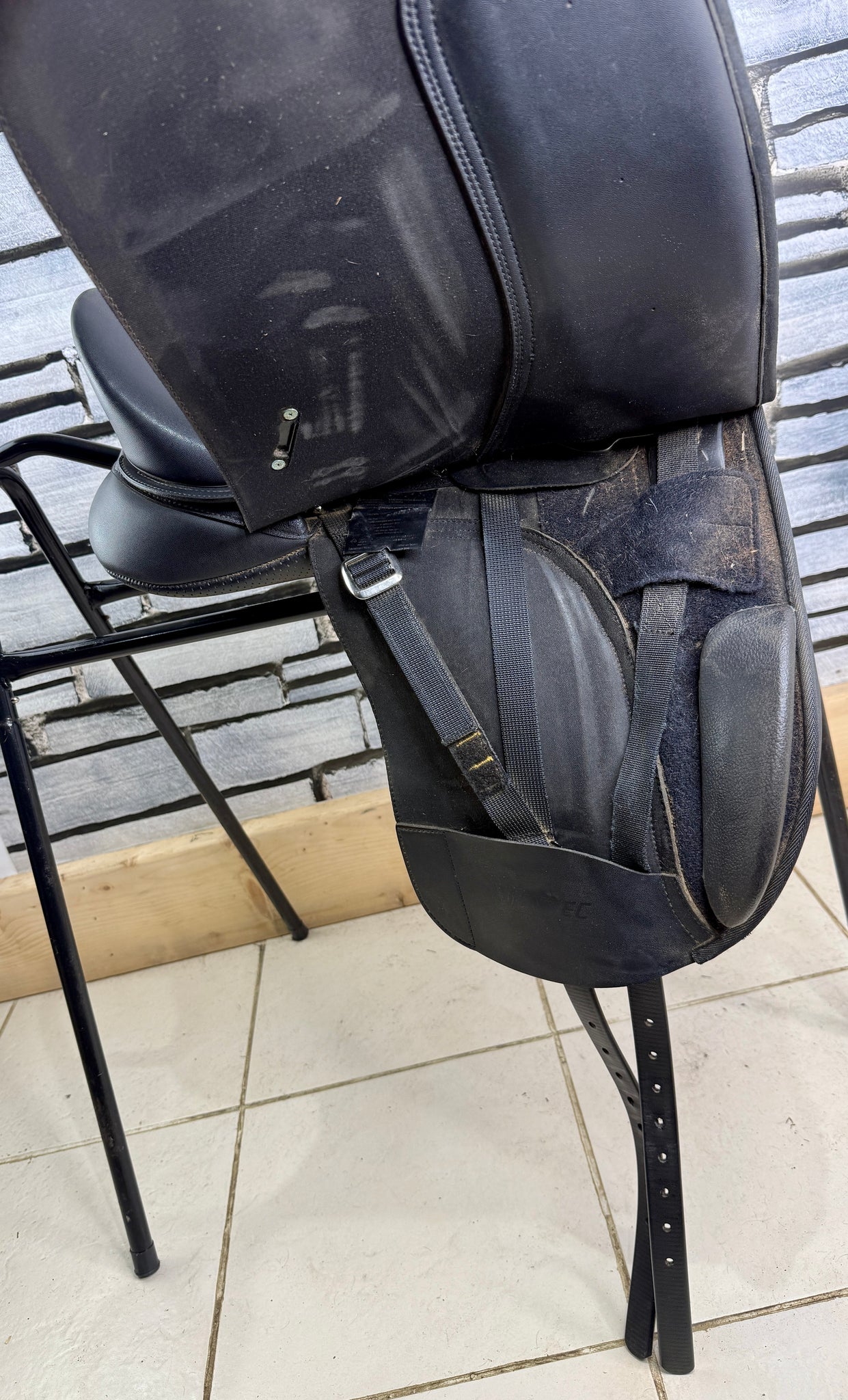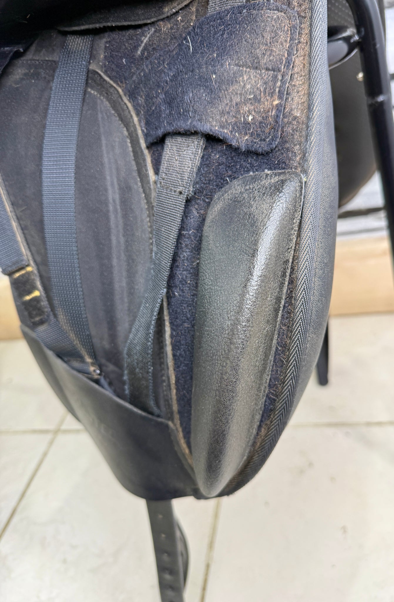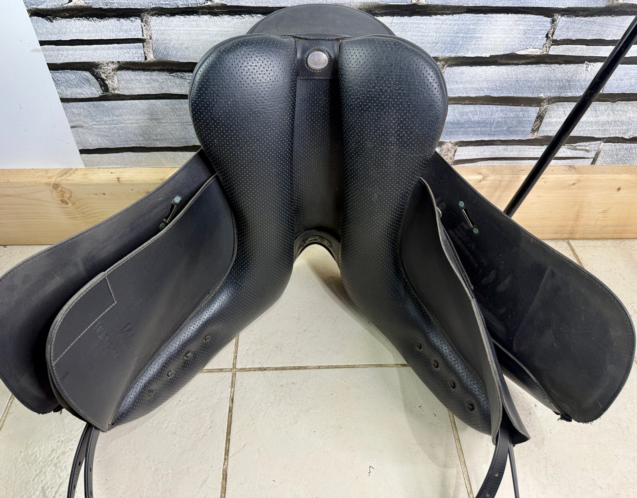 D291 - Tidy saddle. Few little dings on the cantle. Currently fitted with a Black/medium gullet. Moveable girth straps - point & adjustable balance straps. Velcro block. Cair air panel with pockets for shims. Easy to alter. Lightweight and comfy.