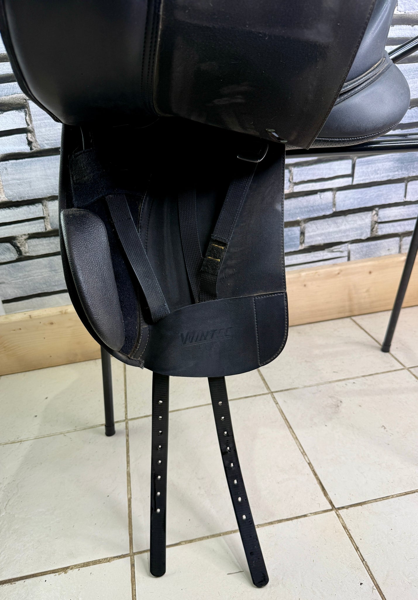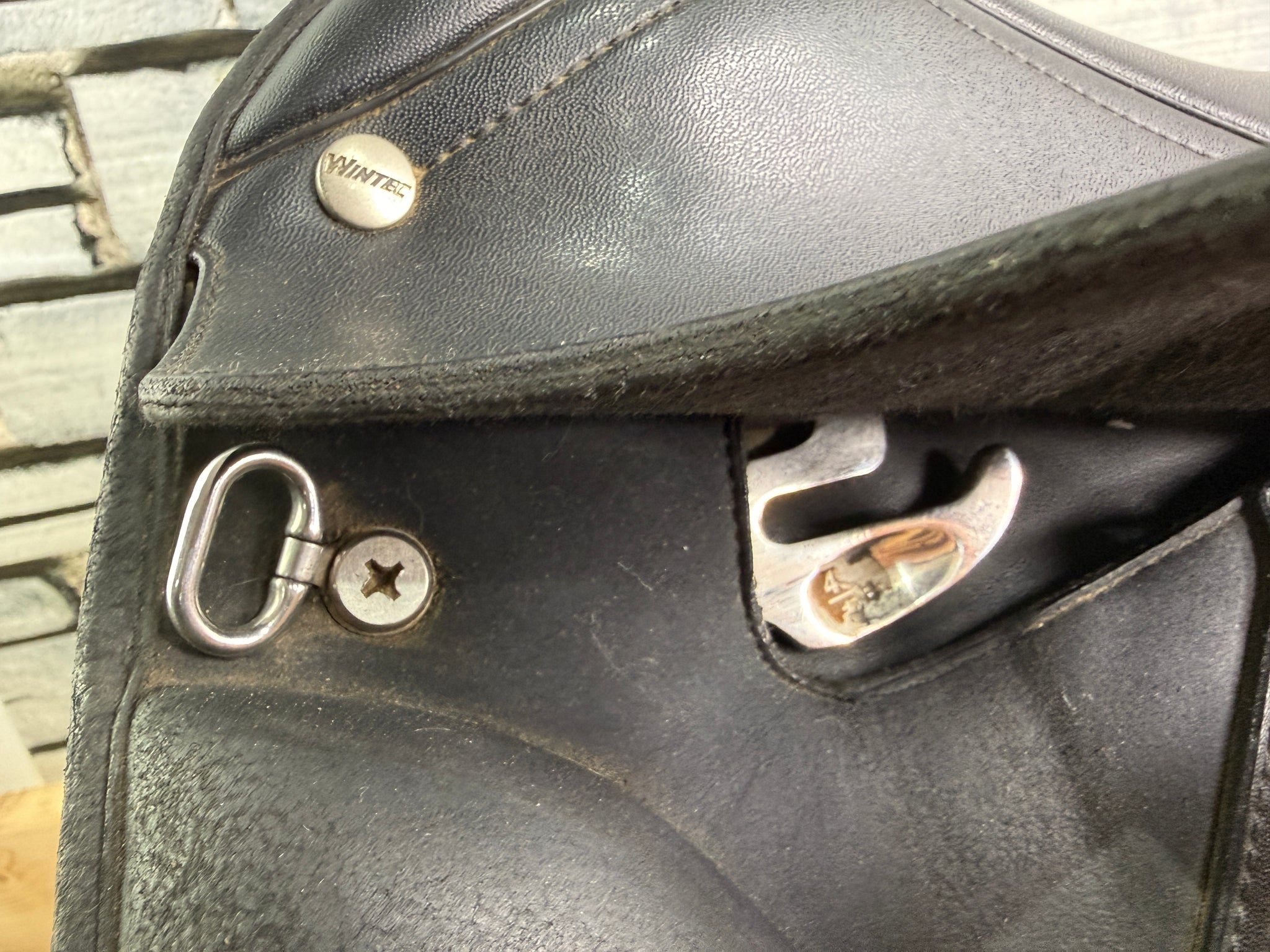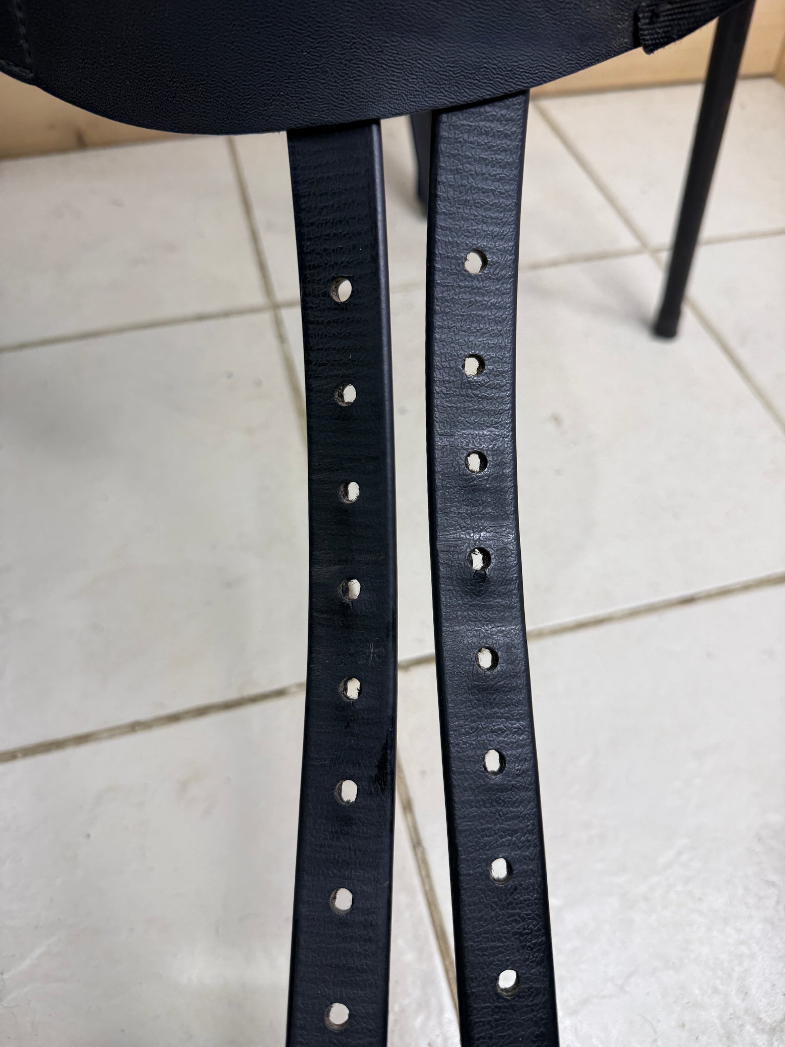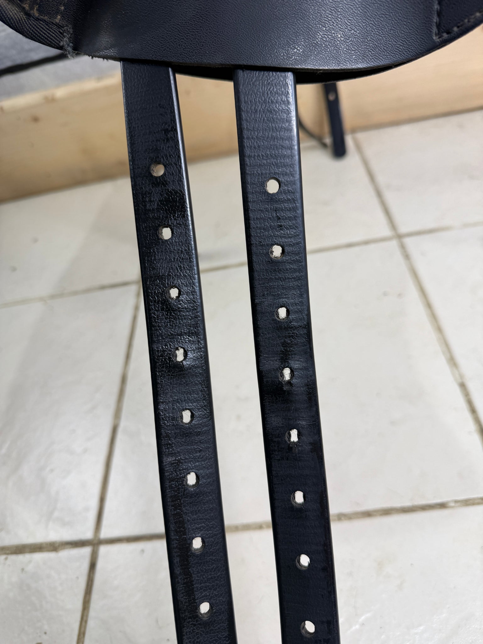 D291 - Tidy saddle. Few little dings on the cantle. Currently fitted with a Black/medium gullet. Moveable girth straps - point & adjustable balance straps. Velcro block. Cair air panel with pockets for shims. Easy to alter. Lightweight and comfy.