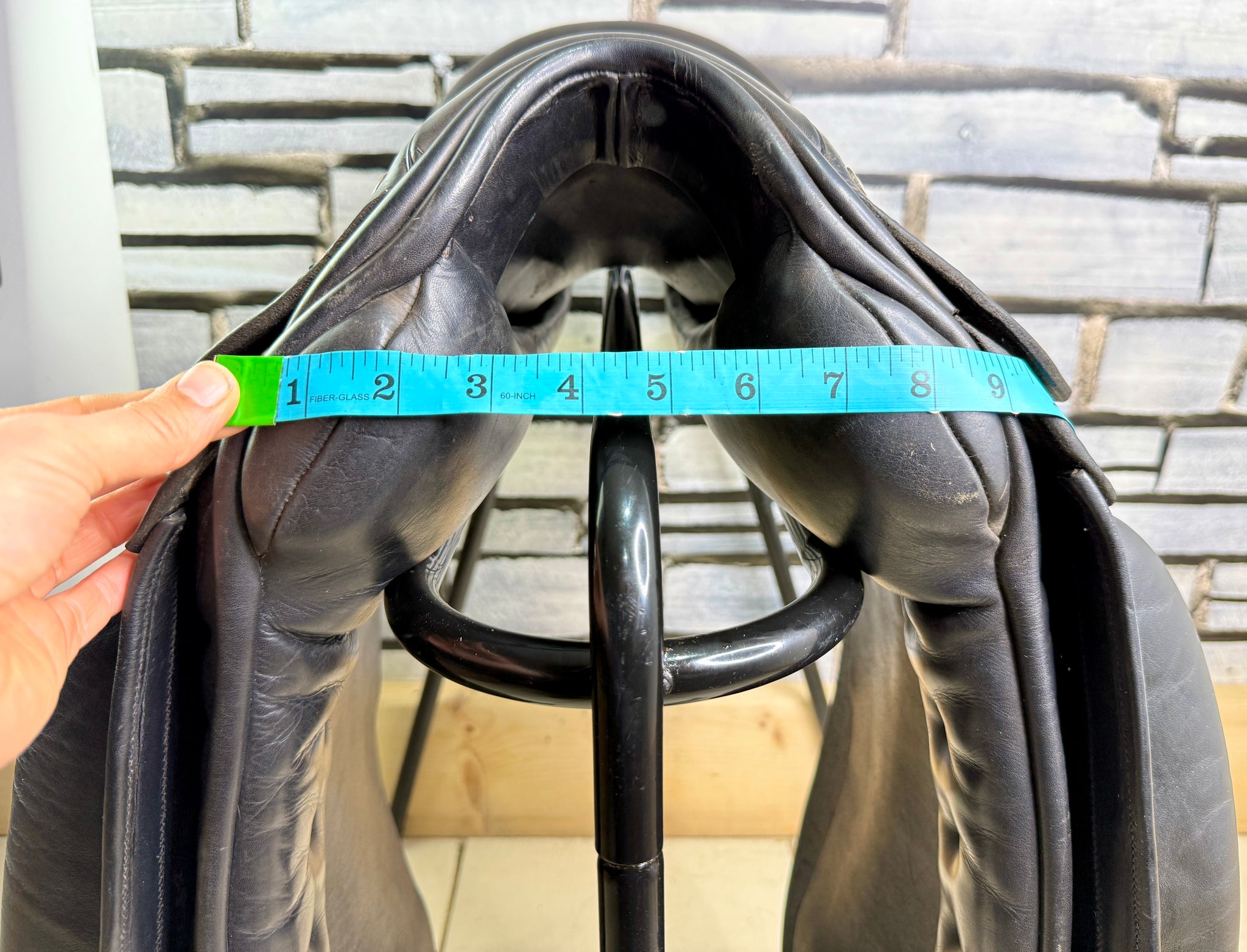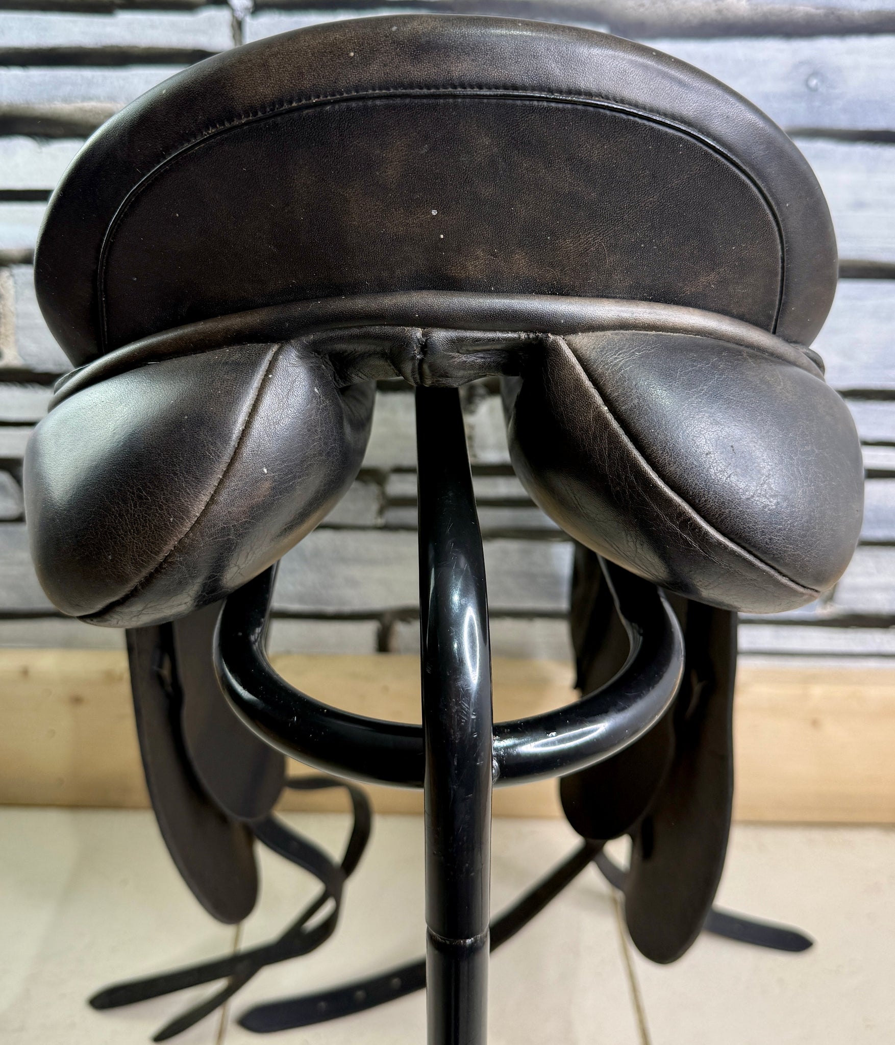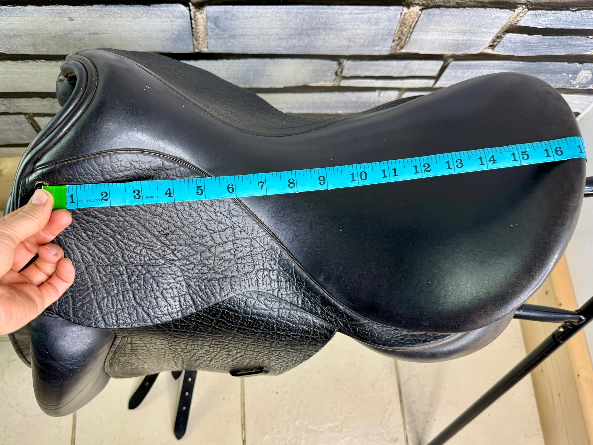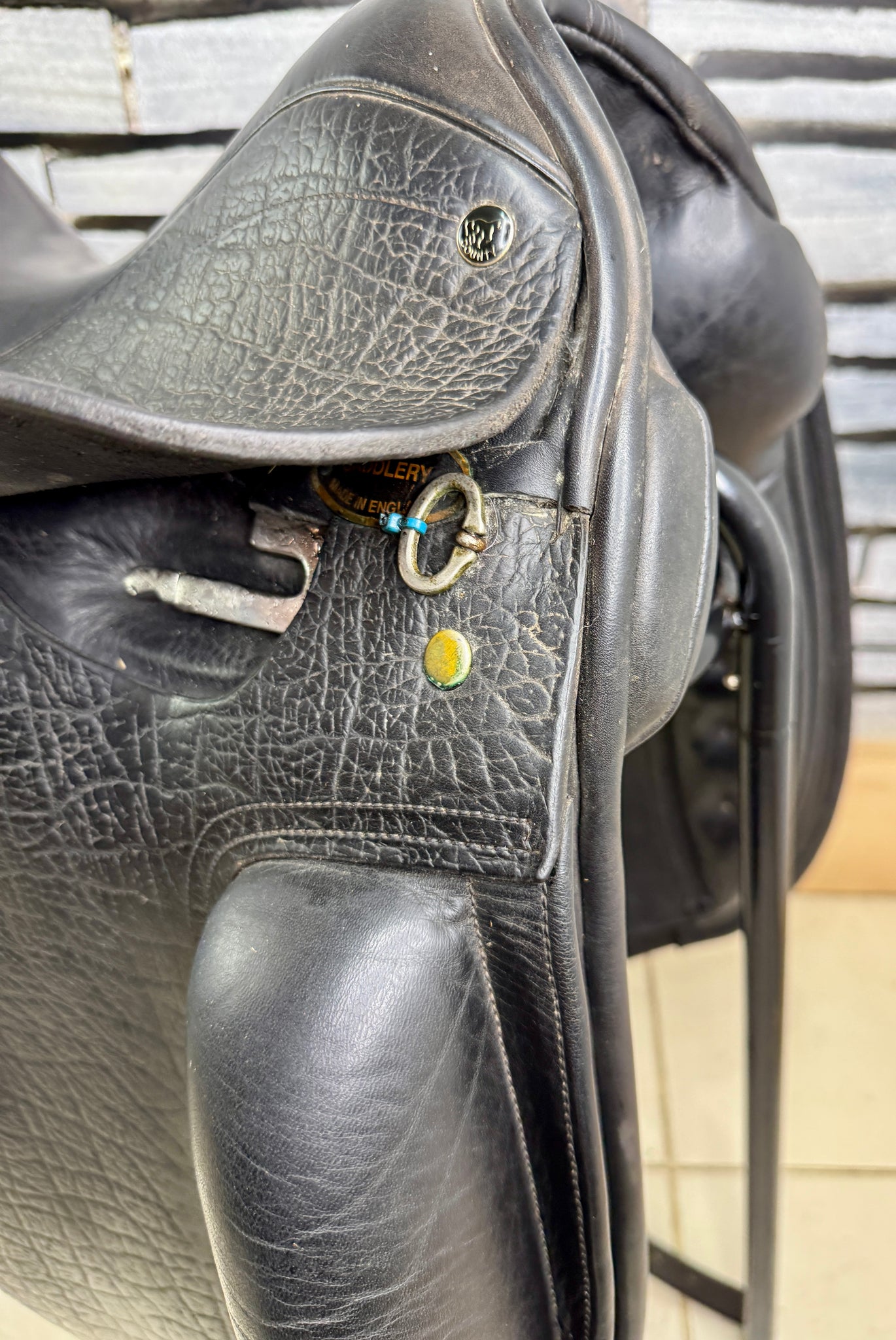 D300 - Gorgeous quality English made dressage saddle. Beautiful leather - flaps and skirt are grippy buffalo leather which is so supple. Soft padded seat & big anatomical surface blocks. Deep seat. Front gussets and a drop panel so will suit a high wither. Wool flocked panel.