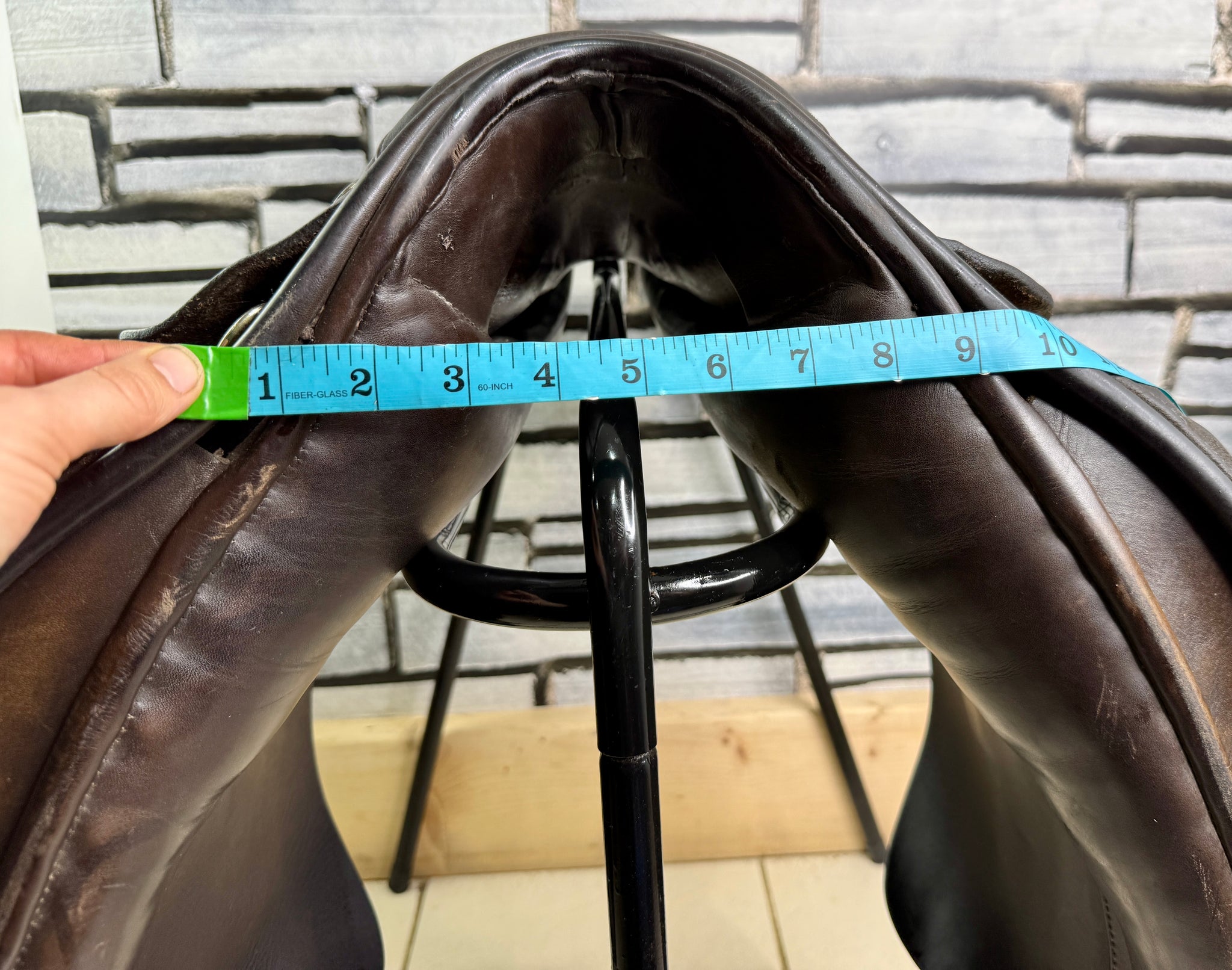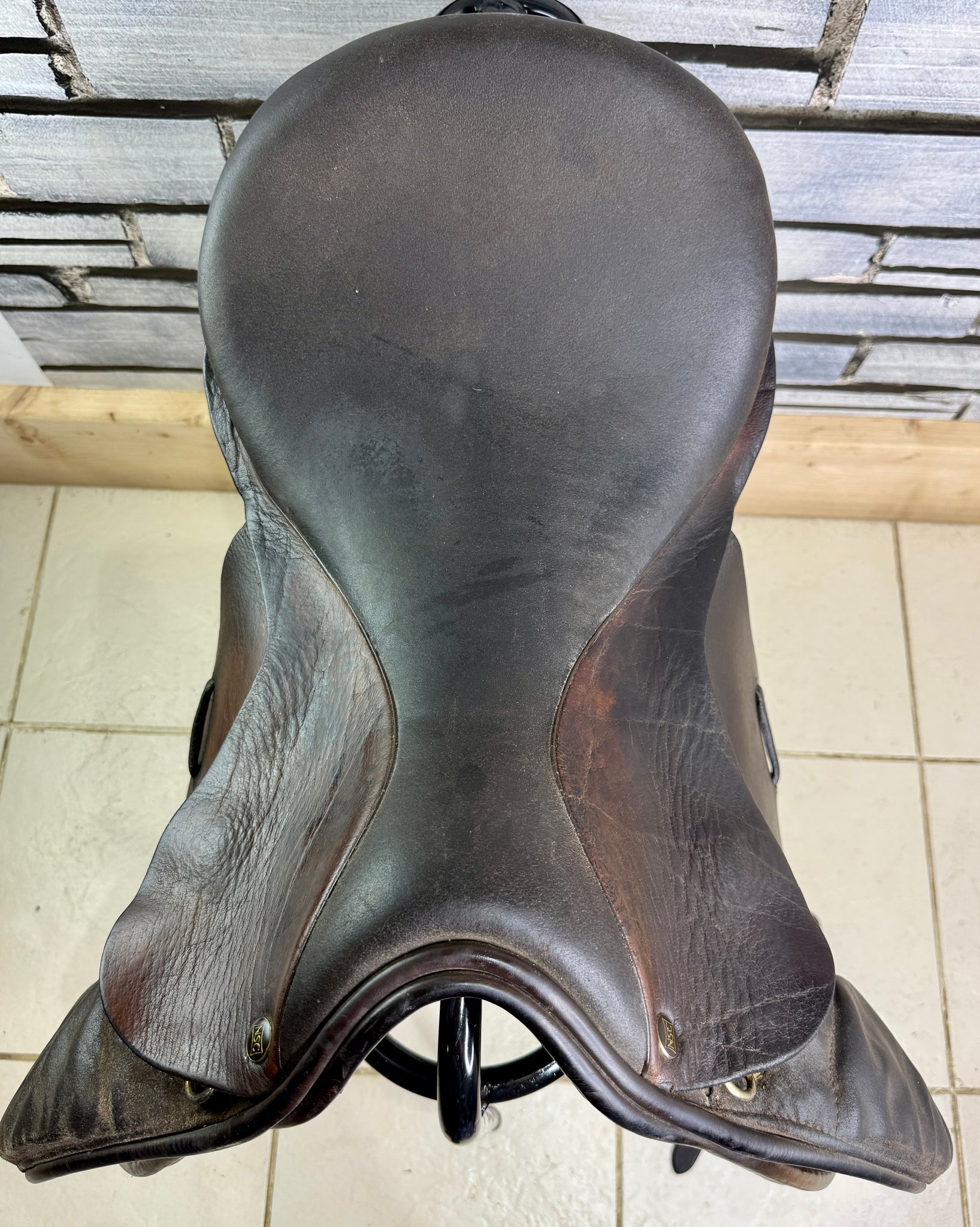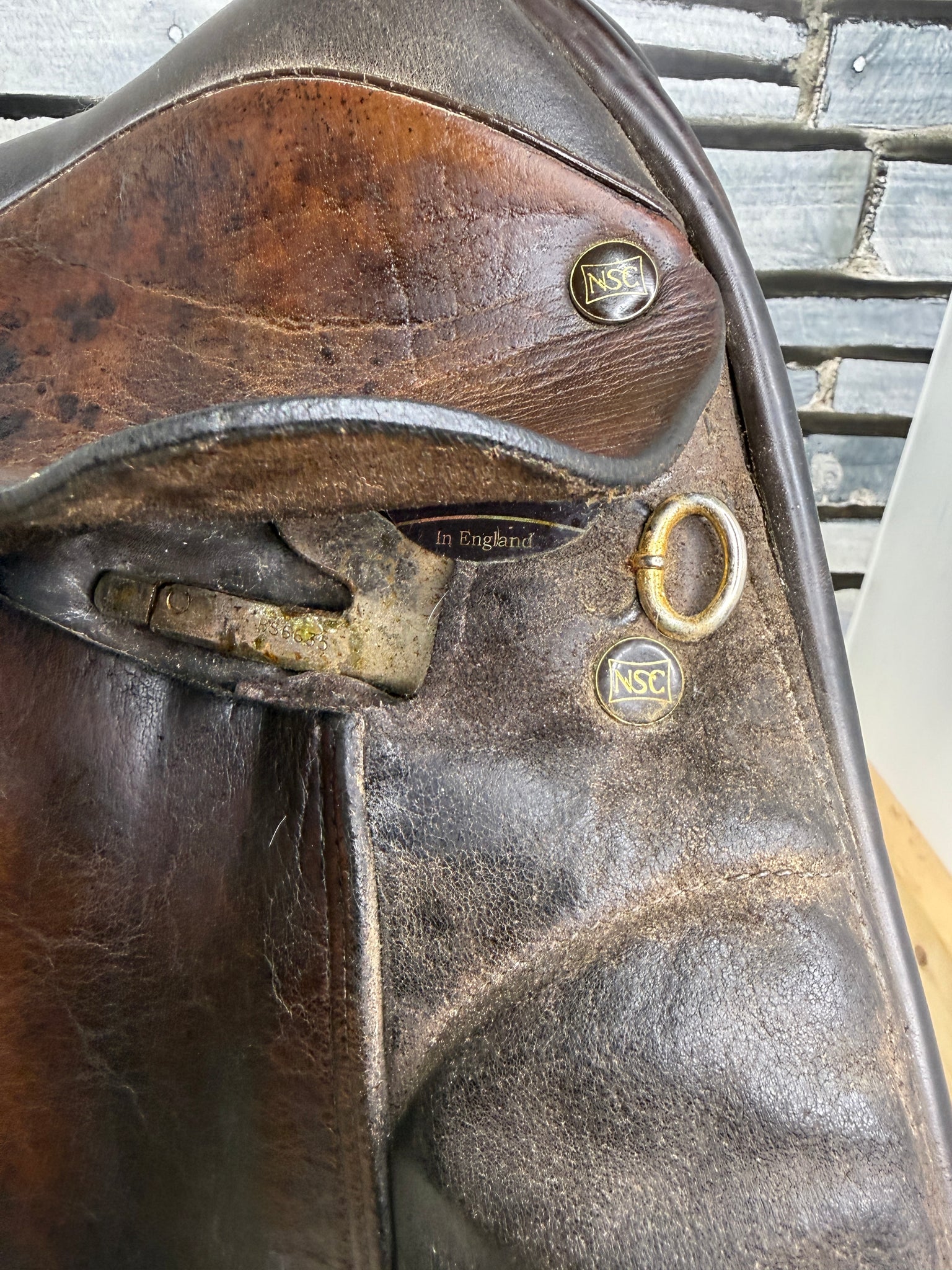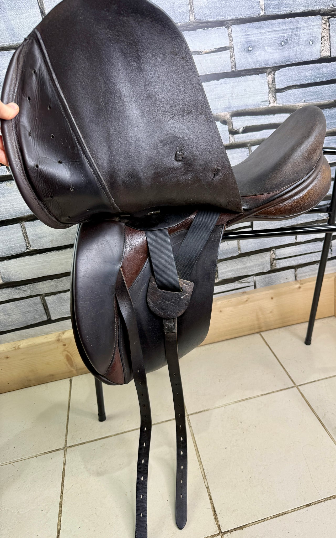 D294 - Well used condition, but tidy and safe! Big blocks. Point straps for extra stability. Wool flocked panel. Fab saddles - this was made for the National Saddle Centre, and has soft buffalo leather flaps with a suede seat & knees.