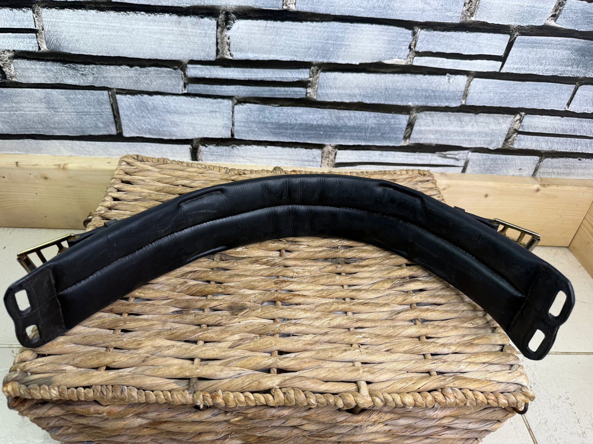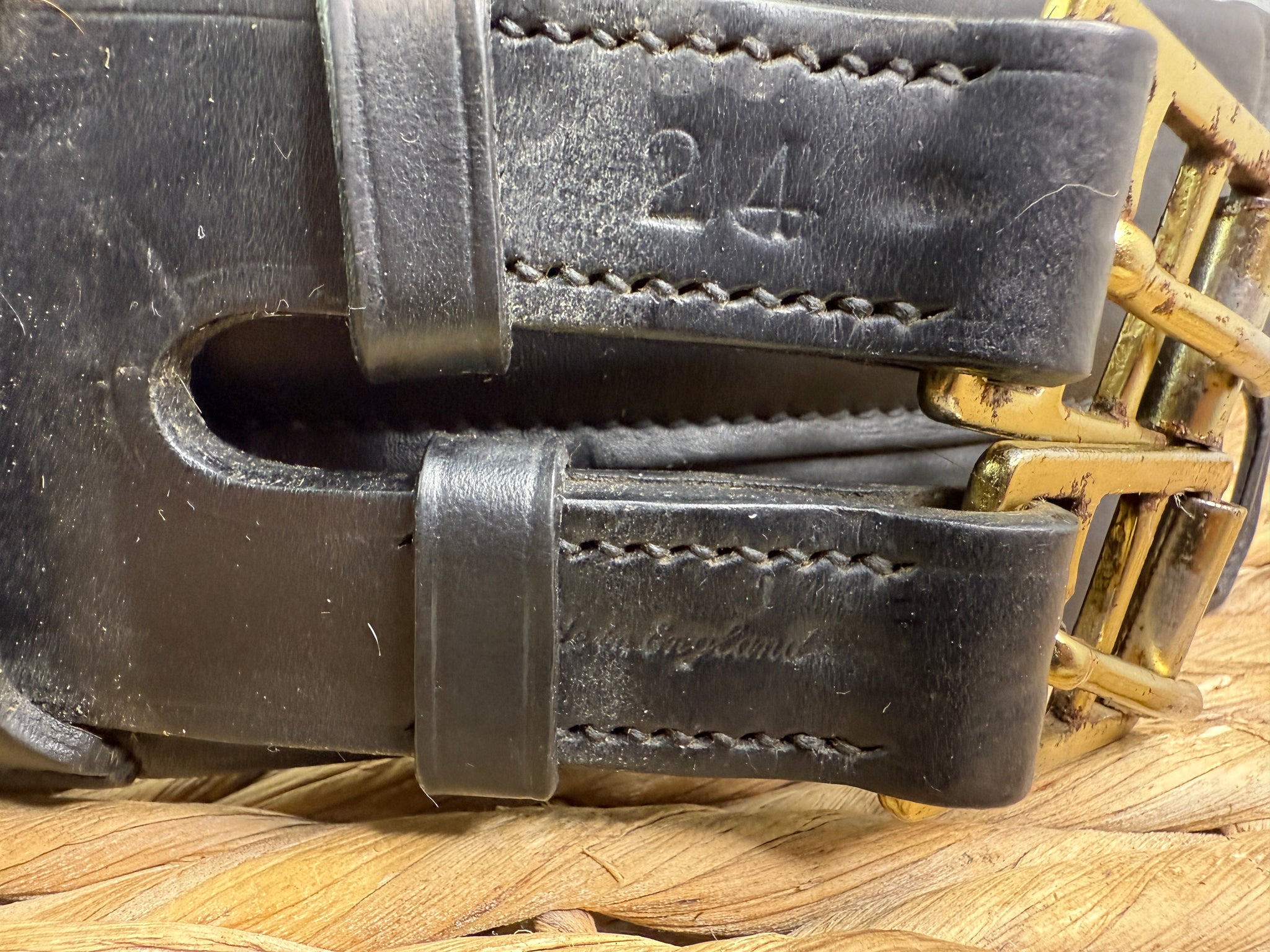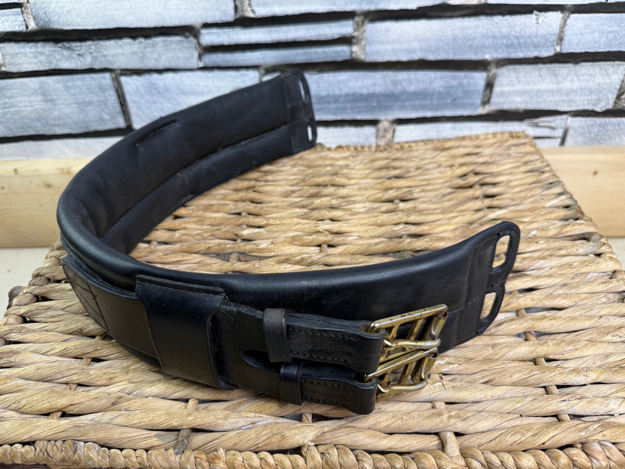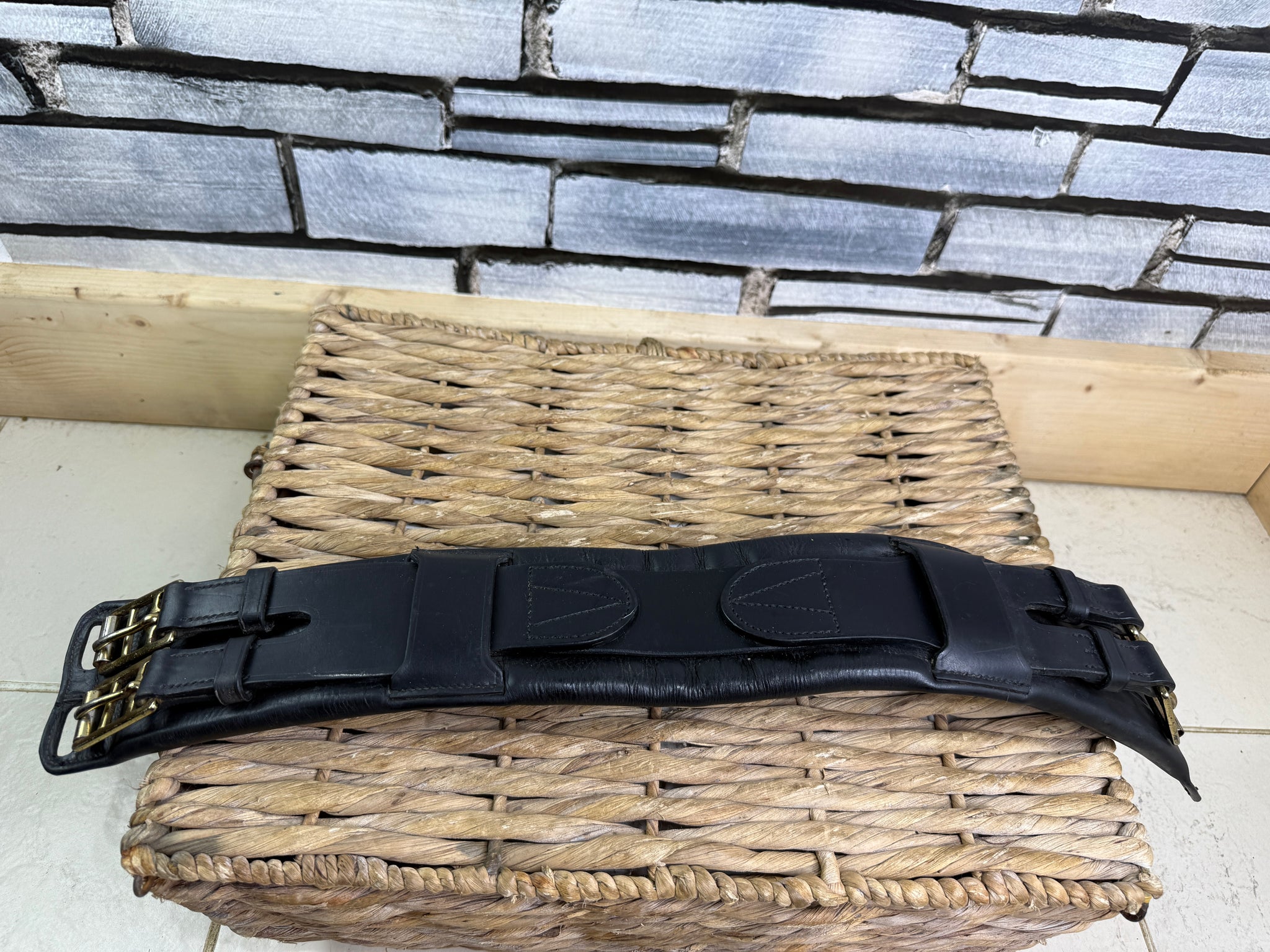 Very Good condition - looks pretty much unused! Beautiful quality leather with soft padding and elastic centre section. Brass buckles - slight tarnishing.