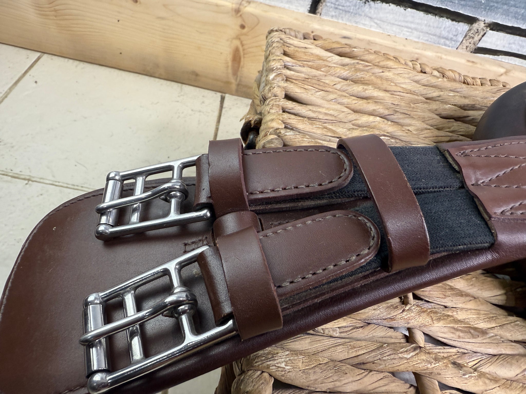 Brown. Excellent condition, very little use. Beautiful quality. Roller buckles. Made with an elongated centre pad to suit narrower horses.