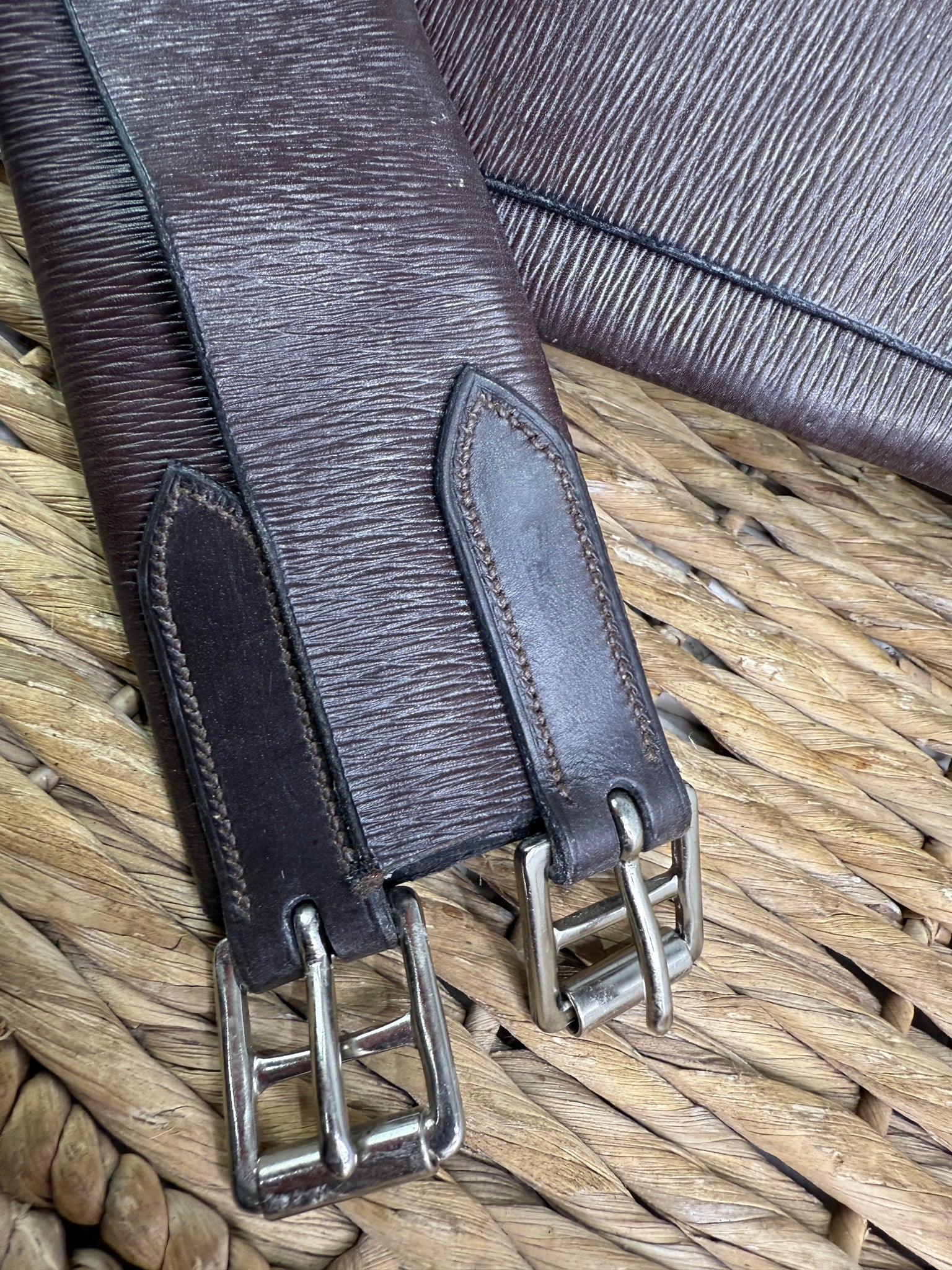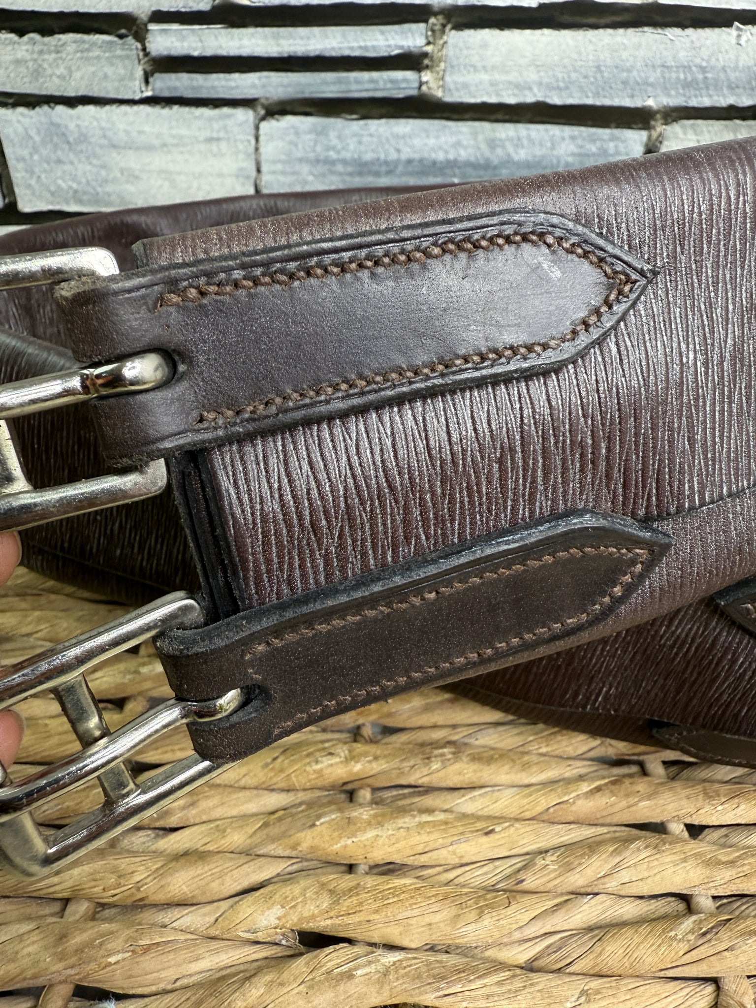 S/H English Traditional 3-Fold Leather Show Girth - Brown - 48”