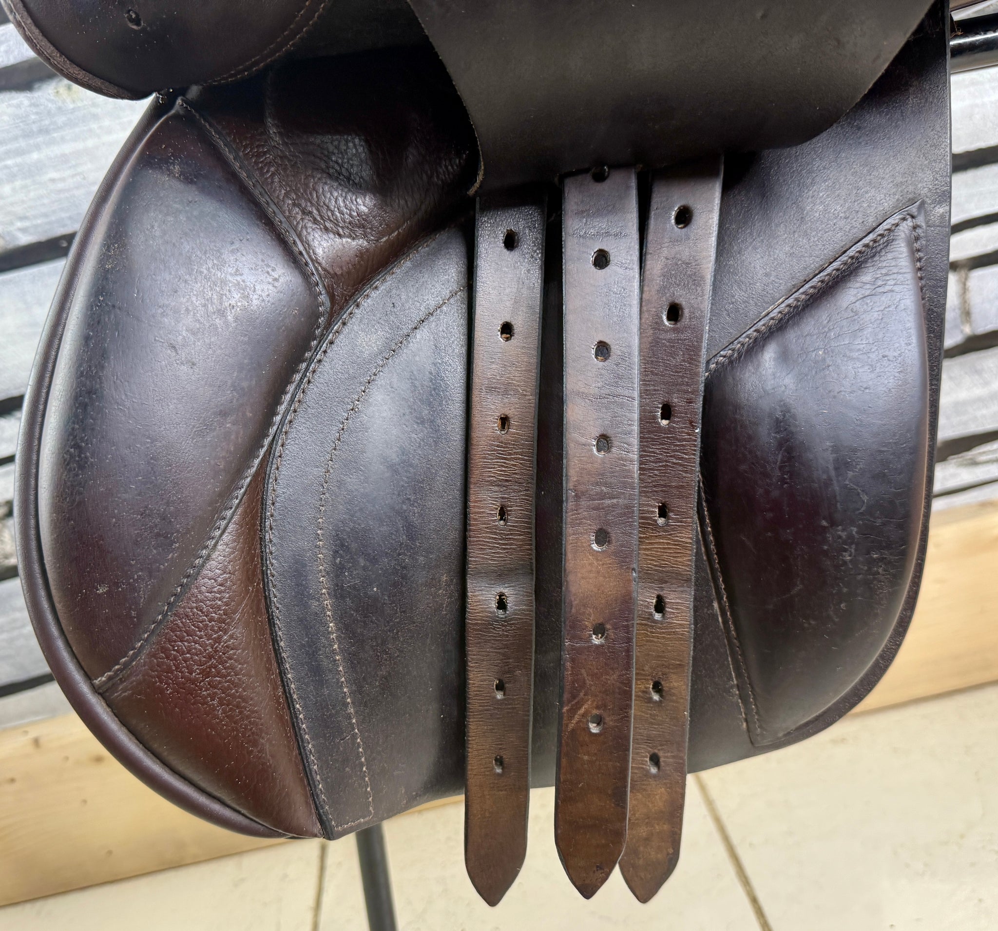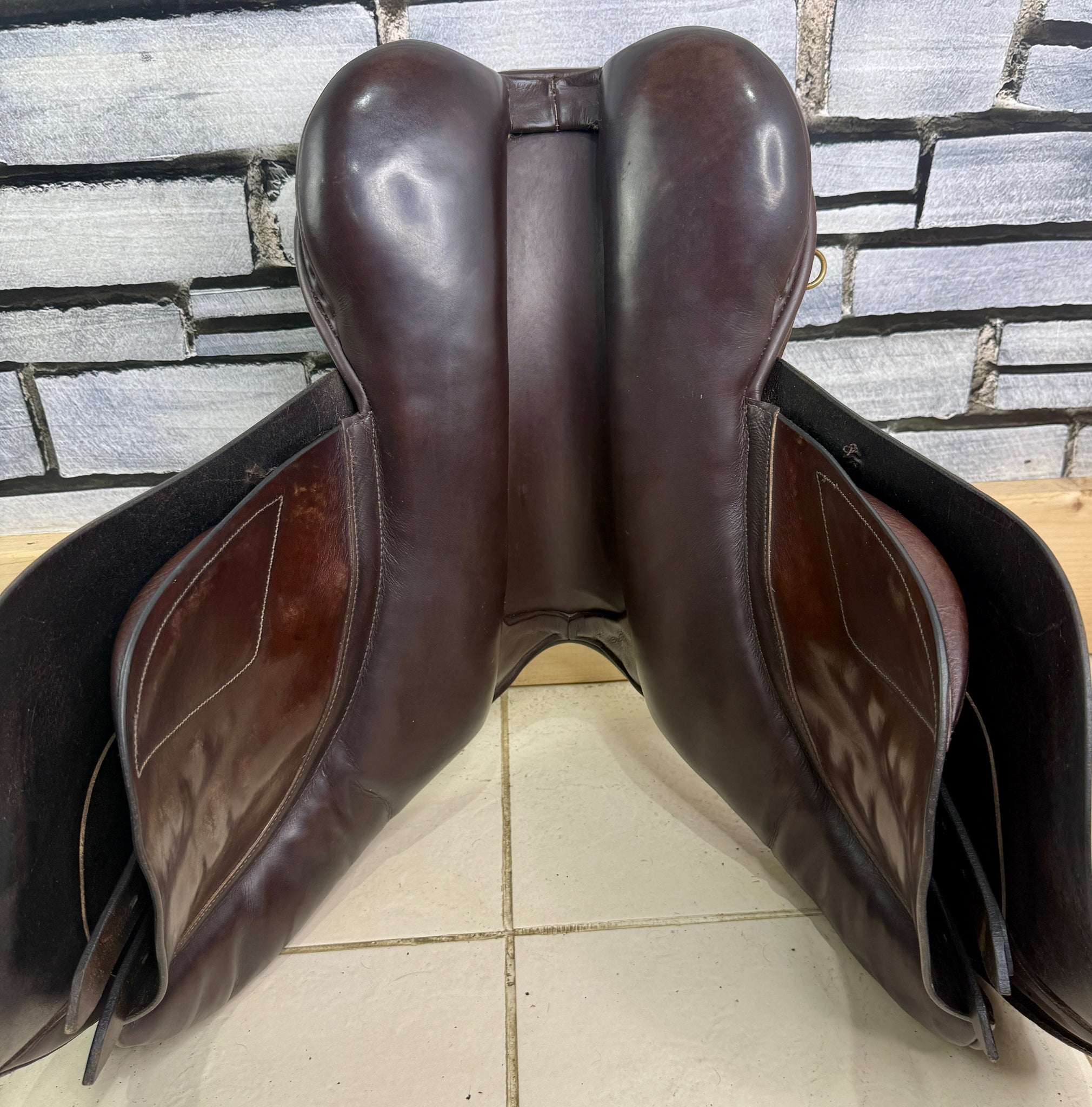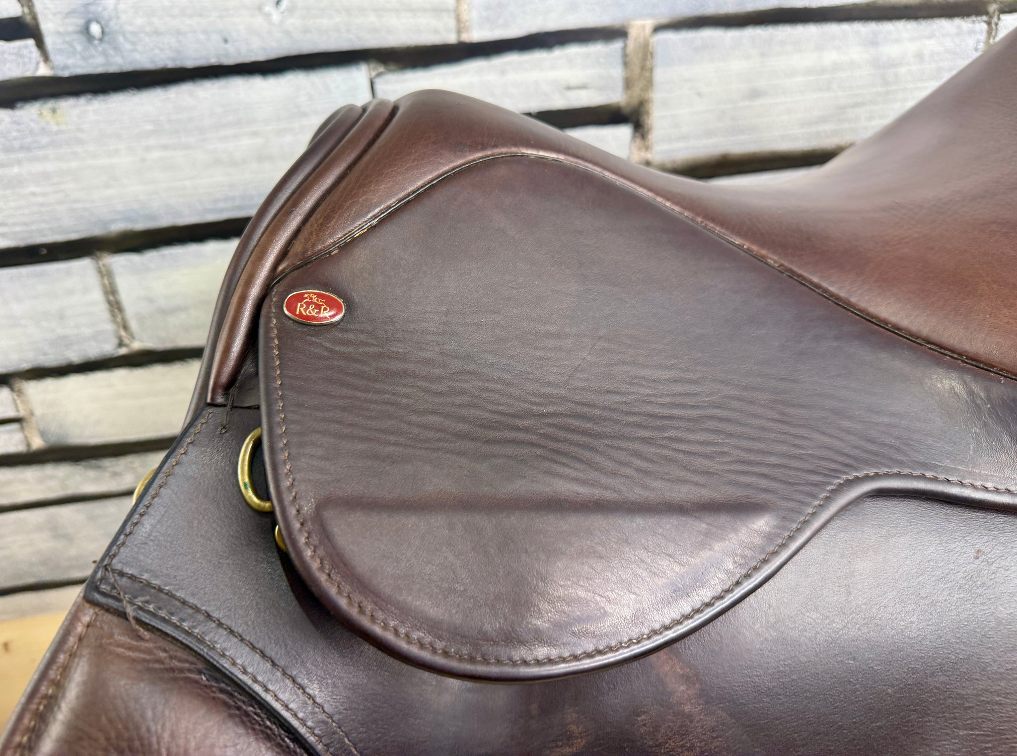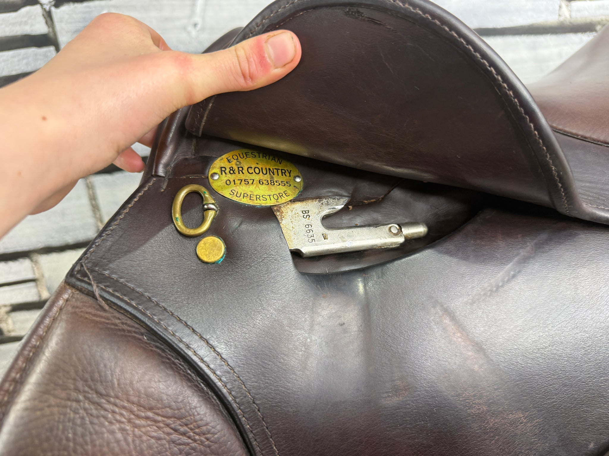 GP556 - Excellent condition. Made by Ideal and supplied by R&R Country Stores. Very popular Ideal Grandee model with round cantle and big triangular blocks. Wool flocked panel. Versatile tree to shape to suit a range of horses. Stamped W on the stirrup bar. Original saddle cover.