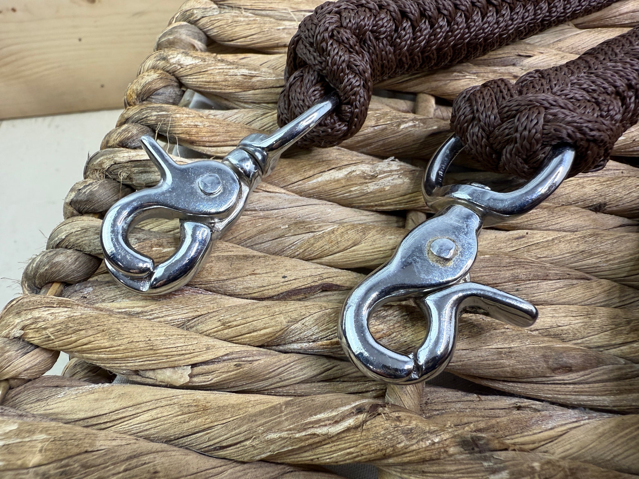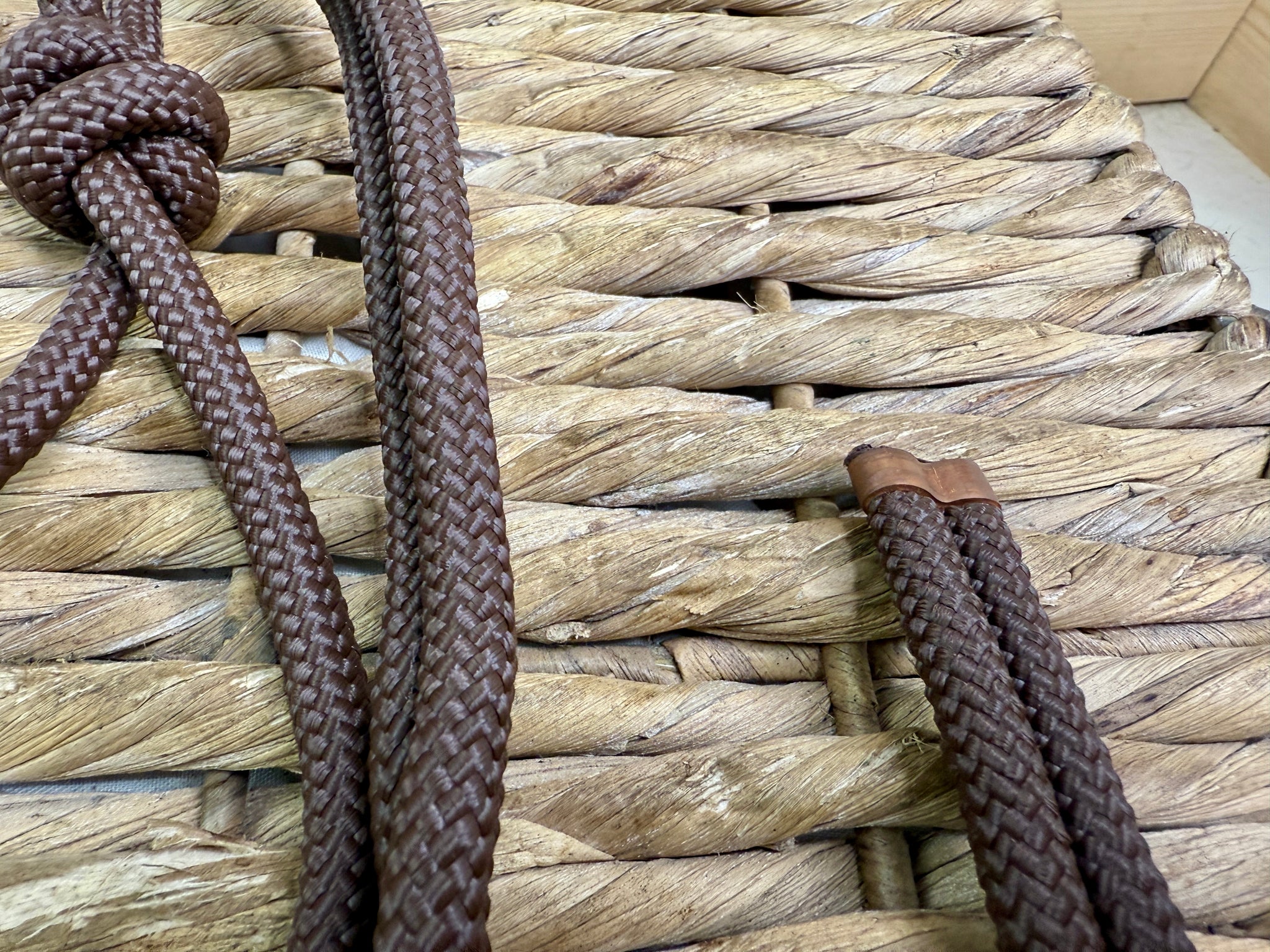 Rings either side of the nose allow for a side pull type gentle rope bridle. Knots can be adjusted if needed for specific pressure or to perfect the fit.