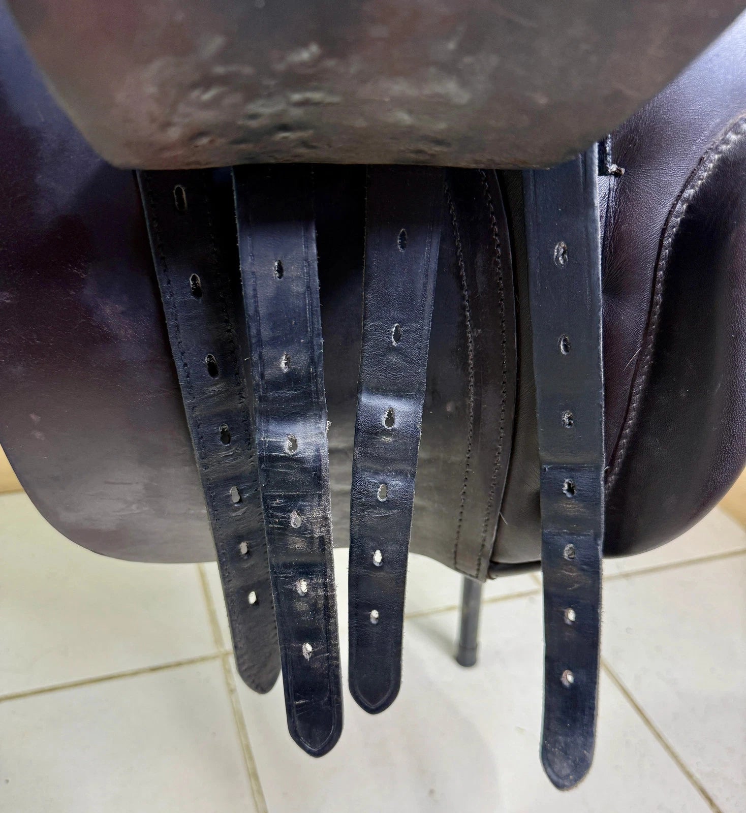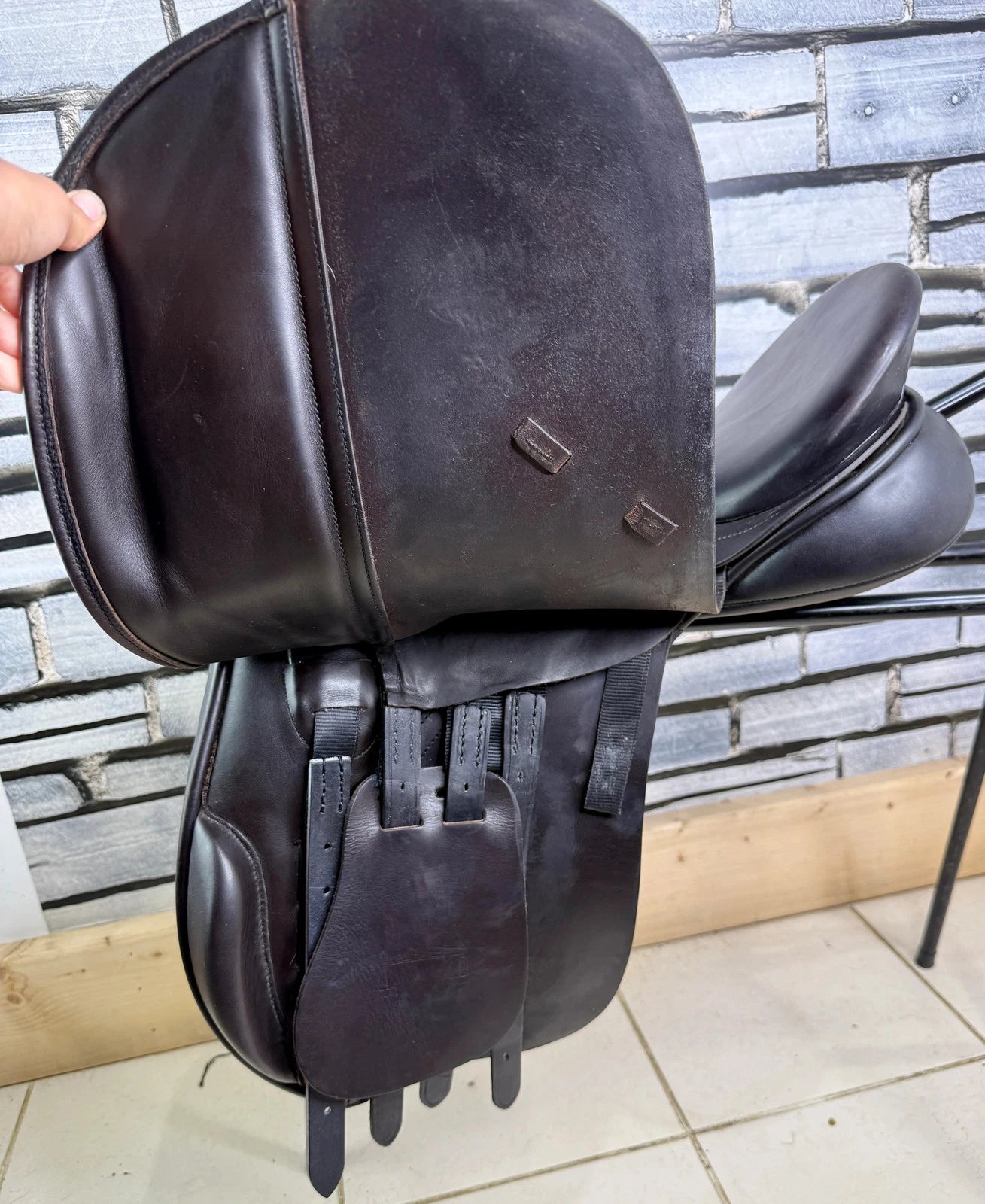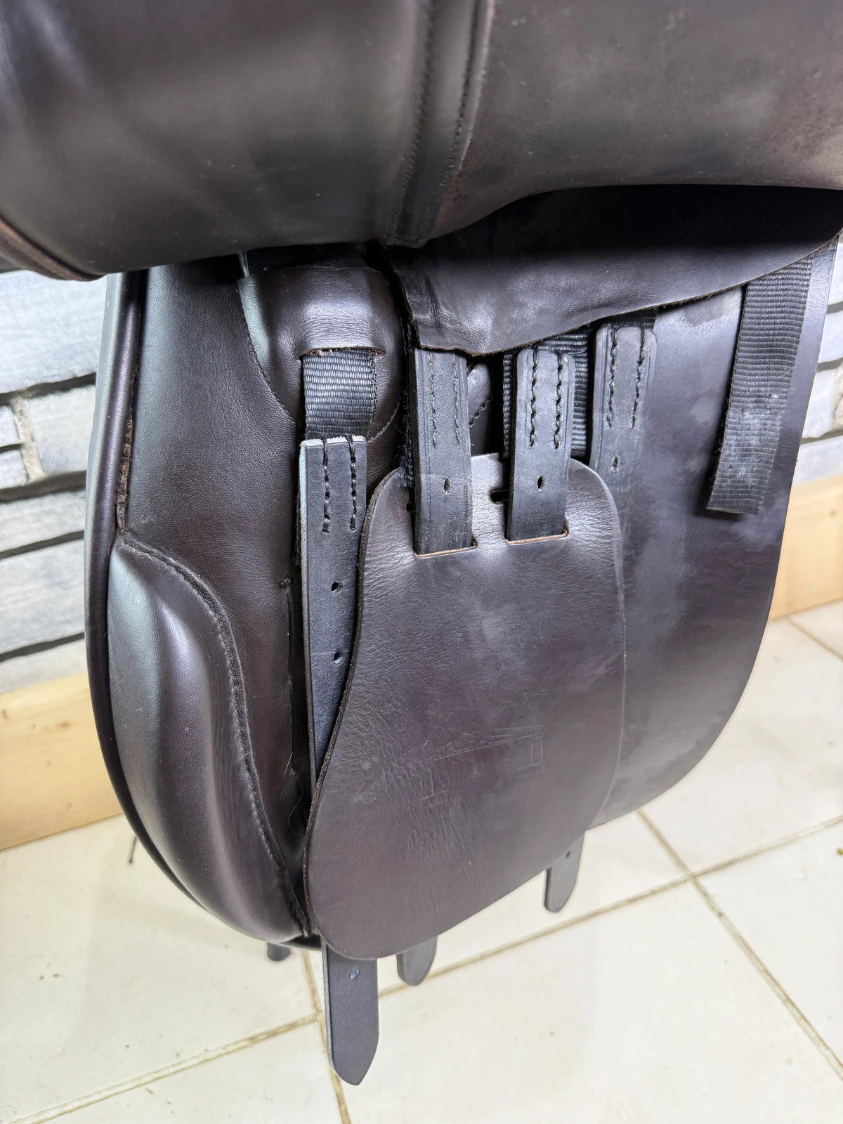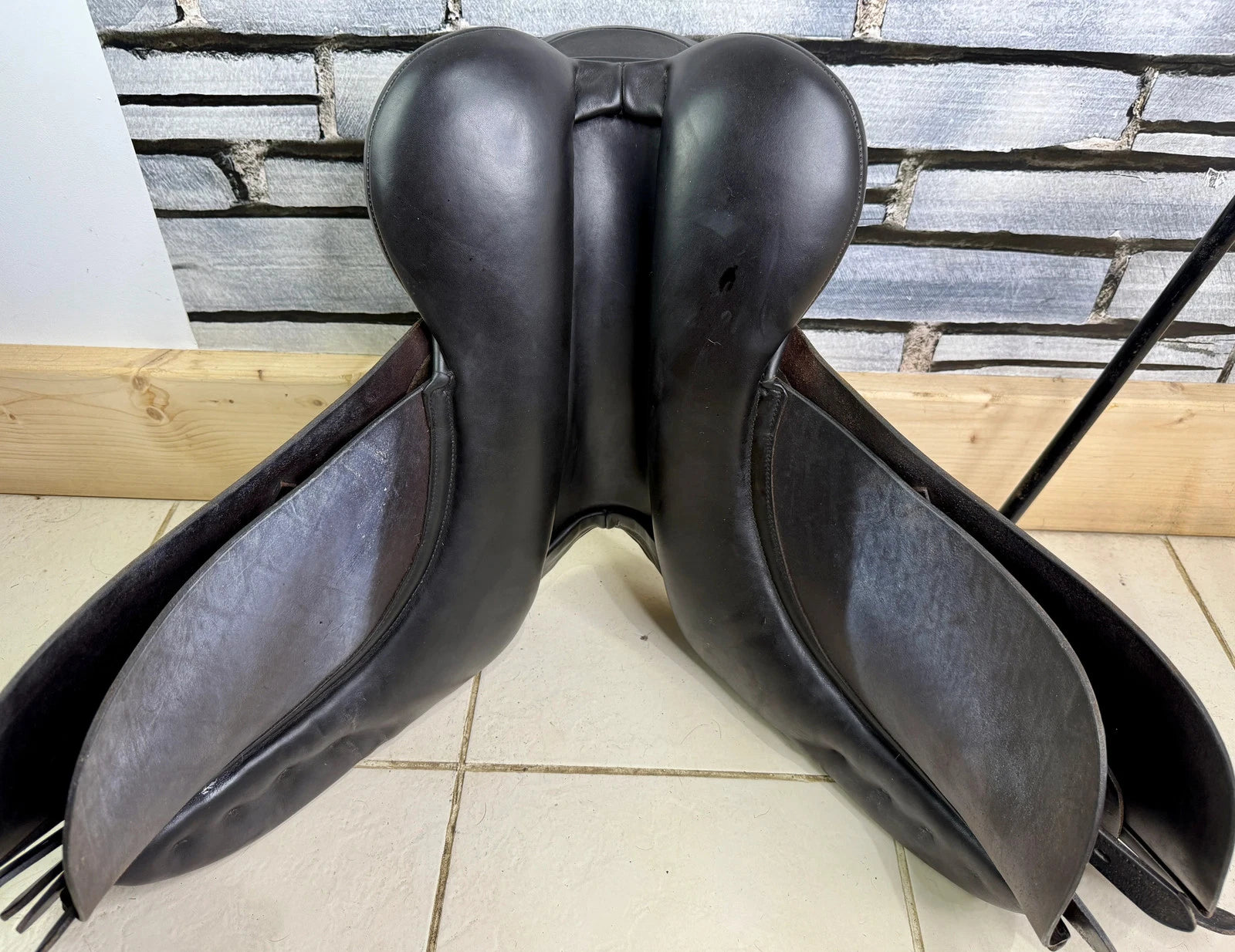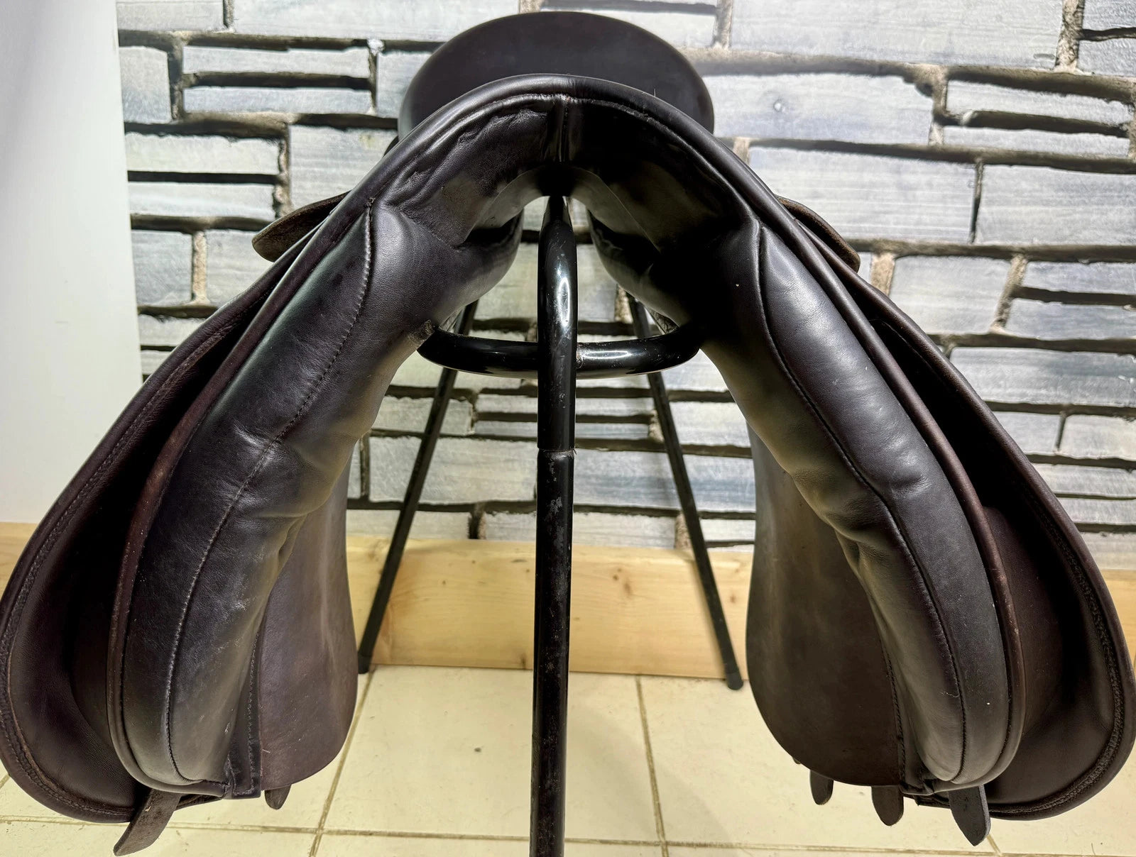 GP513 - excellent used condition - Great big knee blocks. Super comfy, secure saddles. Point strap. Straighter cut version of the very popular K2 GP. Suits a chunk cobby type with a big shoulder. Wool flocked panel. Top quality. Stamped 17 1/2 W