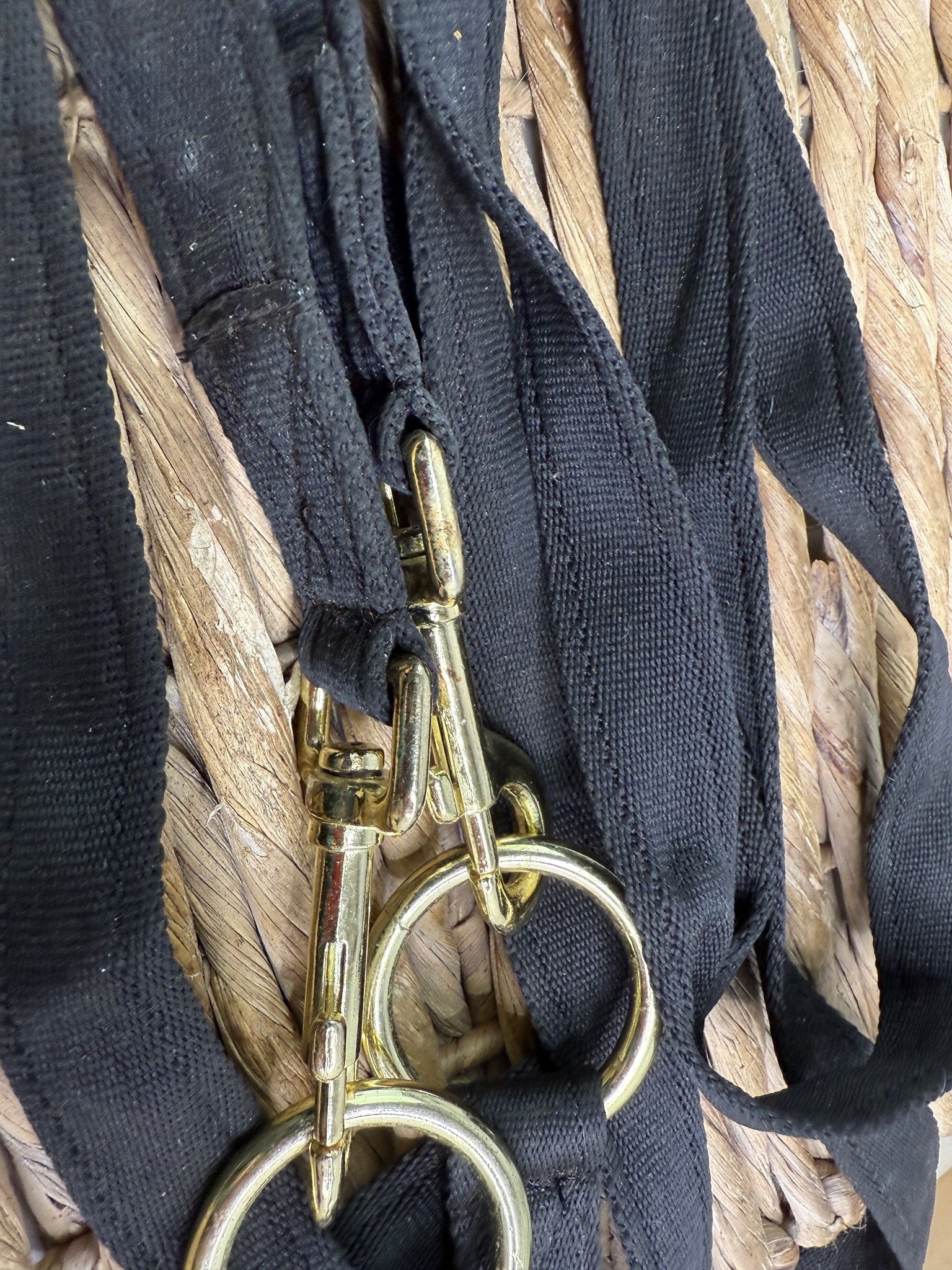 S/H Soft Web Draw Reins with Clips & Girth Loops - Black