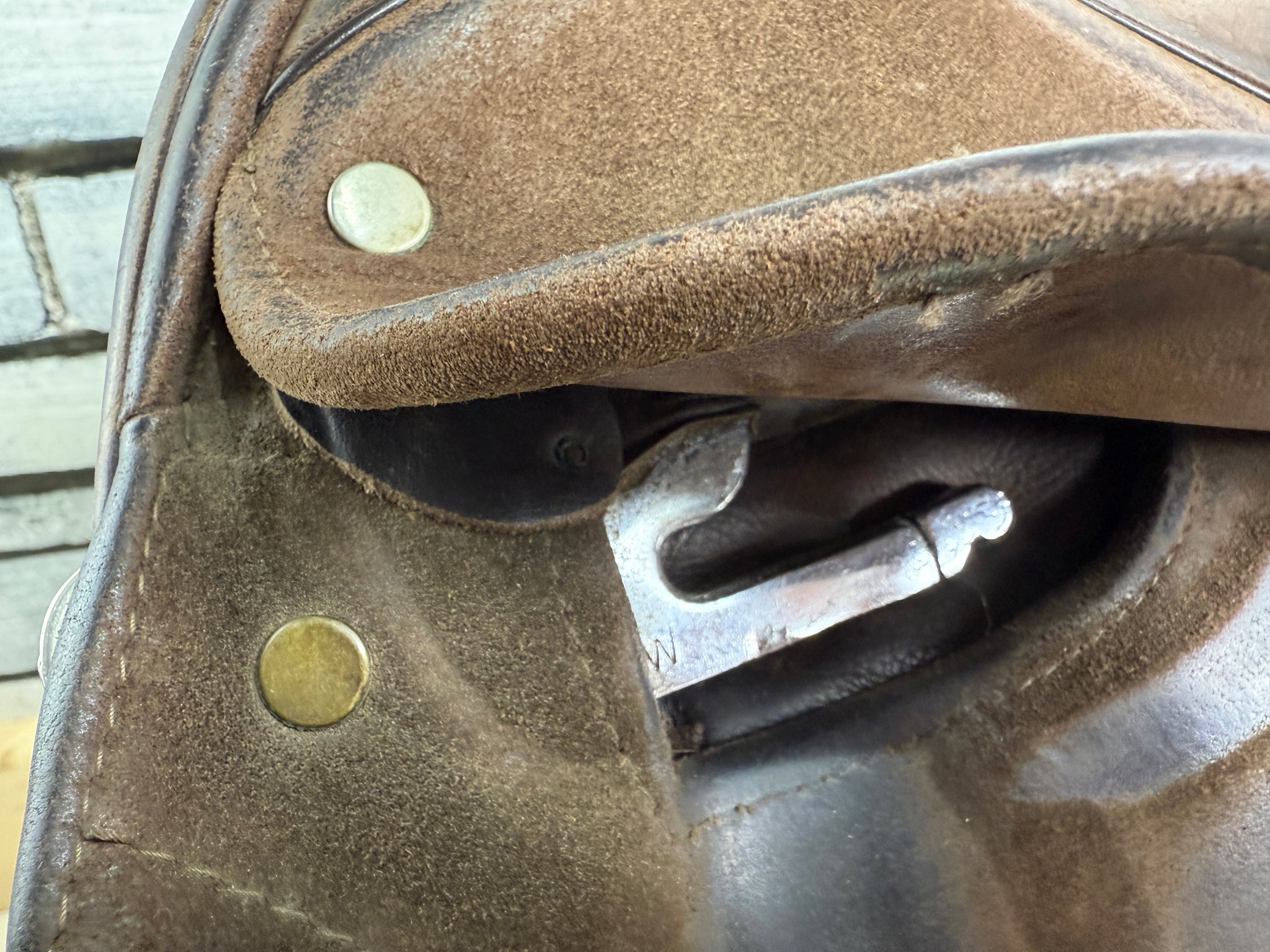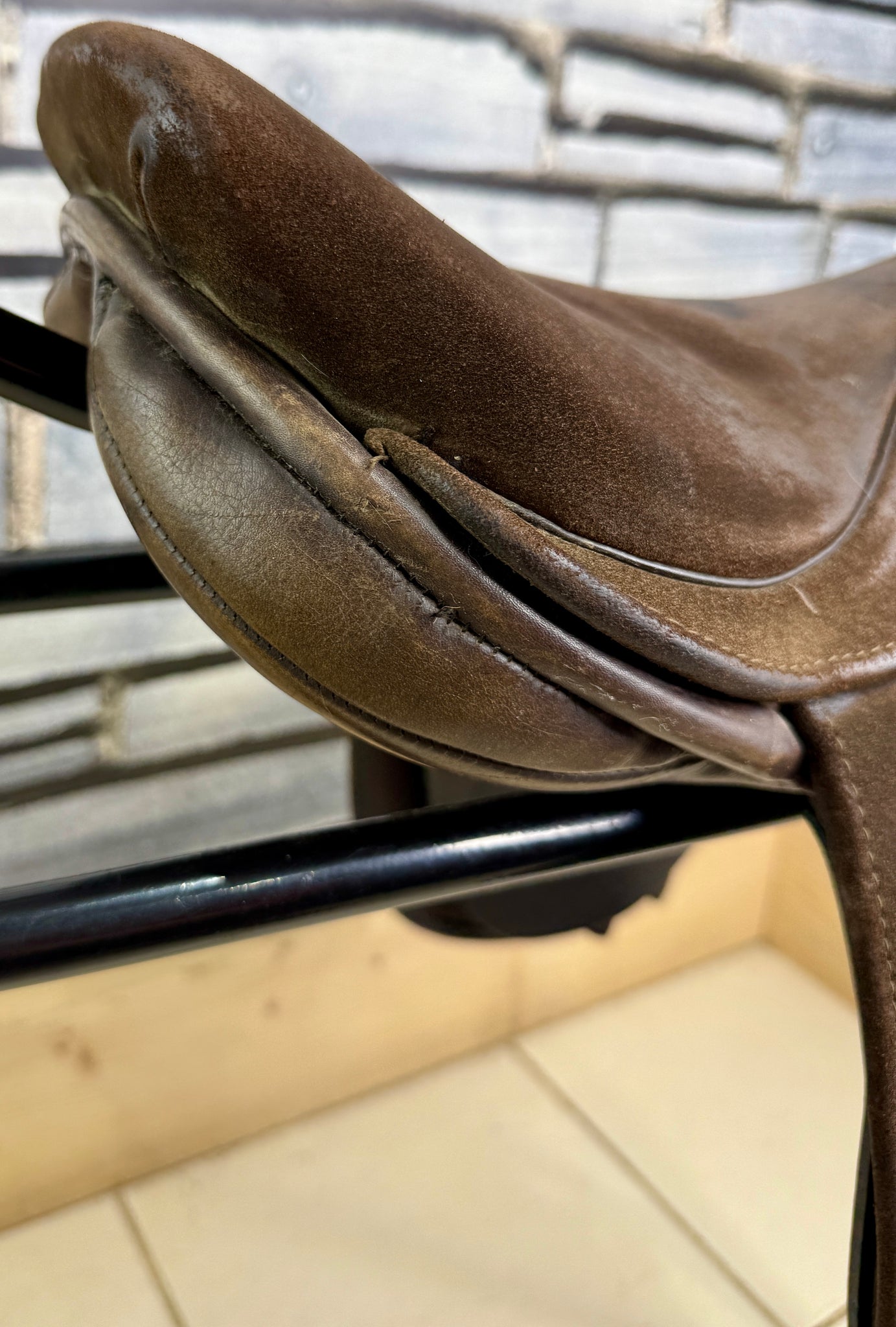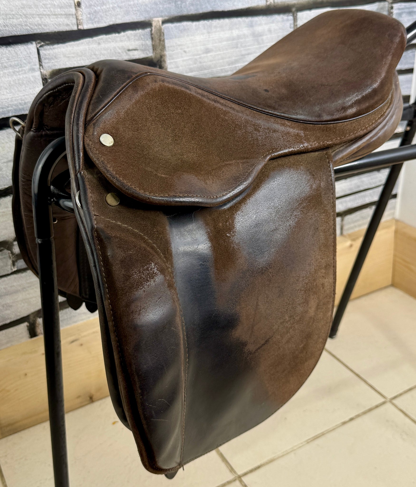 P210 - Find another one of these!! English made. No makers name unfortunately. Foam lined panel with wool flocking. Square cantle with a supportive seat. Wide fit. Full suede top in lovely used condition. Good little blocks.