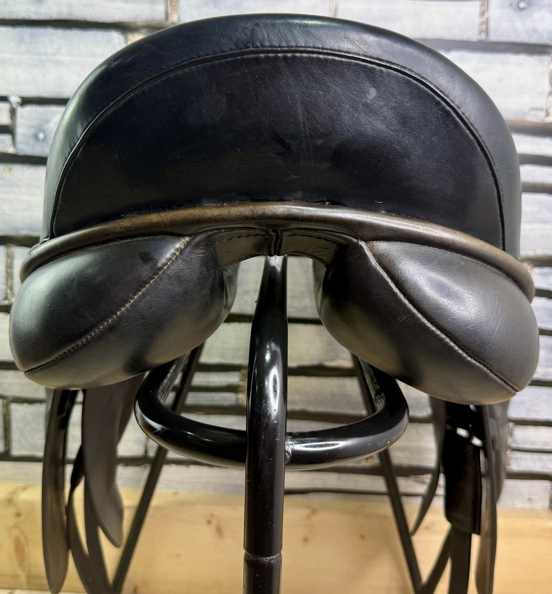 D284 - Front & back gussets. Deep seat, big blocks. Soft wool flocked panel. Wide open gullet channel giving lots of room. Excellent condition. Point & floating balance strap.