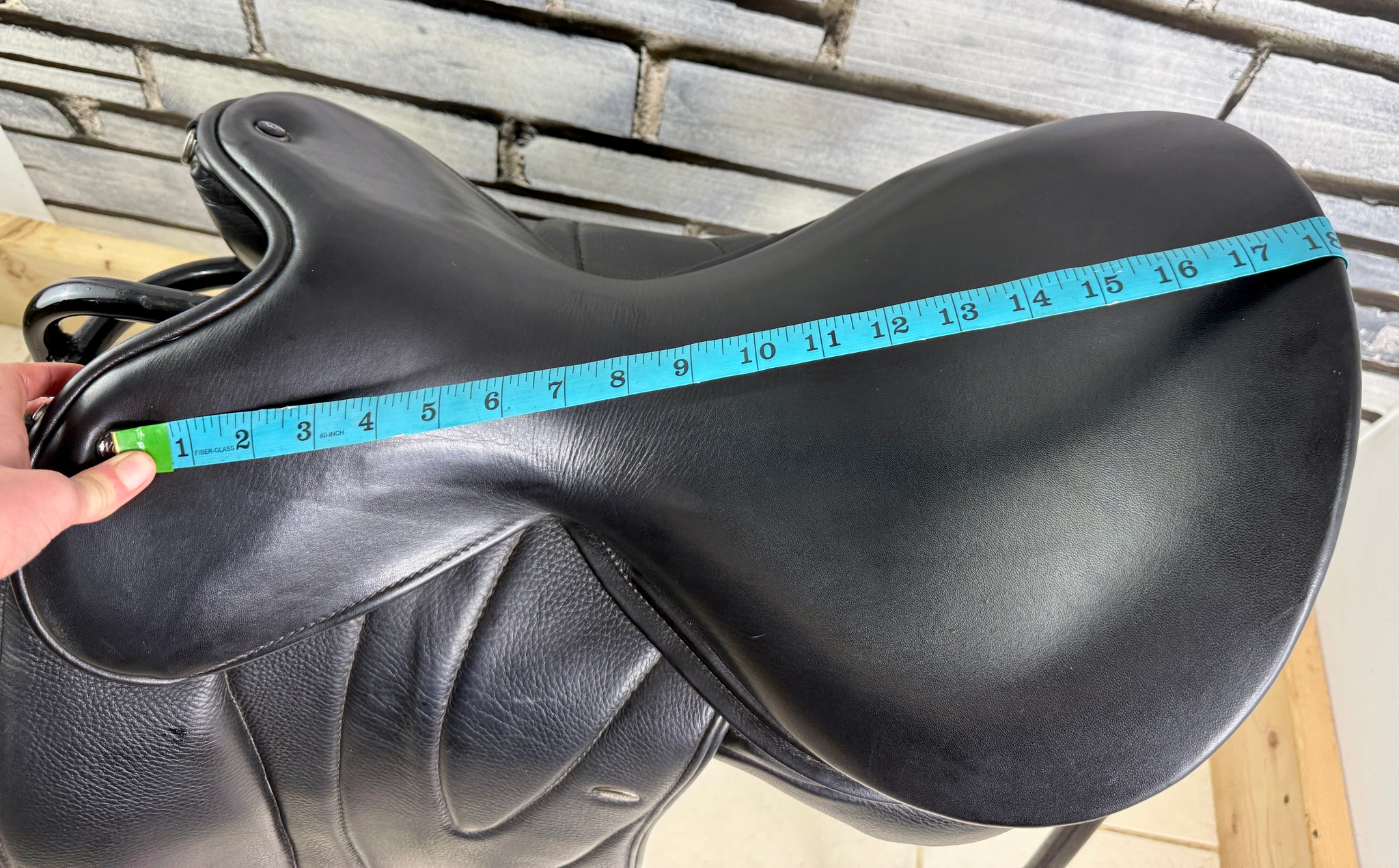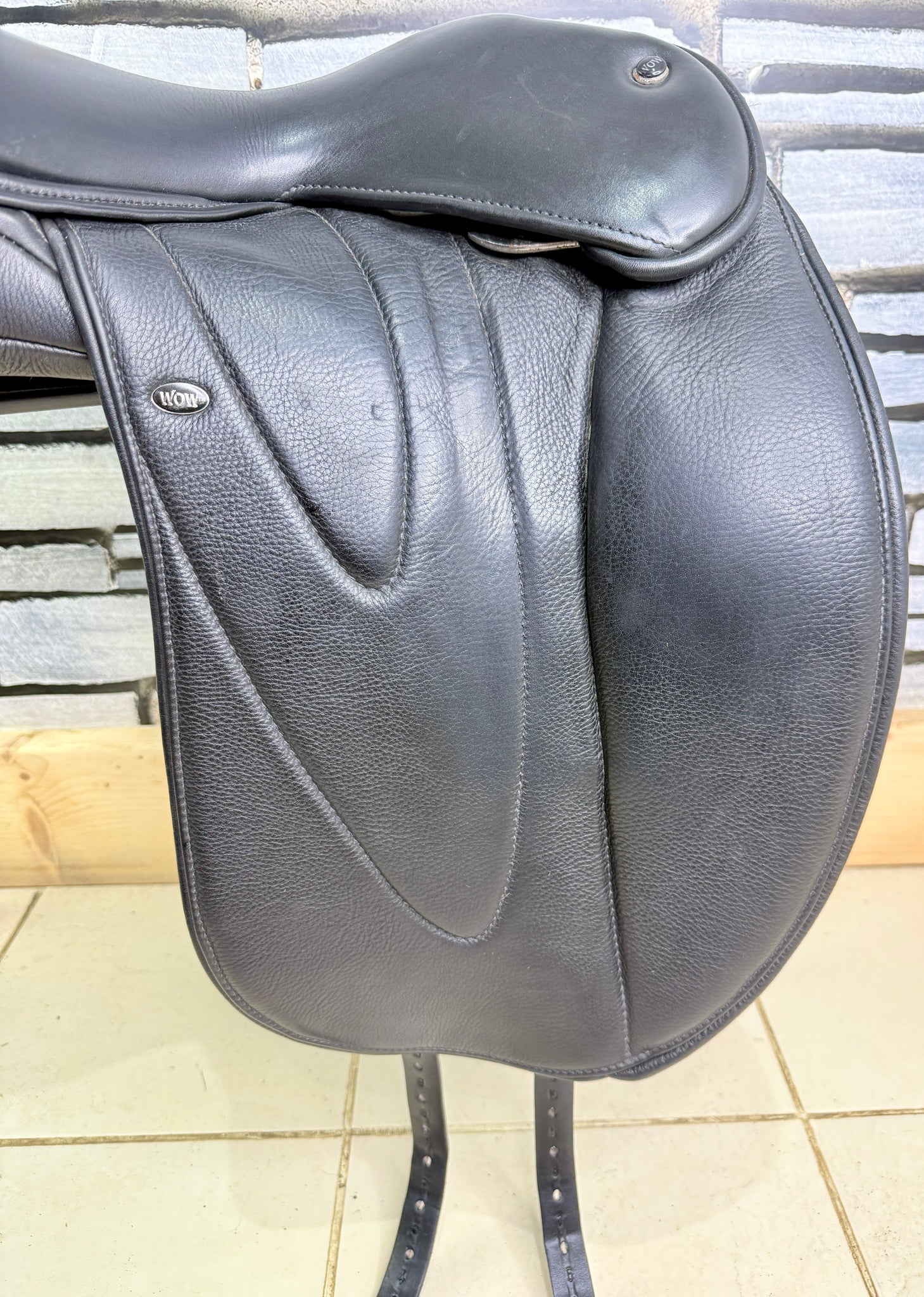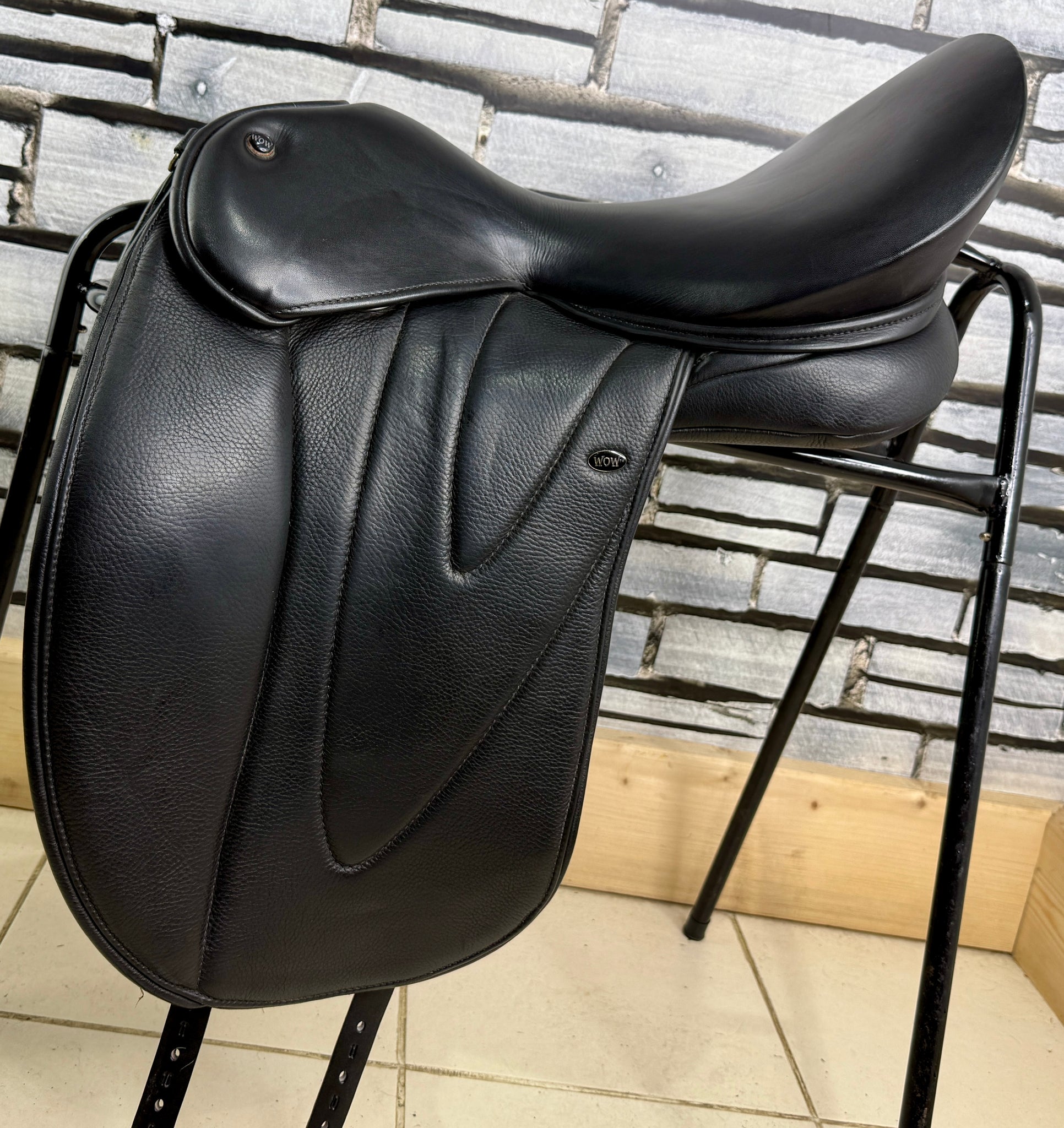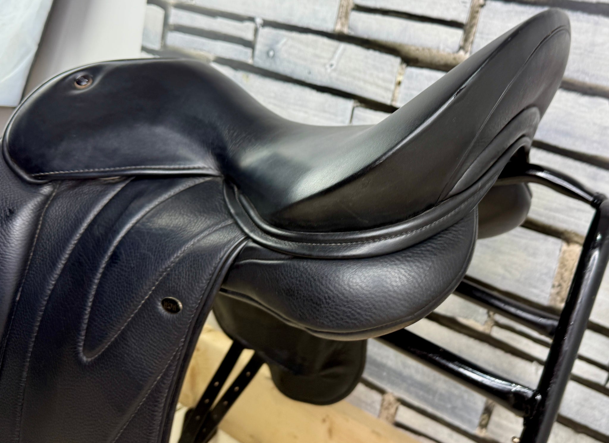 D283 - stunning saddle, lightly used. Big Velcro/movebale blocks. Deep, softly padded seat. Soft Flair air flocked panels. Double stirrup bars. Changeable gullet - can go from XN-8XW. Currently fitted with a size 3/MW gullet.
