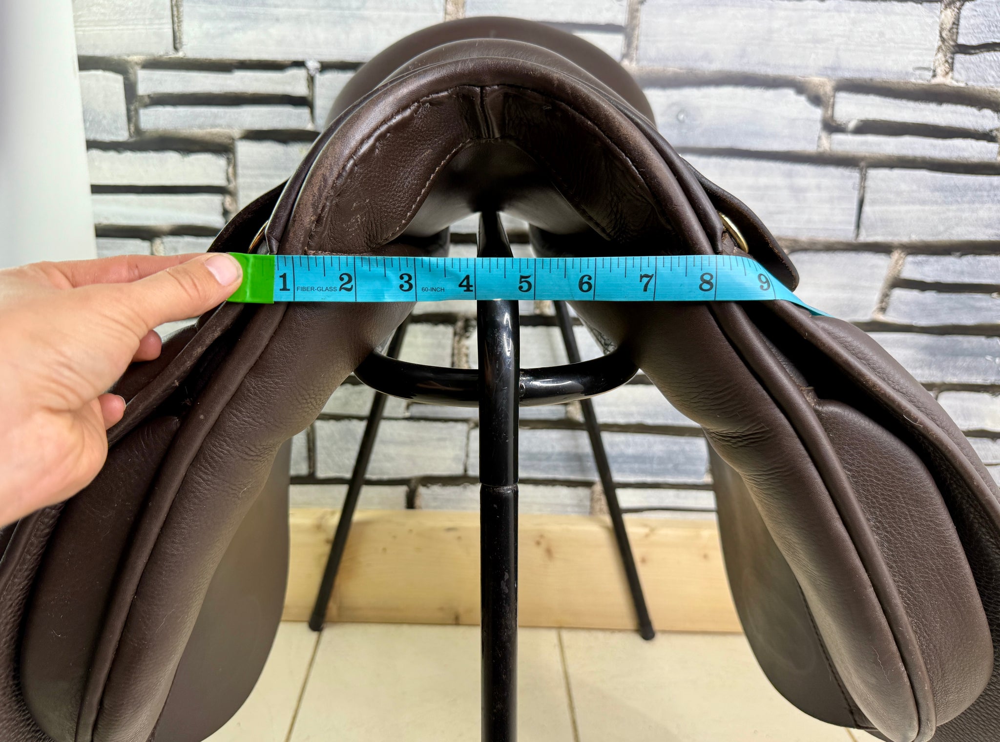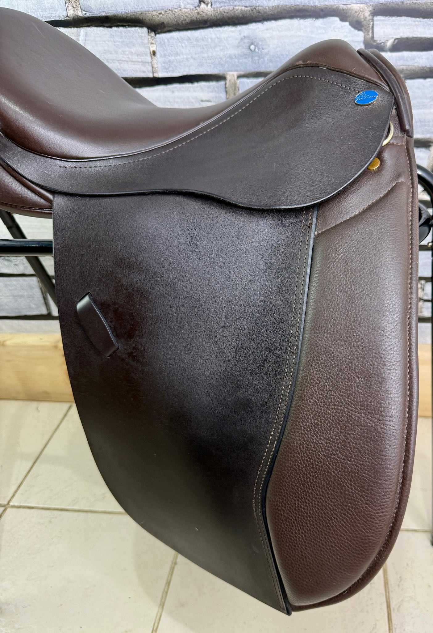WH149 - Super smart. Top quality leather. Very lightly used for shows. Good blocks, very comfy. Soft wool flocked panel. Point & balance straps.