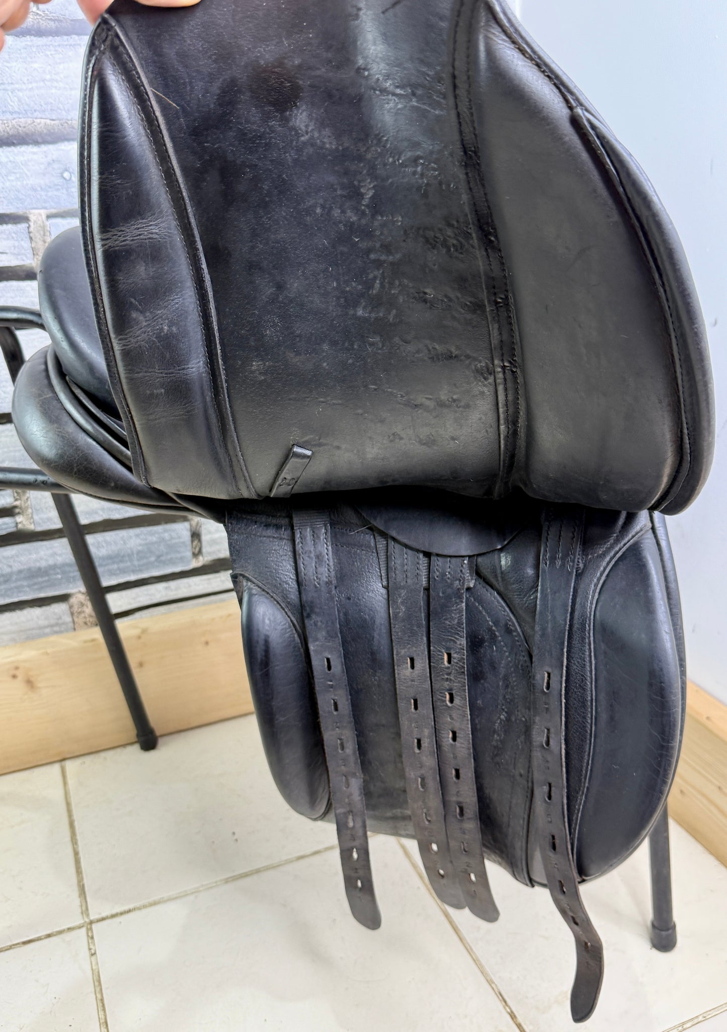 WH147 - Nice used condition, good block. Neat saddle, ideal for the ring or just to free up the horses shoulder. Gel seat. Comfy enough for everyday. Soft padded knee and thigh roll. Suit a cobby type. Point & balance straps. Wool flocked panel.